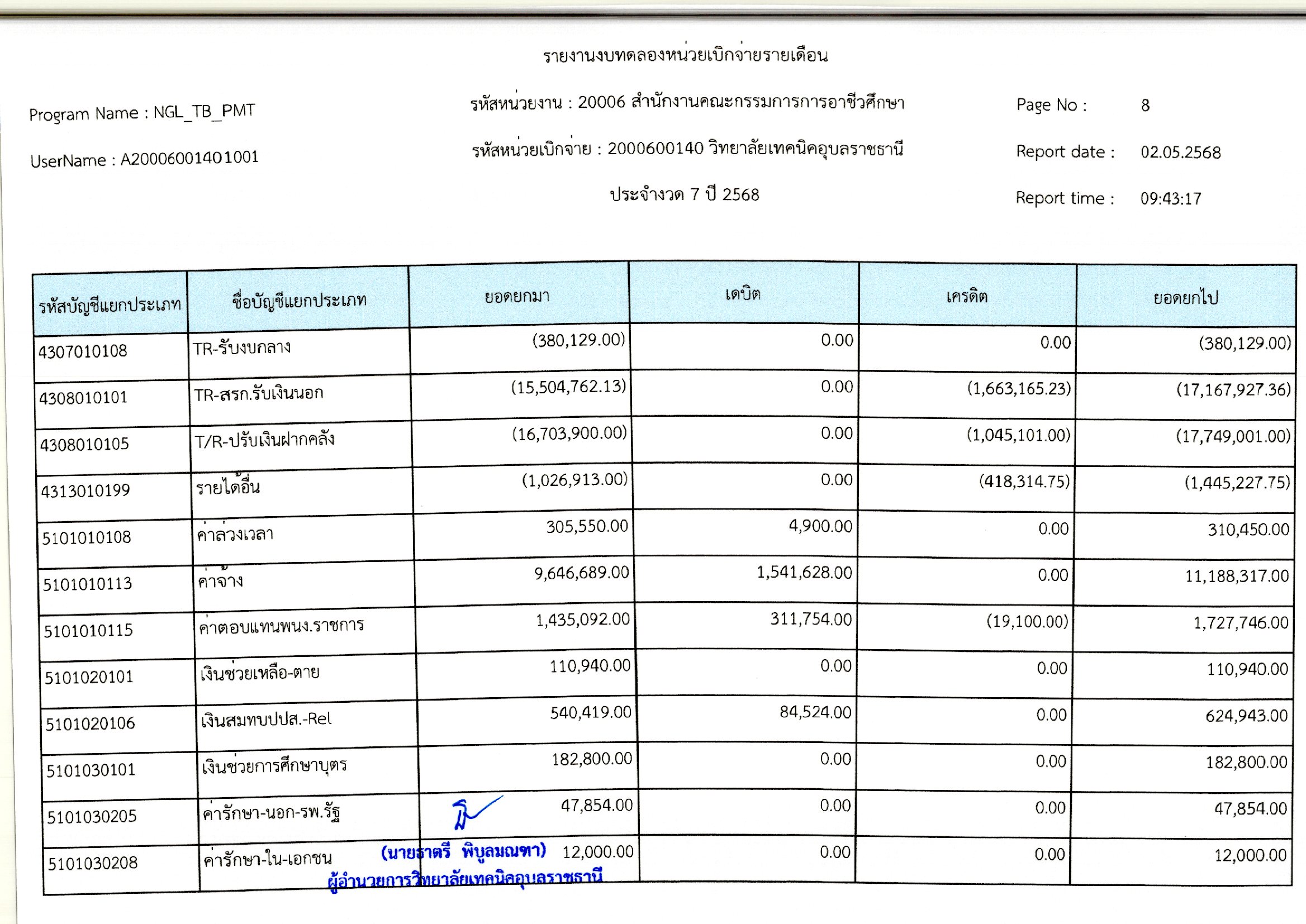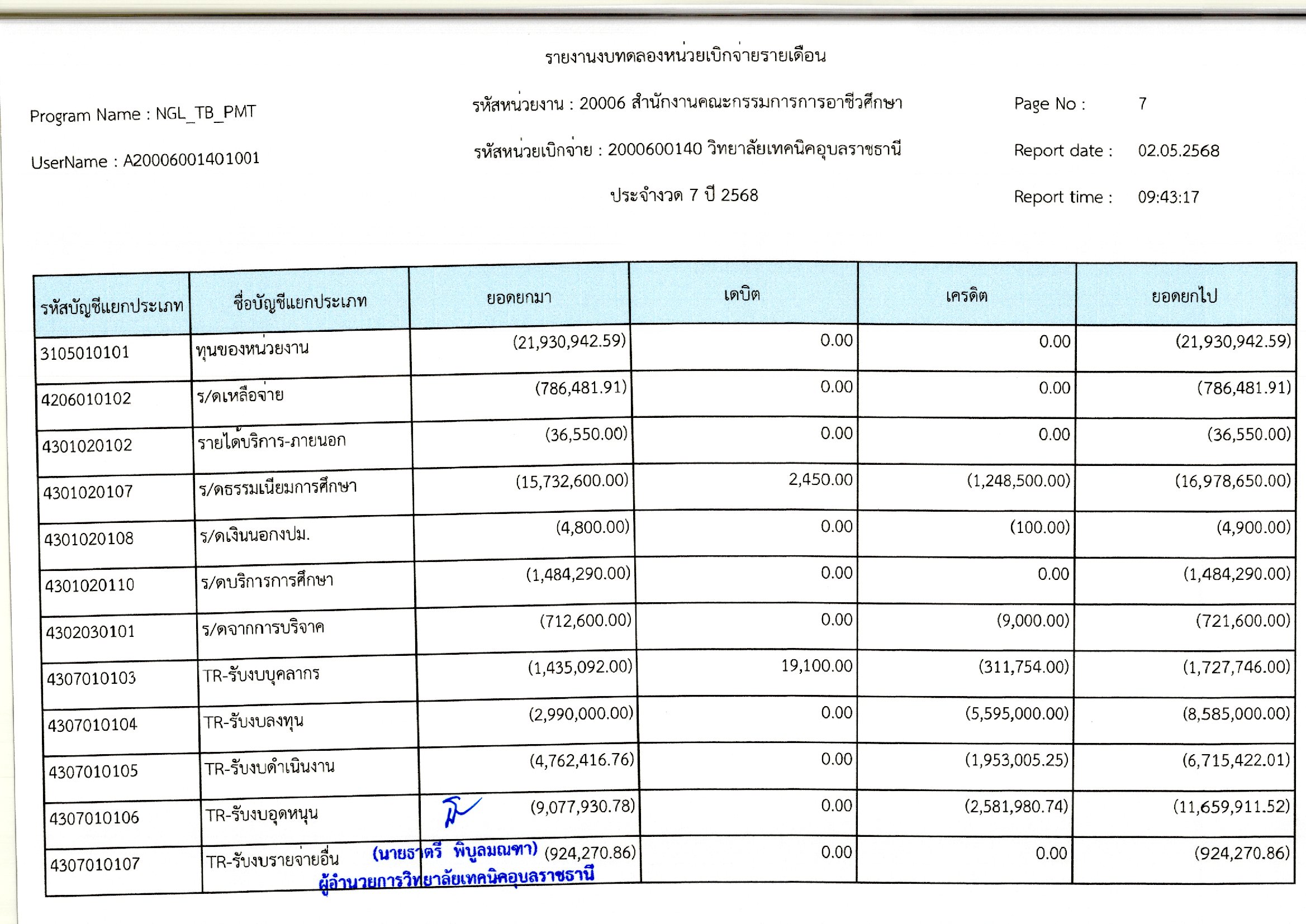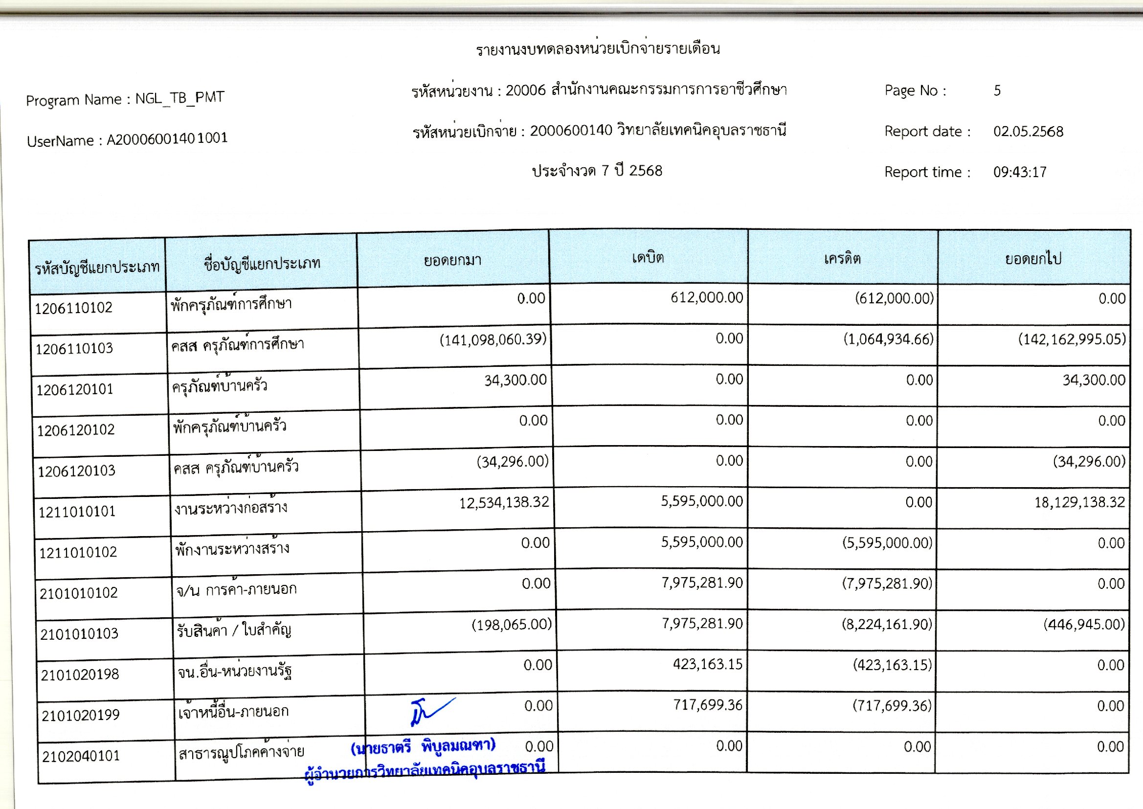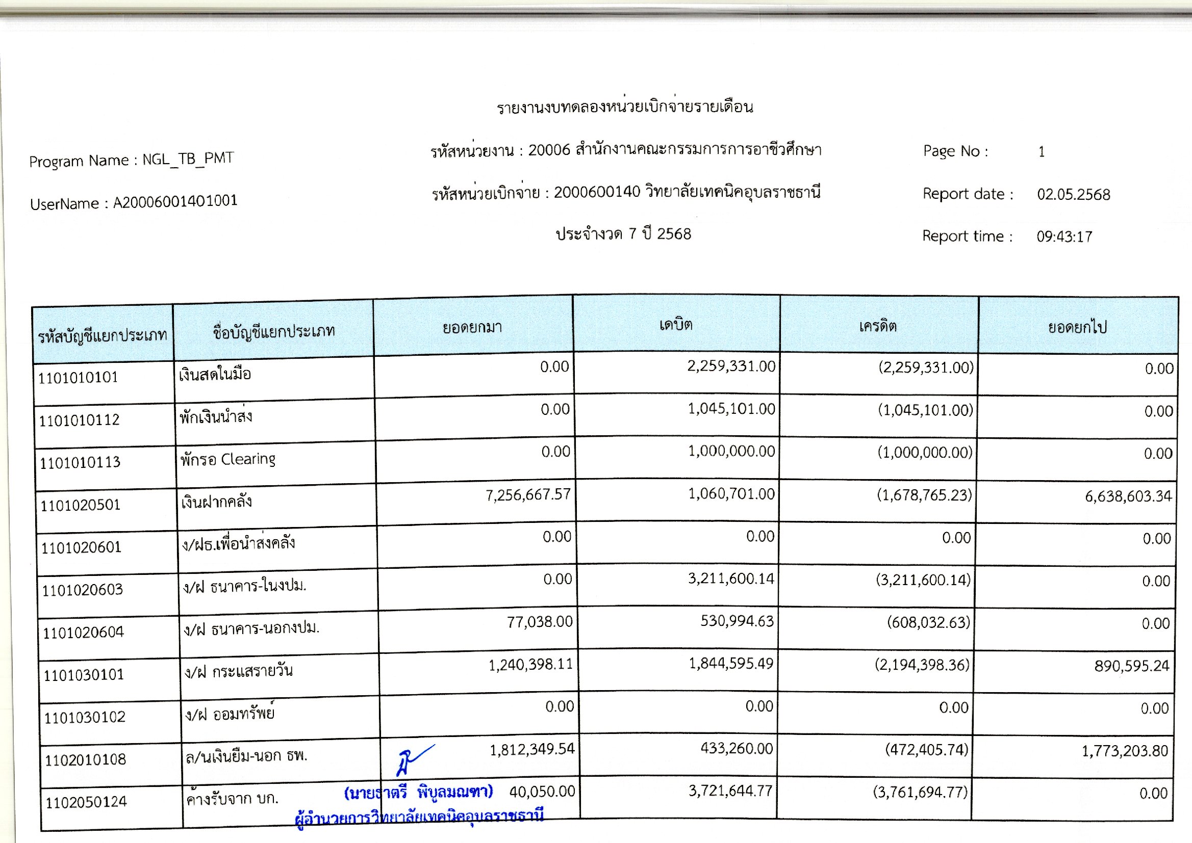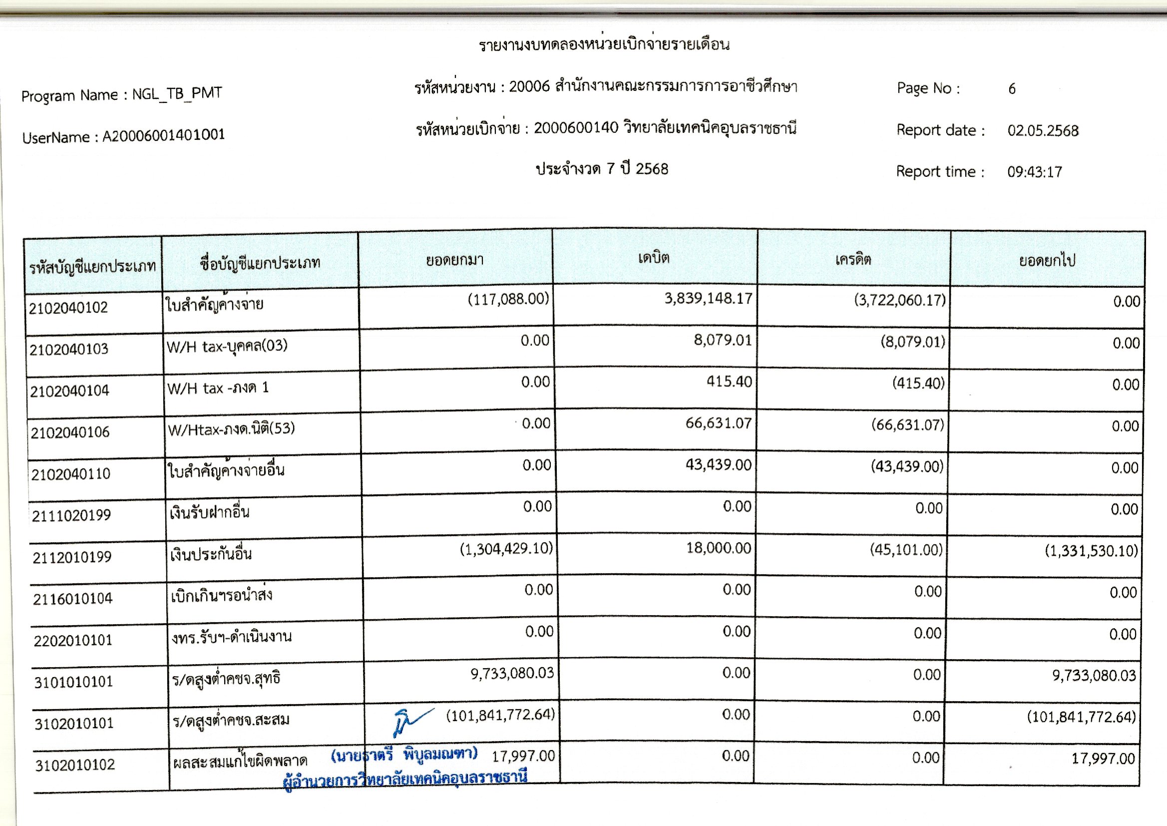 รายงานงบทดลองประจำเดือนเมษายน 2568