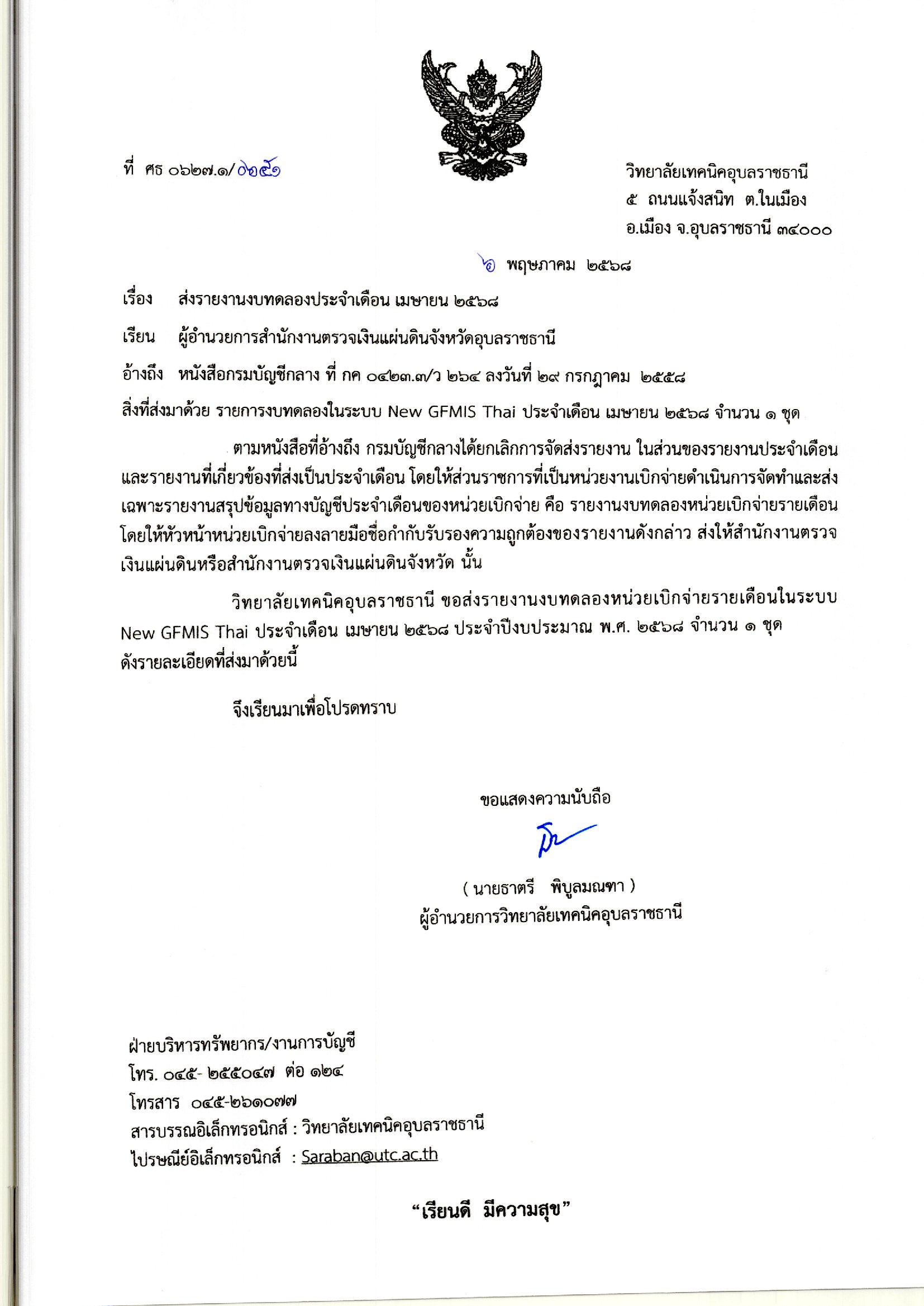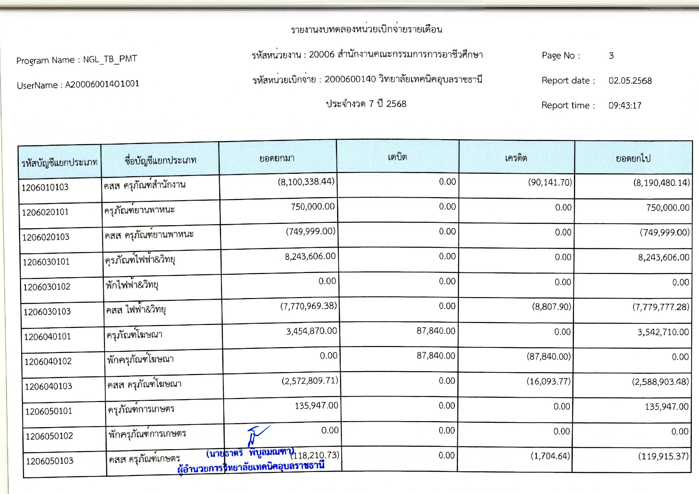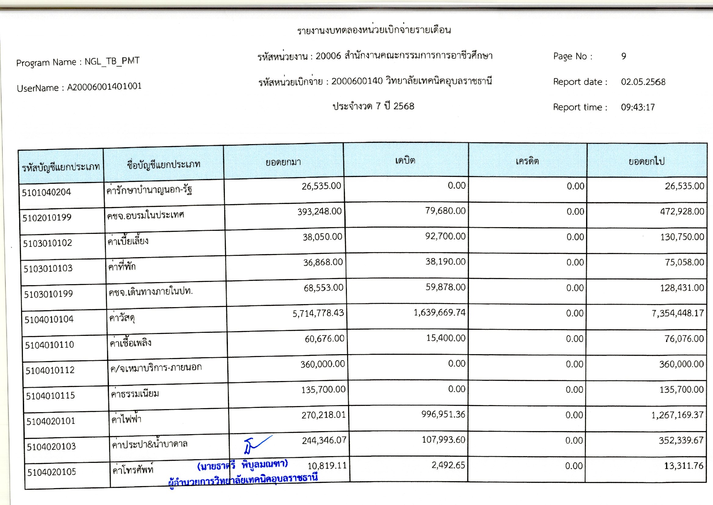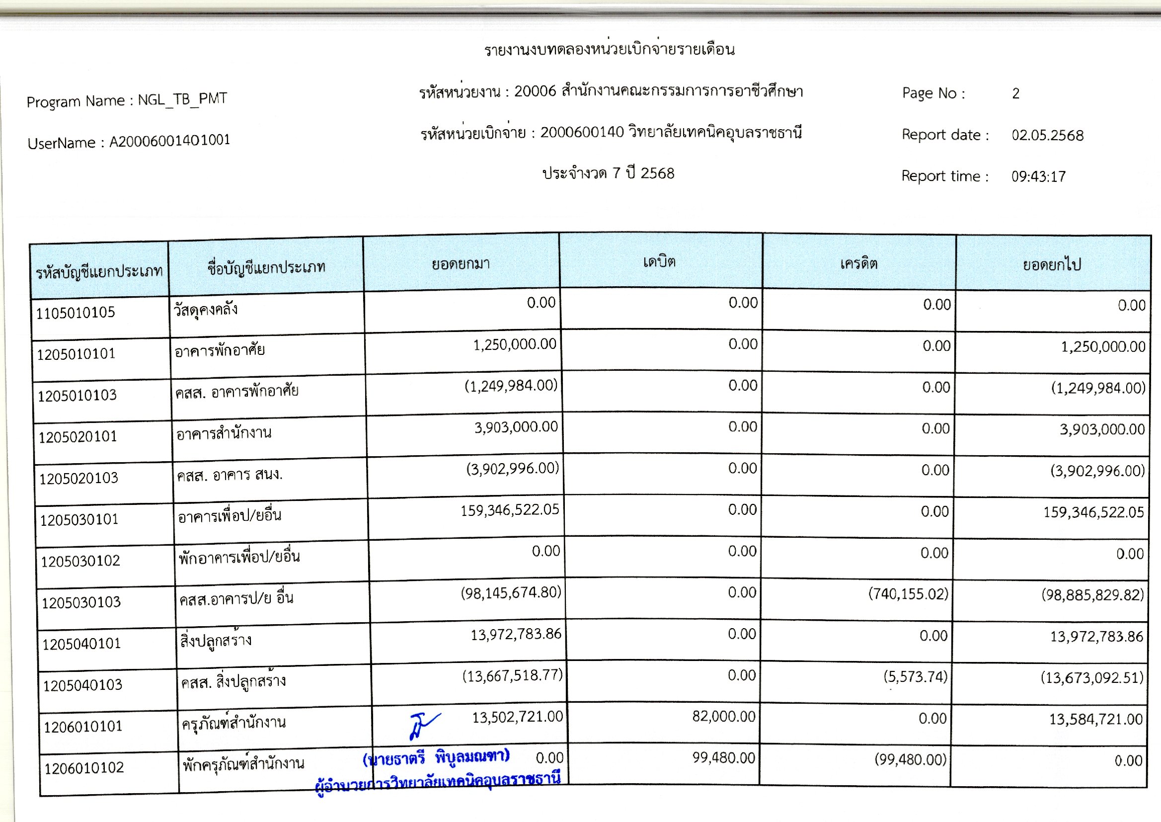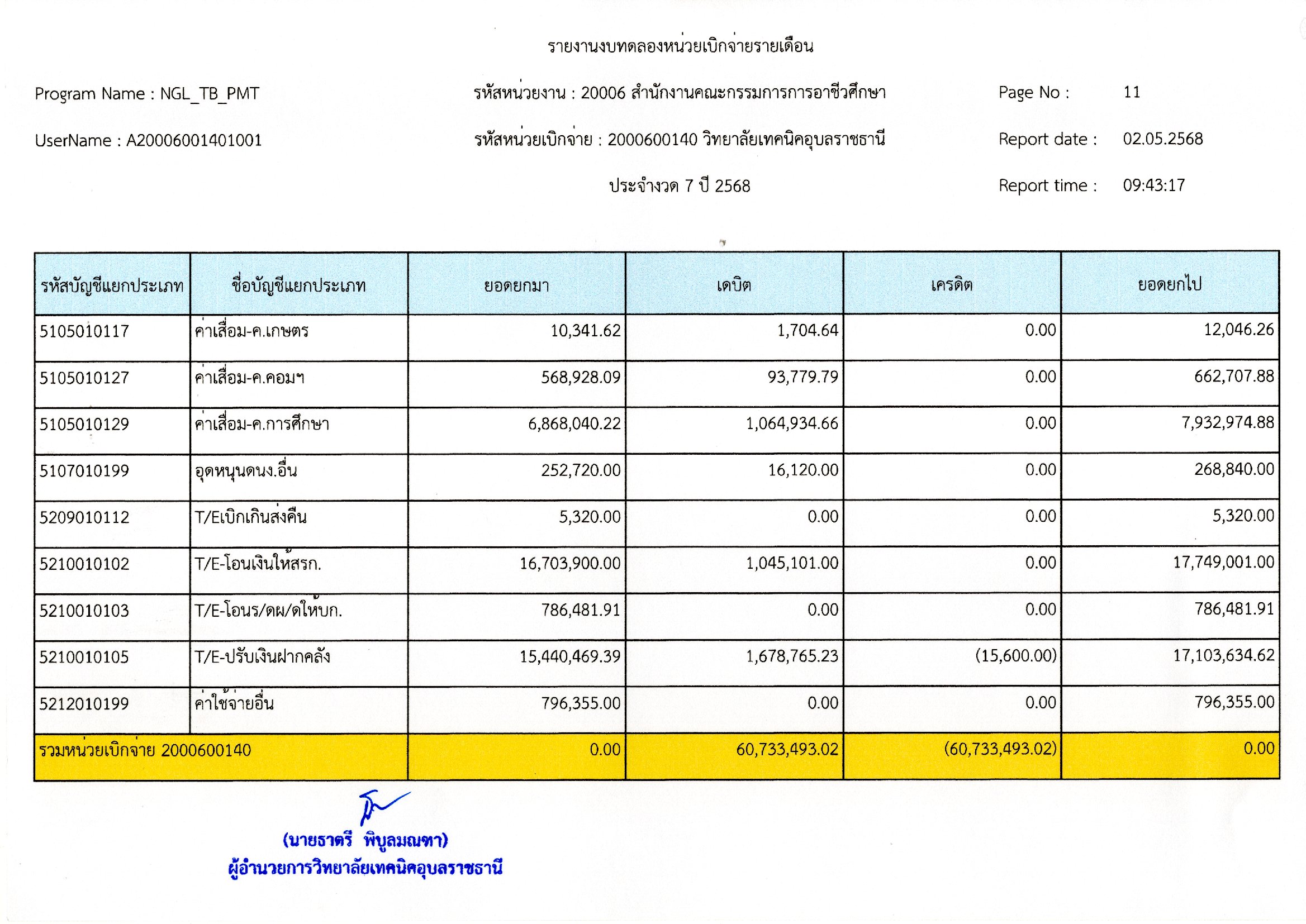 รายงานงบทดลองประจำเดือนเมษายน 2568