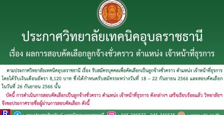 FacebookTwitterLineประกาศวิทยาลัยเทคนิคอุบลราชธานี เรื่อง ผลการสอบคัดเลือกลูกจ้างชั่วคราว ตำแหน่ง (เพิ่มเติม…) FacebookTwitterLine read more