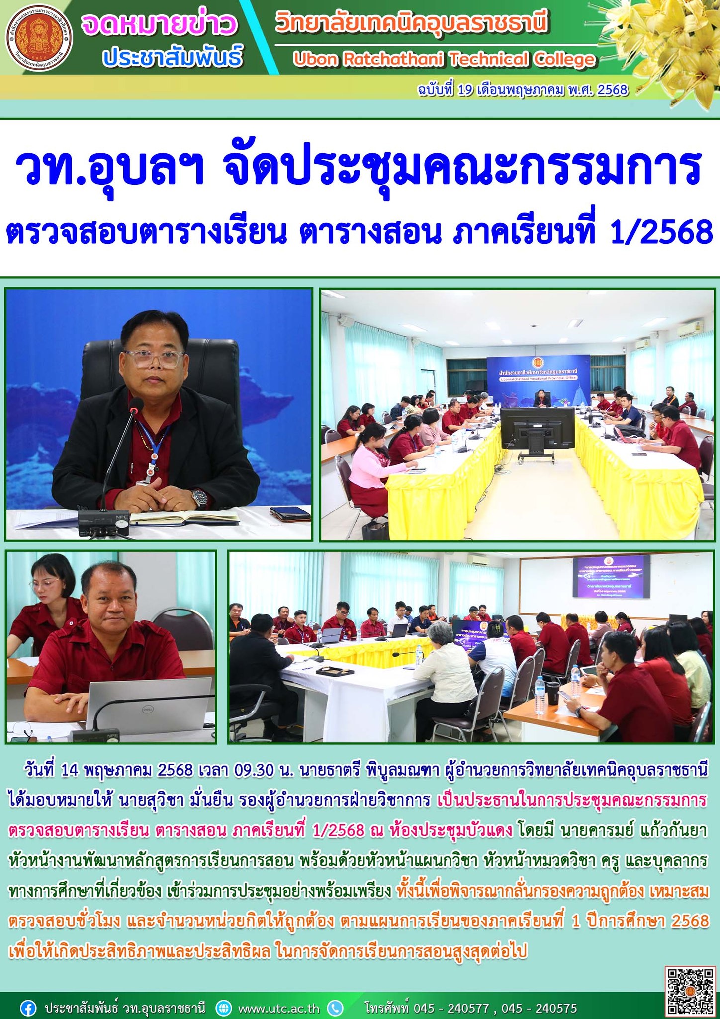 วท.อุบลฯ จัดการประชุมคณะกรรมการตรวจสอบตารางเรียน ตารางสอน ภาคเรียนที่ 1/2568