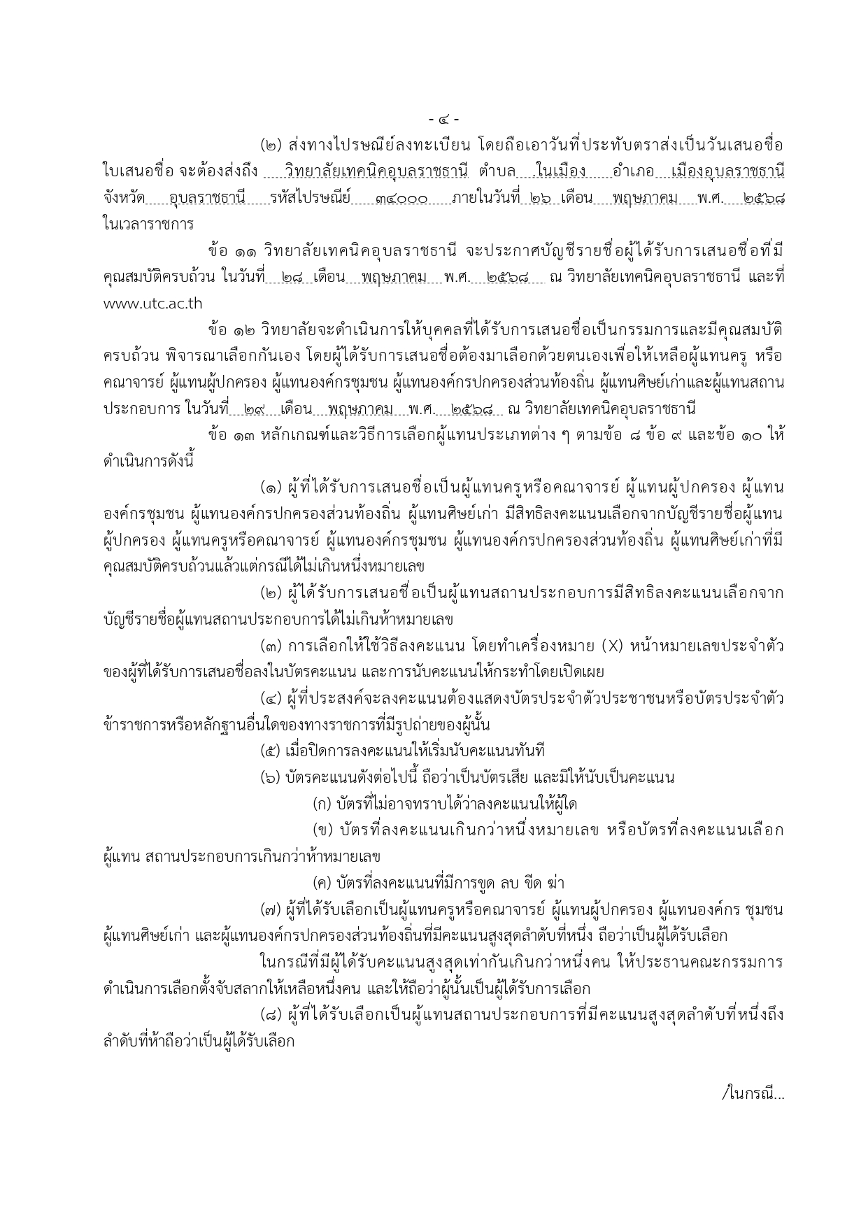 ประกาศวิทยาลัยเทคนิคอุบราชธานี เรื่อง การสรรหาและการเลือกคณะกรรมการวิทยาลัย