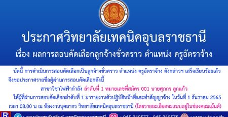 FacebookTwitterLineประกาศวิทยาลัยเทคนิคอุบลราชธานี เรื่อง ผลการสอบคัดเลือกลูกจ้างชั่วคราว ตำแหน่ง ครูอัตราจ้าง ผู้ที่ผ่านการสอบ (เพิ่มเติม…) FacebookTwitterLine read more