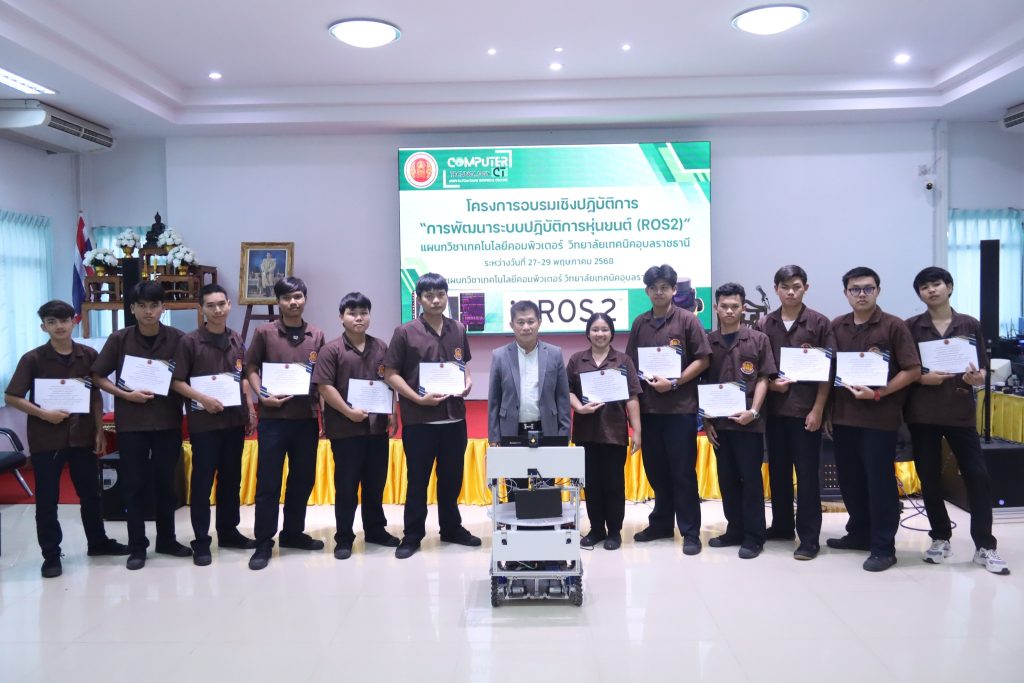 พิธีปิดและมอบเกียรติบัตรแก่คณะครูและนักศึกษาผู้เข้าร่วมโครงการอบรมเชิงปฏิบัติการ “การพัฒนาระบบปฏิบัติการหุ่นยนต์ (ROS2)