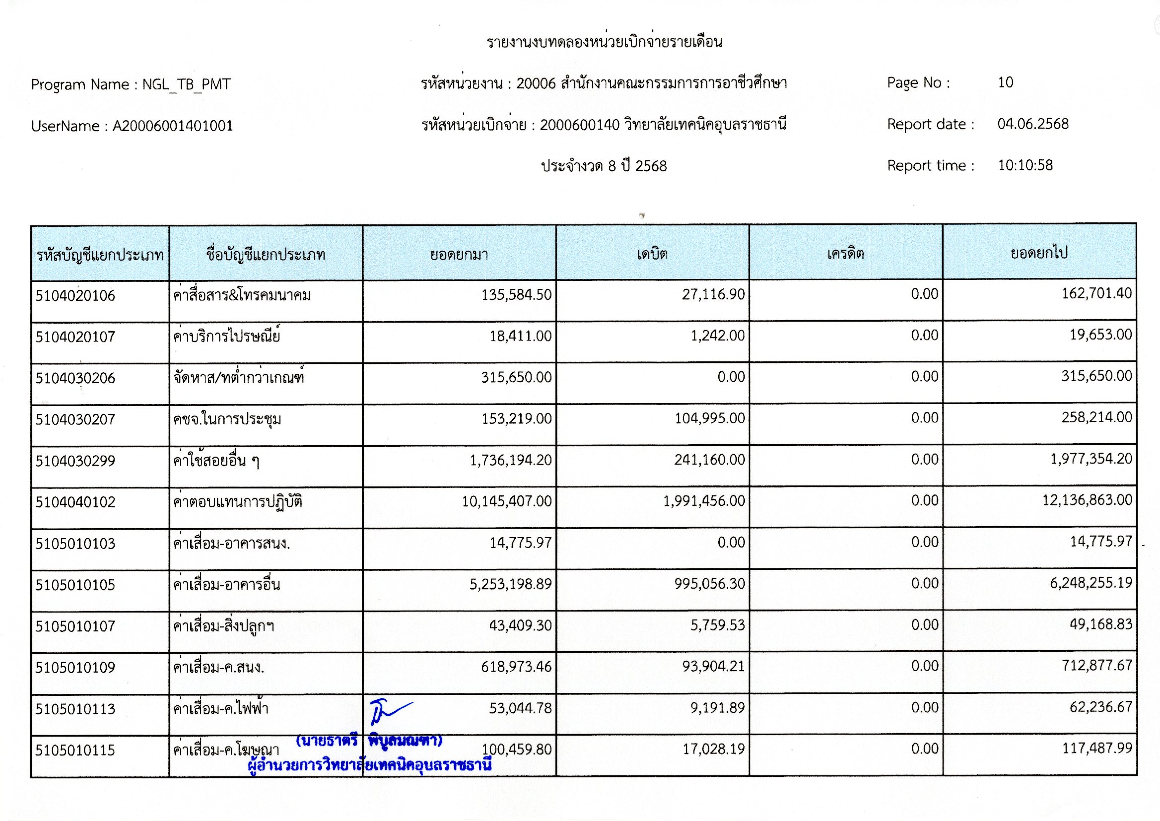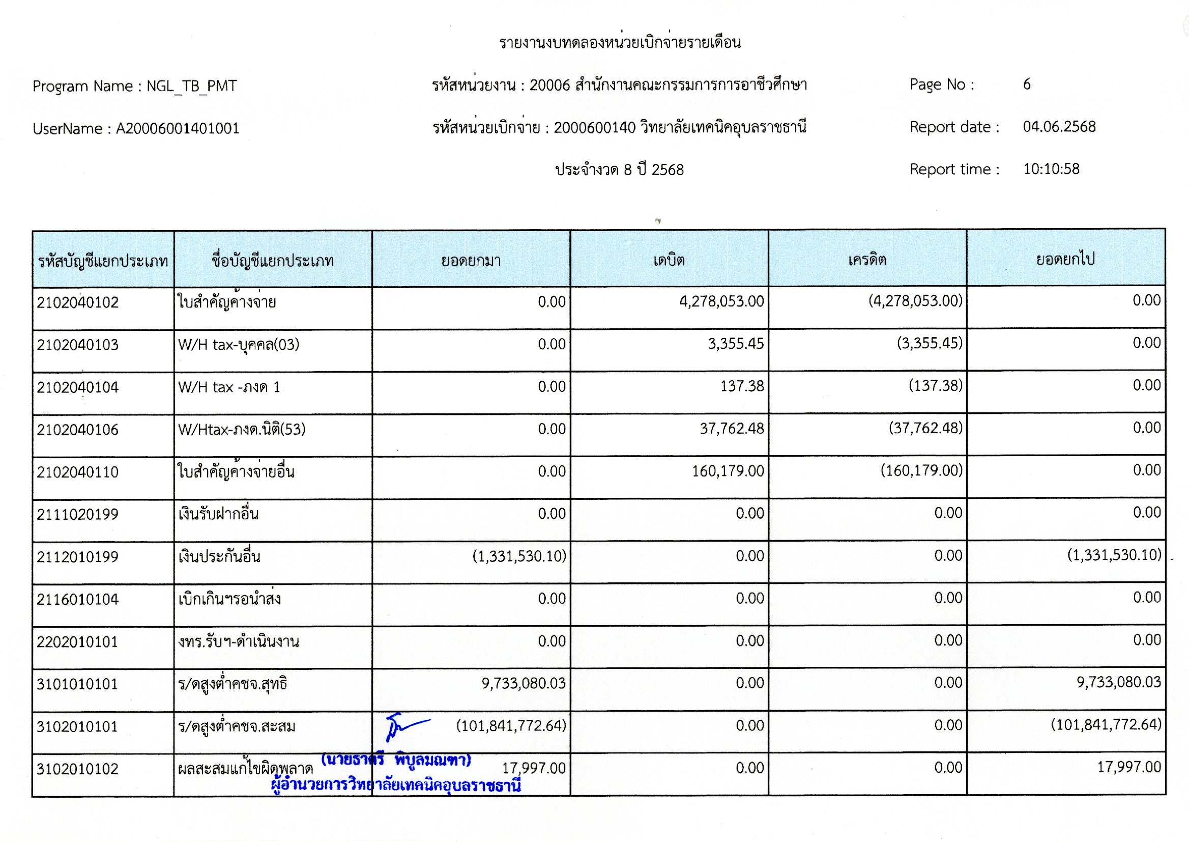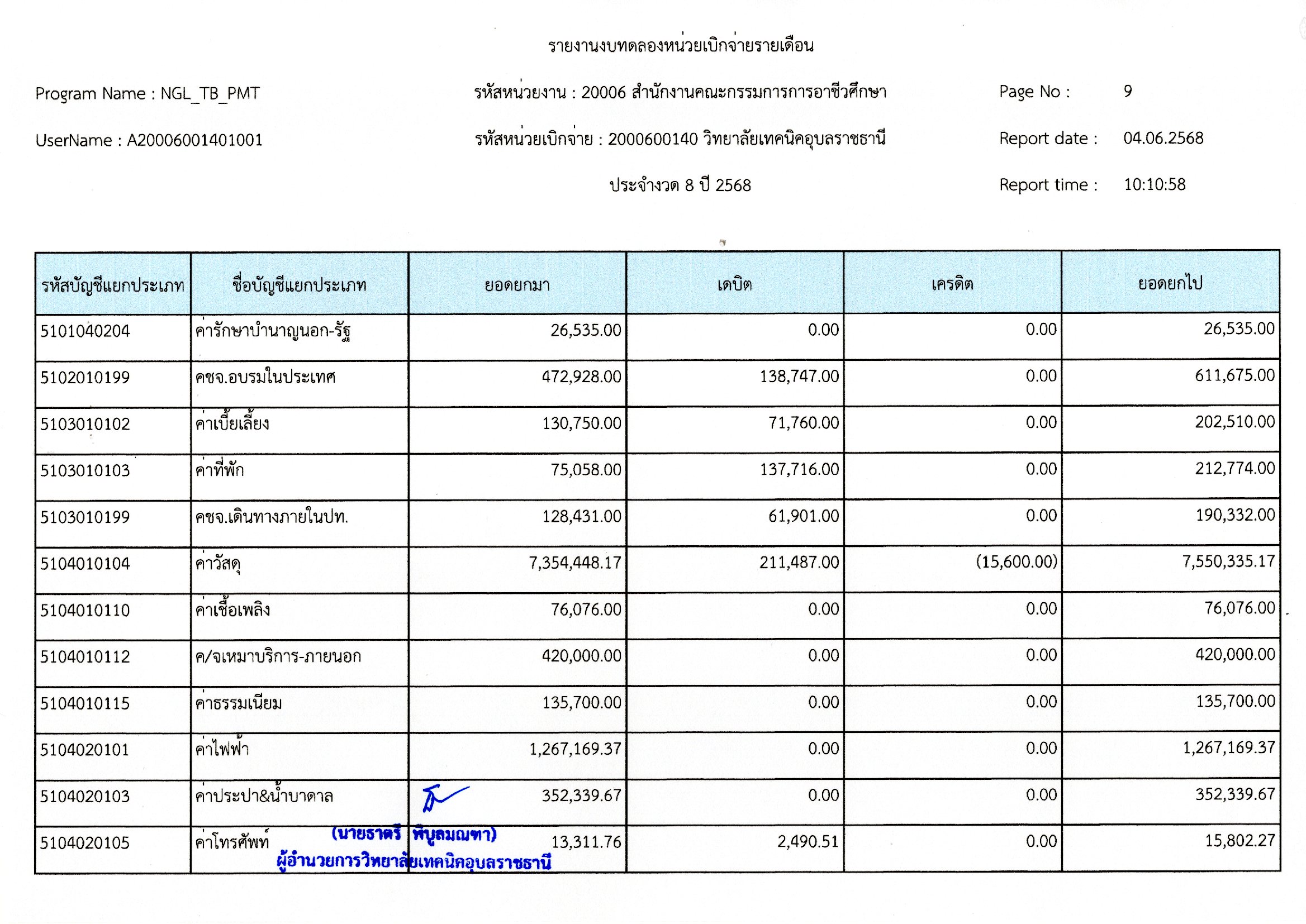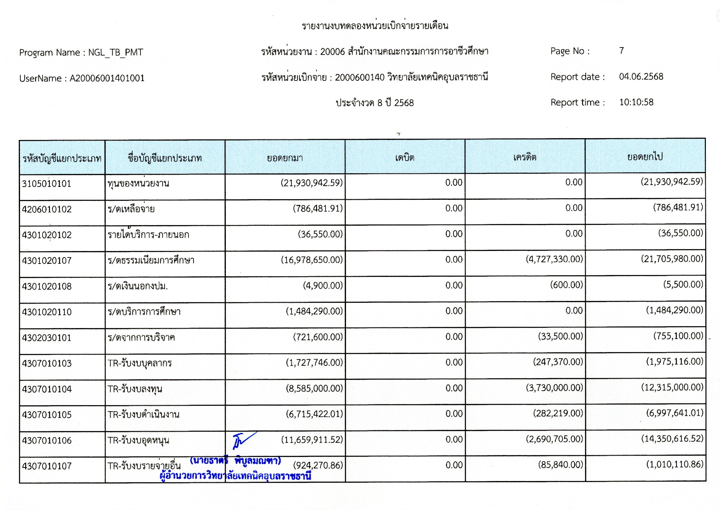 รายงานงบทดลองประจำเดือนพฤษภาคม 2568