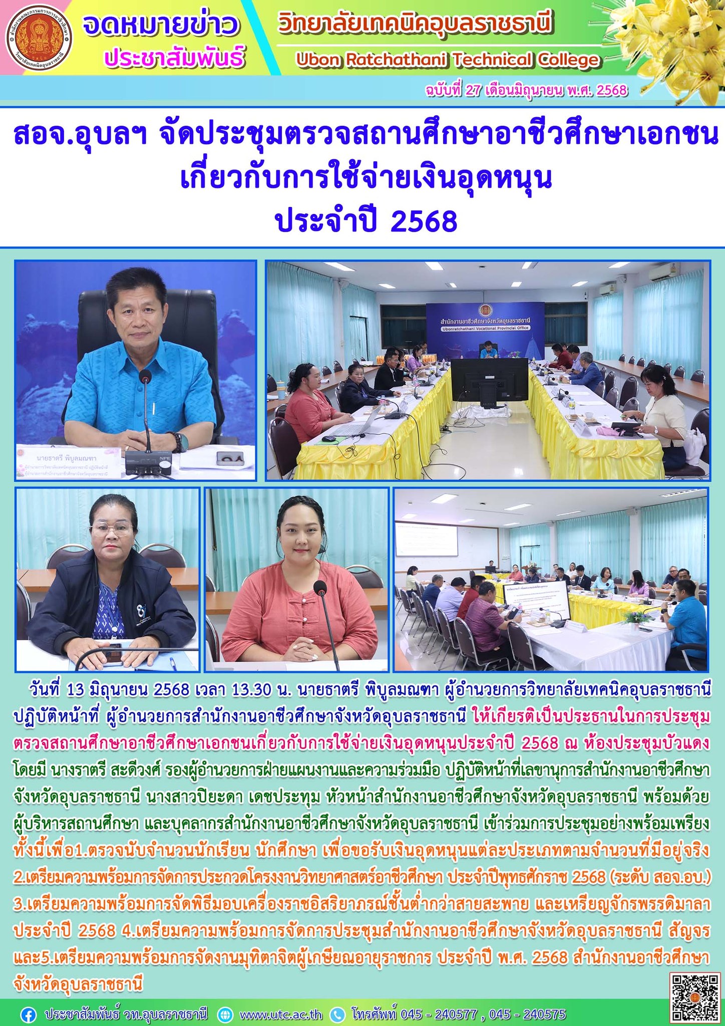 สอจ.อุบลฯ จัดประชุมตรวจสถานศึกษาอาชีวศึกษาเอกชนเกี่ยวกับการใช้จ่ายเงินอุดหนุนประจำปี 2568
