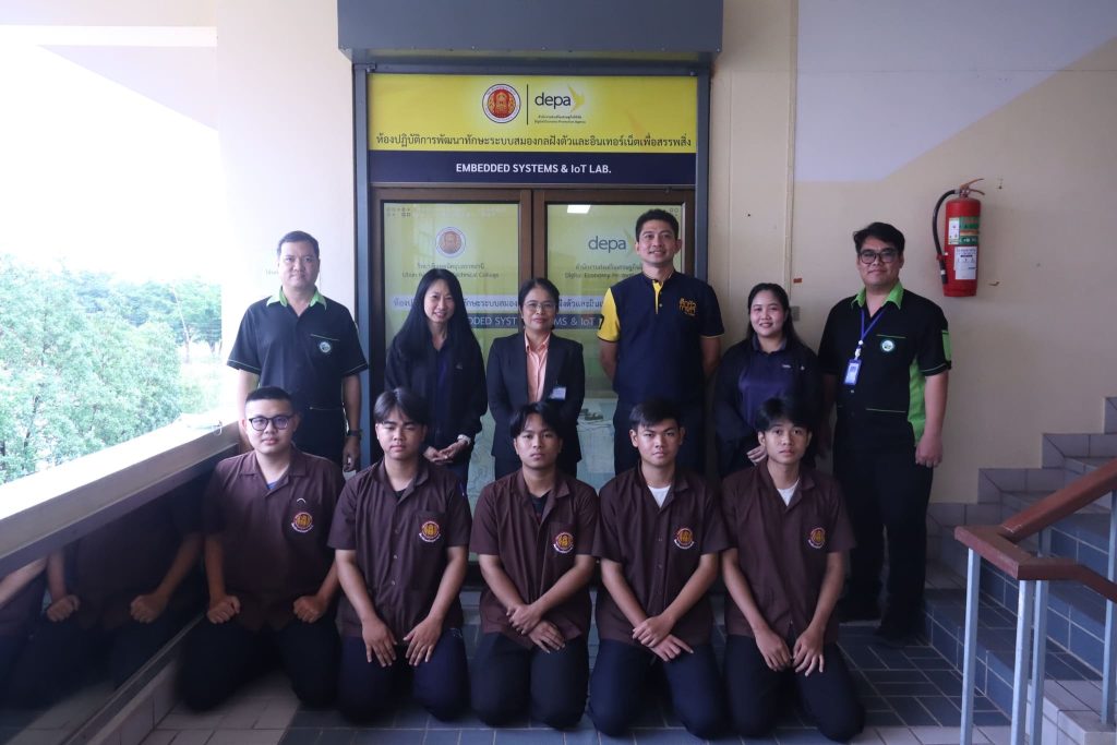 วันที่ 26 มิถุนายน 2568 นายธาตรี พิบูลมณฑา ผู้อำนวยการวิทยาลัยเทคนิคอุบลราชธานี มอบหมายให้ นางสาวสายฝน สาระผล รองผู้อำนวยการฝ่ายบริหารทรัพยากร และนายณัฐพล เทพมา หัวหน้าแผนกวิชาเทคโนโลยีคอมพิวเตอร์ ต้อนรับคณะผู้แทนจากสำนักงานส่งเสริมเศรษฐกิจดิจิทัล ณ ห้องปฏิบัติการพัฒนาระบบสมองกลฝังตัวและ IoT (DEPA 431) วิทยาลัยเทคนิคอุบลราชธานี โดยมี นายชวาล แข็งแรง ครูแผนกวิชาเทคโนโลยีคอมพิวเตอร์ เป็นผู้นำเสนอข้อมูลในครั้งนี้ ทั้งนี้เพื่อติดตามผลการดำเนินงานของห้องปฏิบัติการพัฒนาระบบสมองกลฝังตัวและ IoT (DEPA 431) และเพื่อสำรวจและประเมินการรับรู้ความเชื่อมั่น และผลกระทบทางเศรษฐกิจและสังคมของผู้รับบริการจากสำนักงานส่งเสริมเศรษฐกิจดิจิทัล โดยนำผลที่ได้มาเป็นข้อเสนอแนะสำหรับใช้ในการพัฒนาและปรับปรุงการดำเนินงานให้มีประสิทธิภาพและประสิทธิผลยิ่งขึ้นต่อไป
