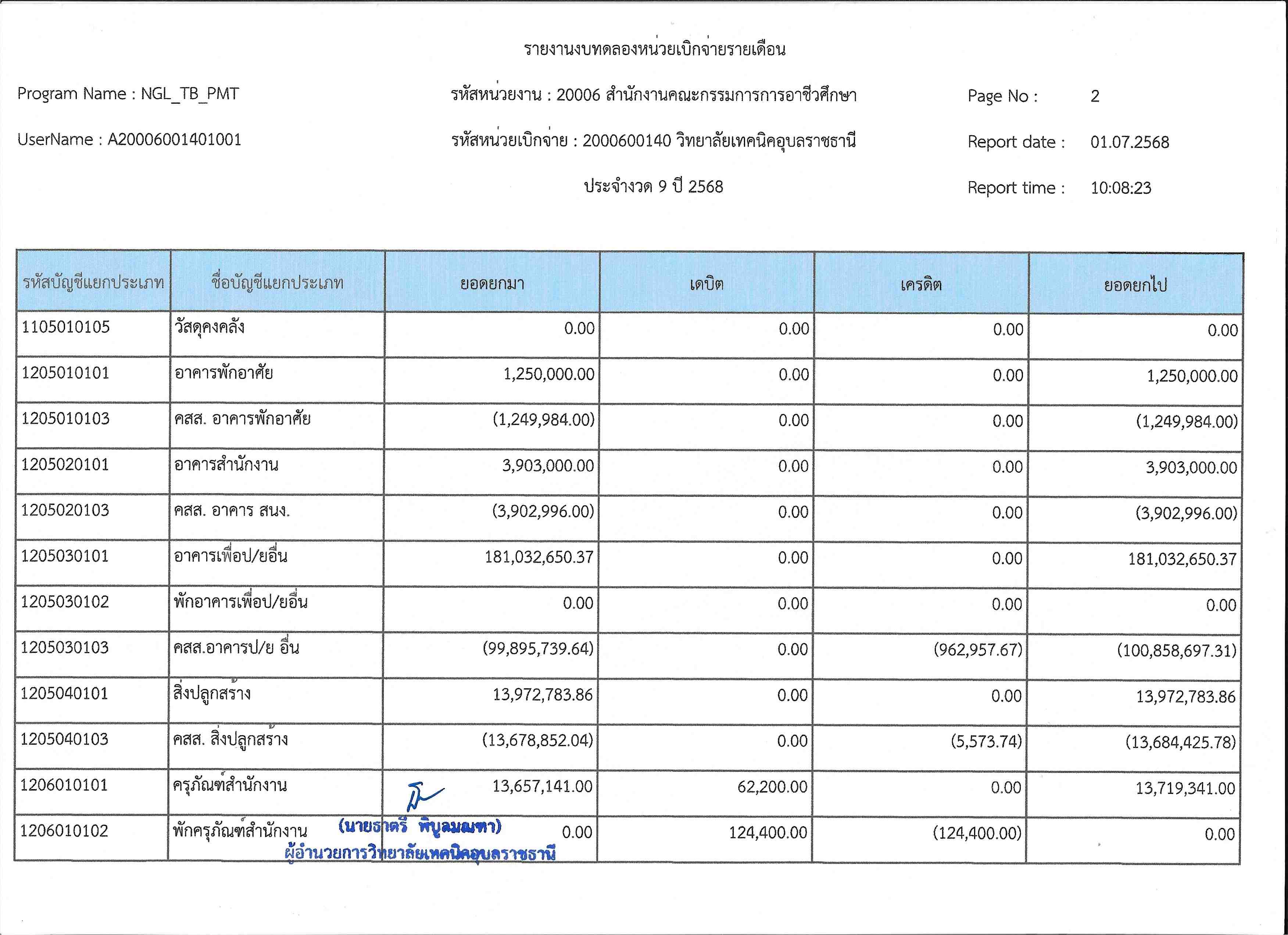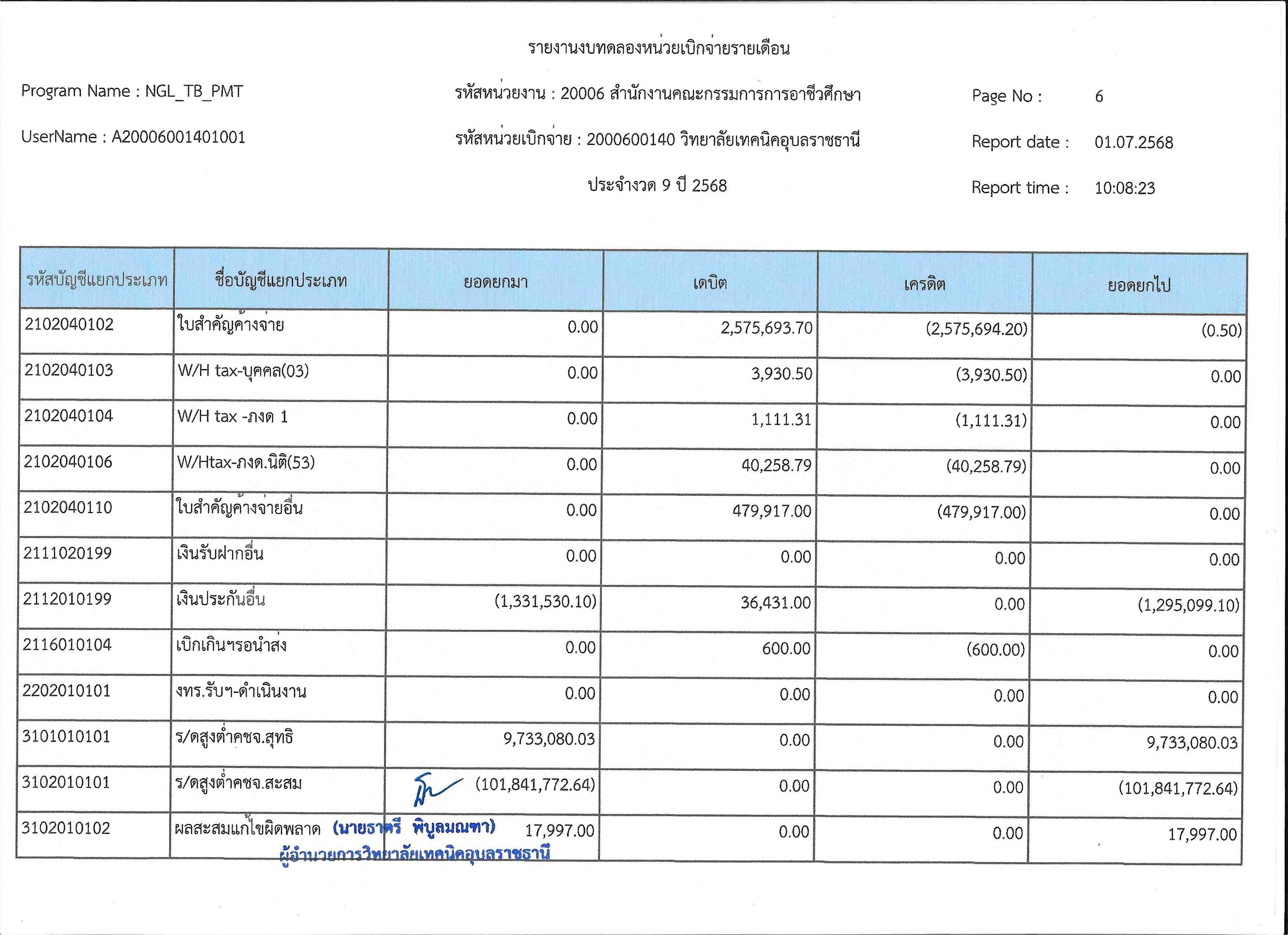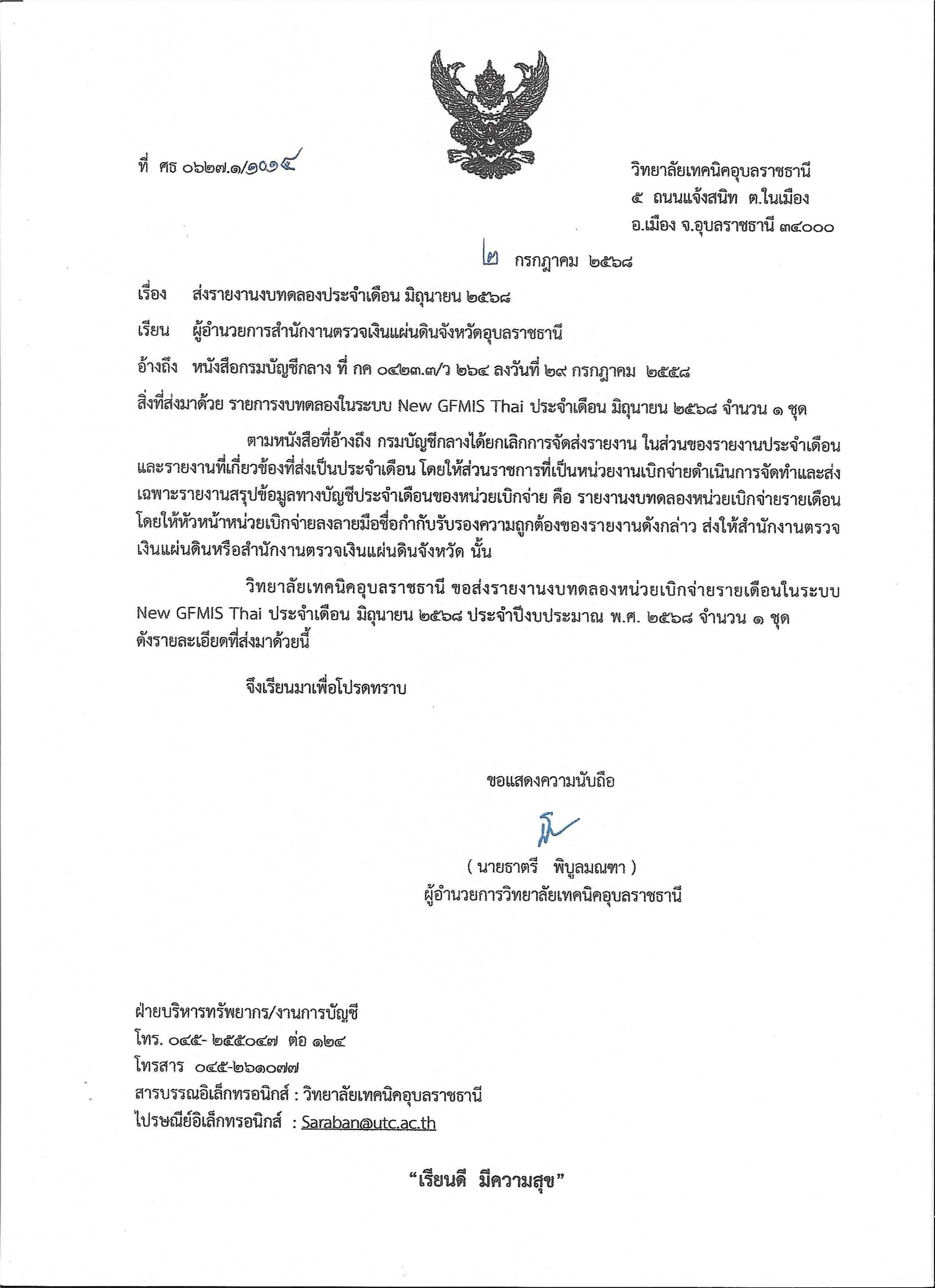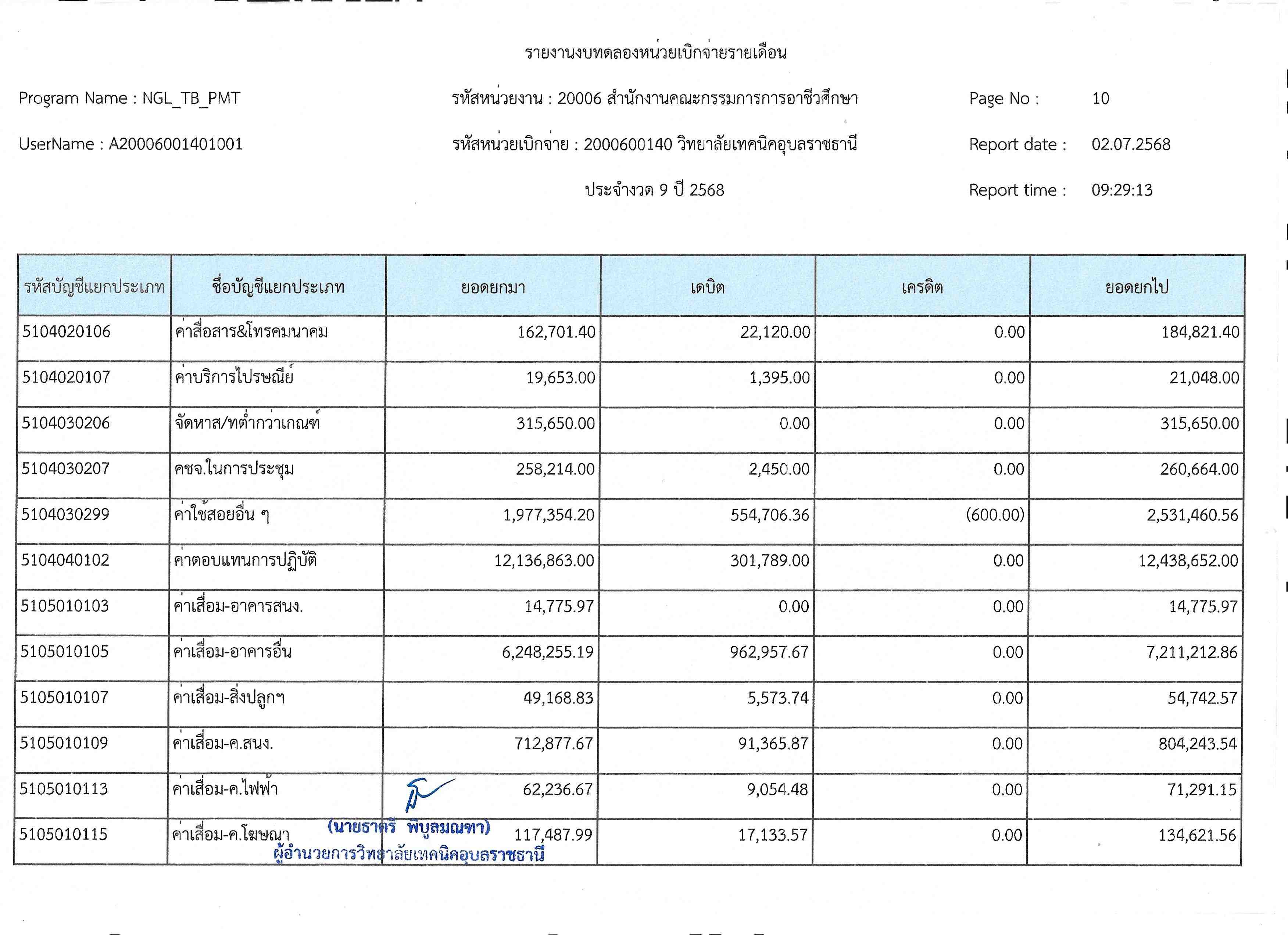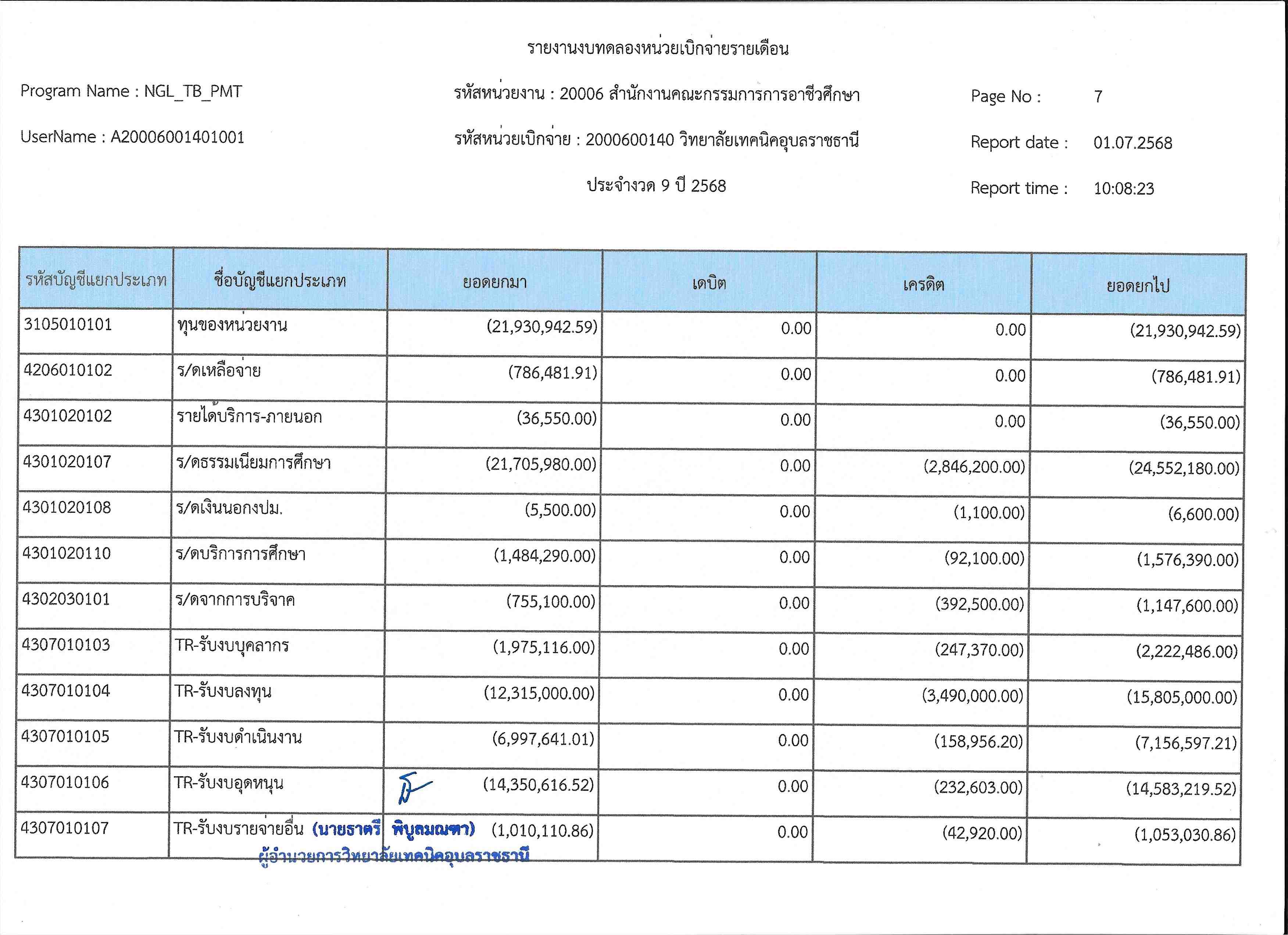 รายงานงบทดลองประจำเดือนมิถุนายน 2568