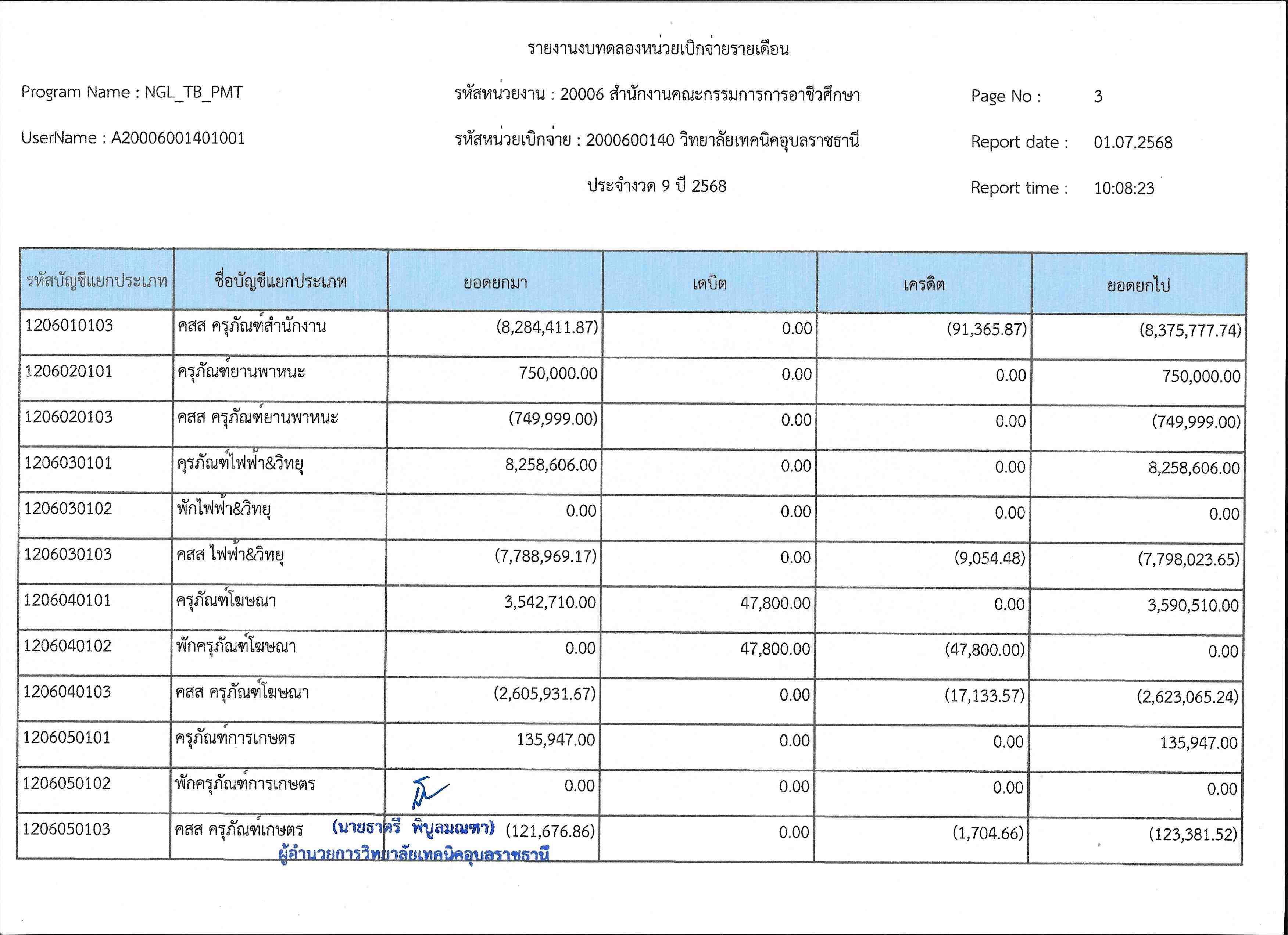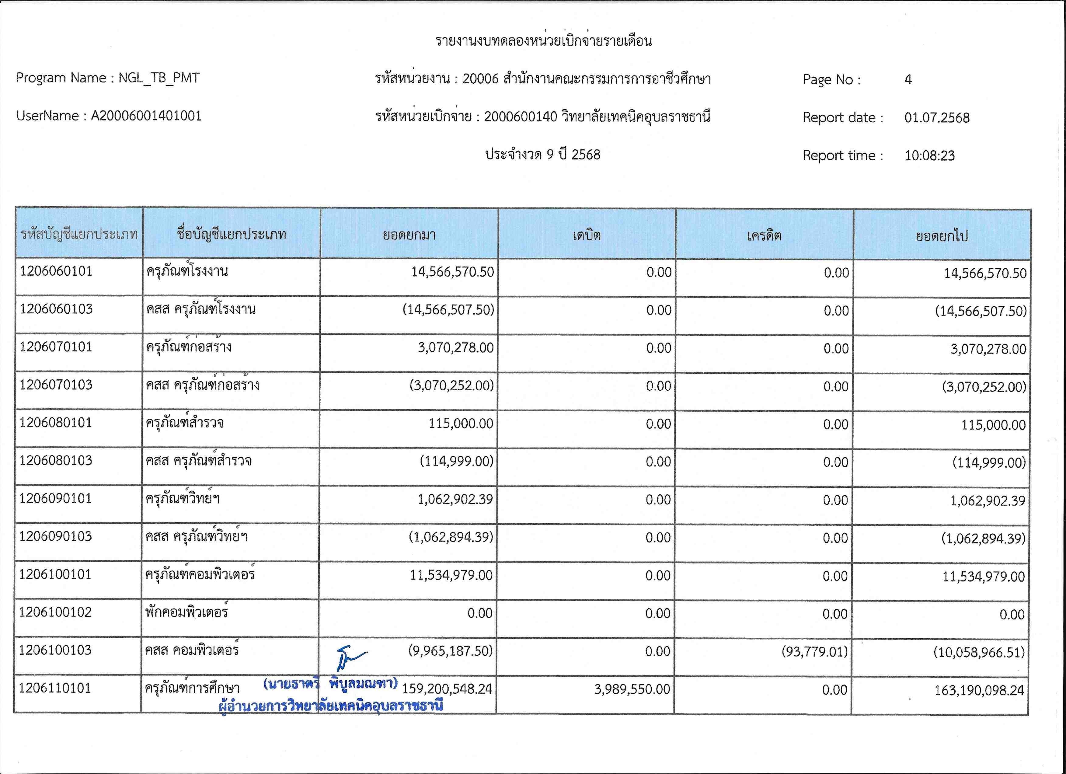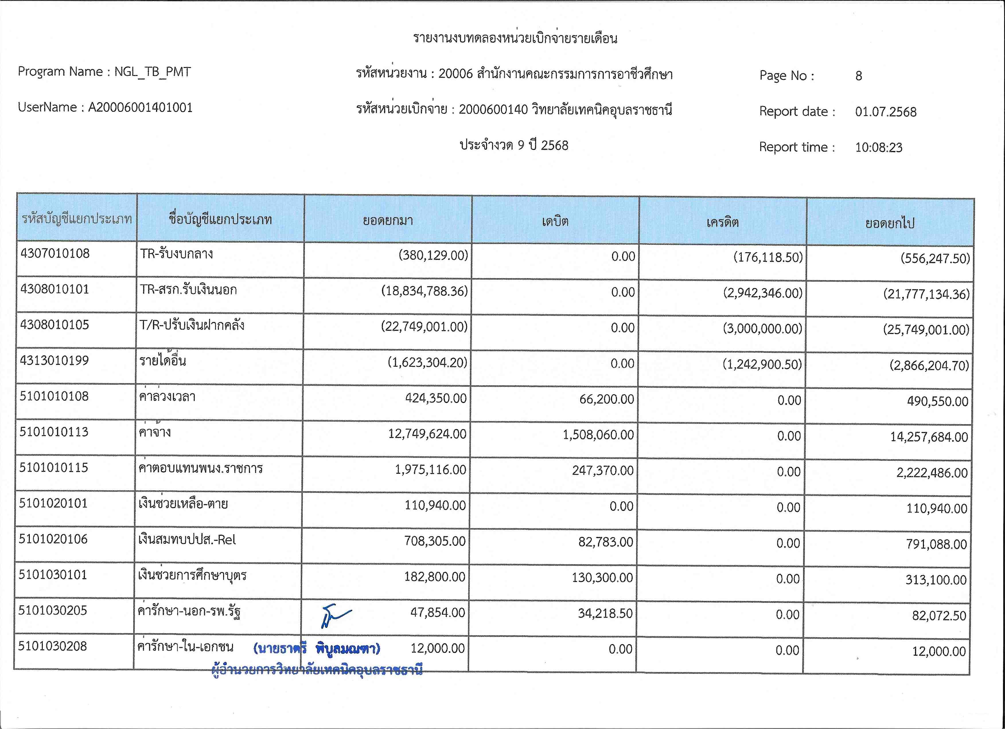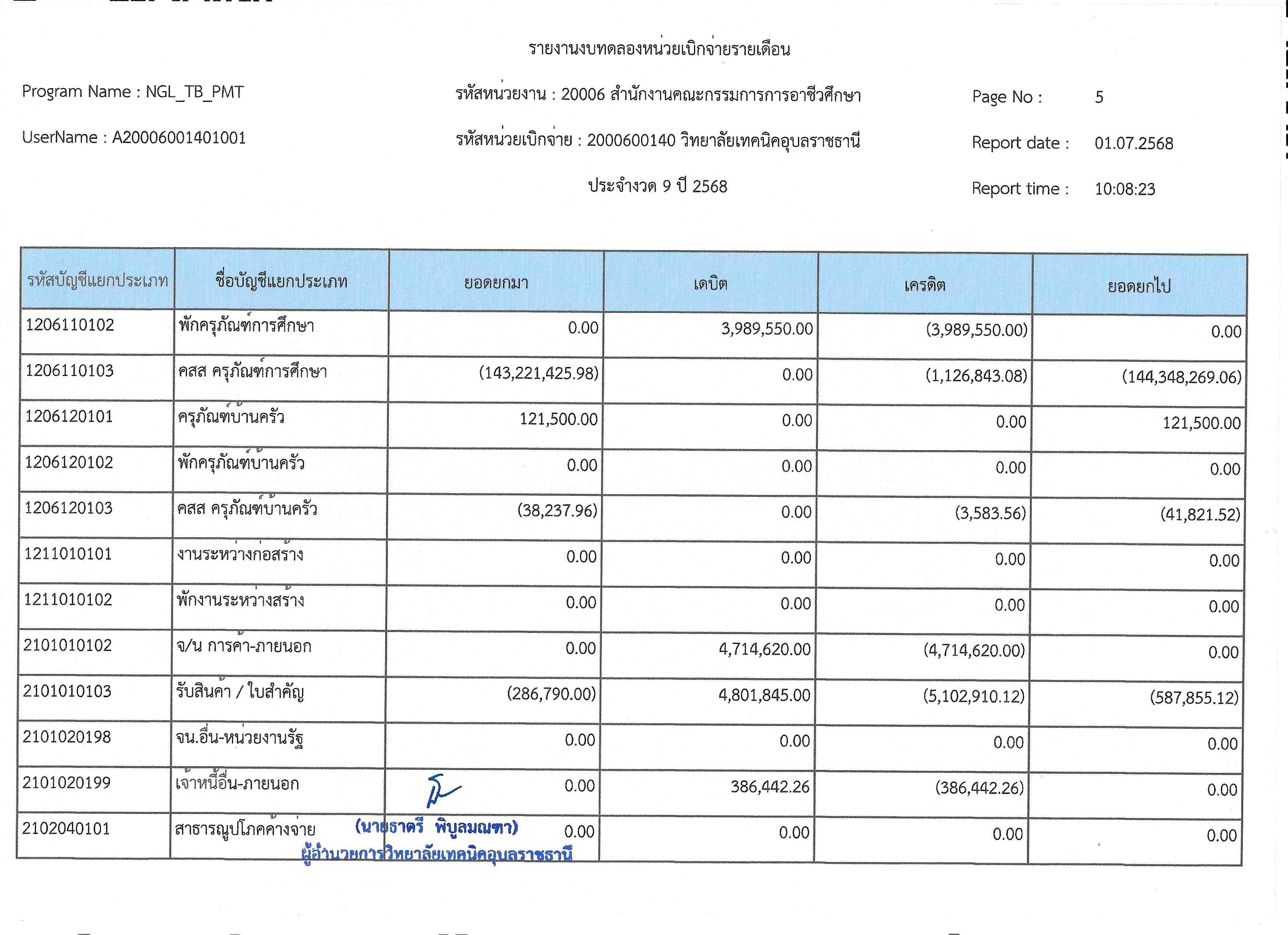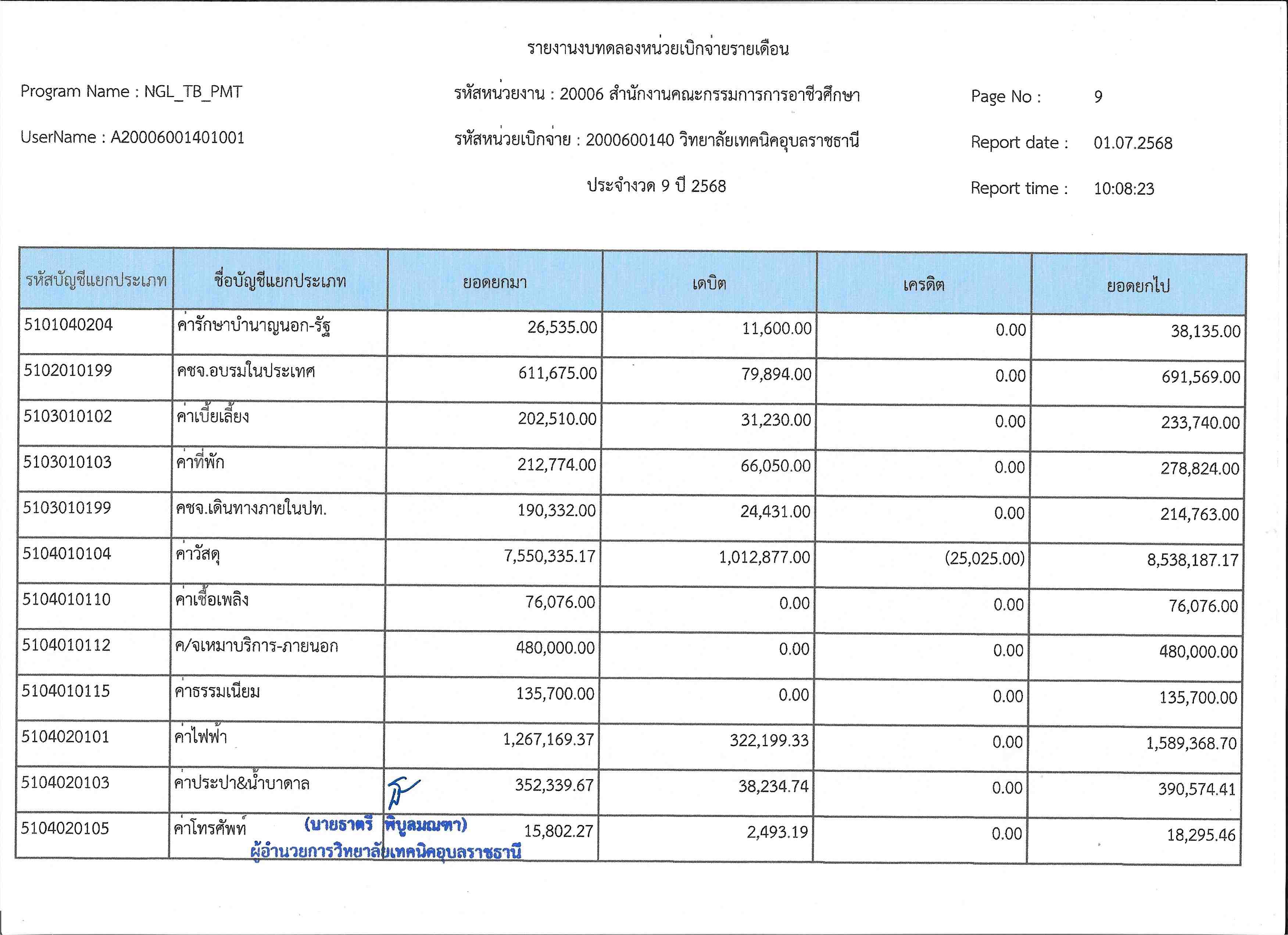รายงานงบทดลองประจำเดือนมิถุนายน 2568
