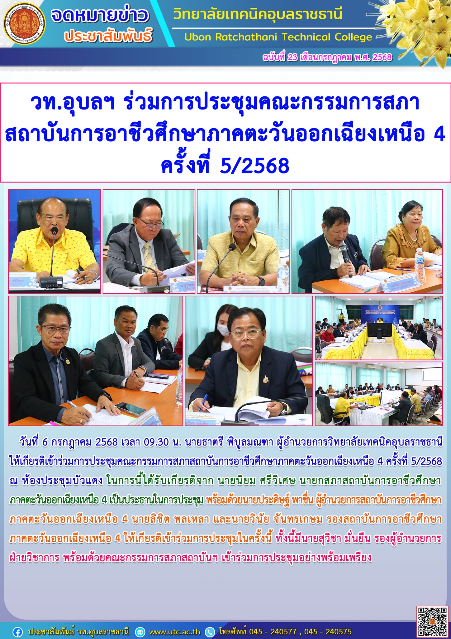 วท.อุบลฯ ร่วมการประชุมคณะกรรมการสภาสถาบันการอาชีวศึกษาภาคตะวันออกเฉียงเหนือ 4 ครั้งที่ 5/2568