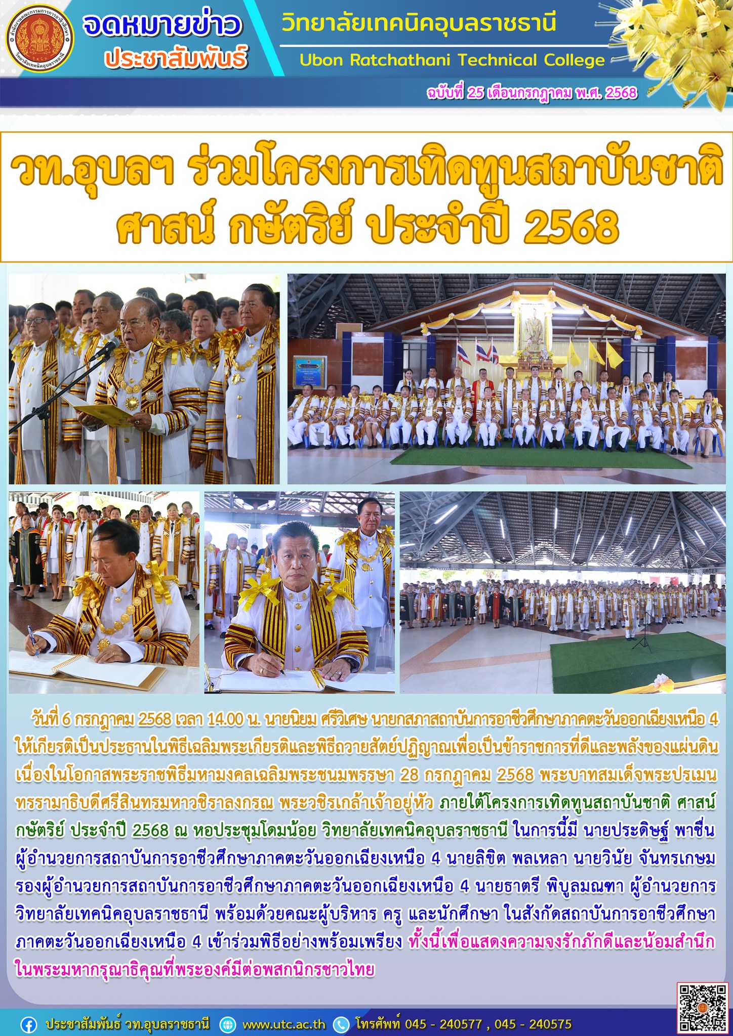วท.อุบลฯ ร่วมโครงการเทิดทูนสถาบันชาติ ศาสน์ กษัตริย์ ประจำปี 2568