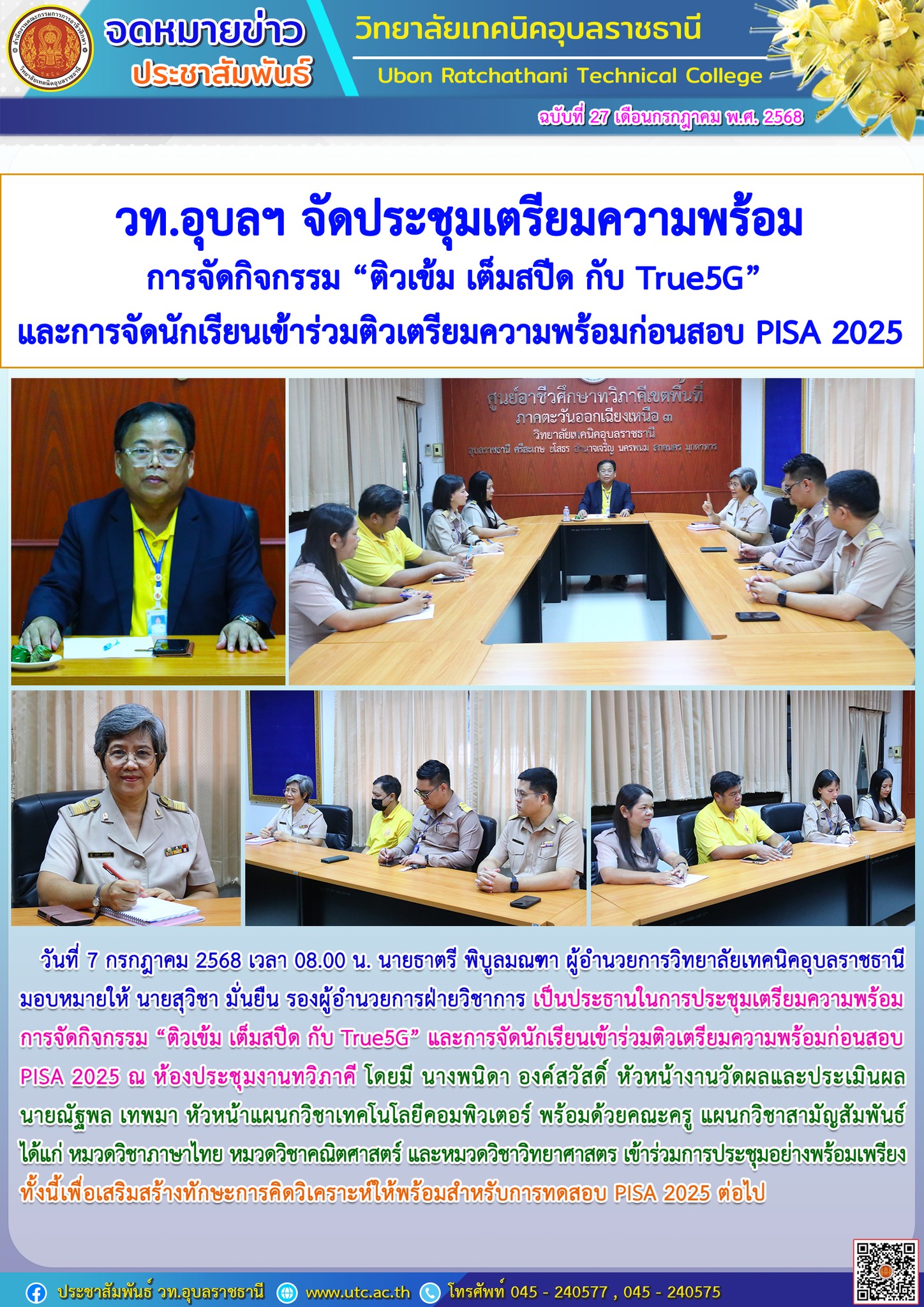 FacebookTwitterLineวันที่ 26 มิถุนายน 2568 เวลา 08.00 น. นายธาตรี พิบูลมณฑา ผู้อำนวยการวิทยาลัยเทคนิคอุบลราชธานี มอบหมายให้ นายไวพจน์ ศรีธัญ รองผู้อำนวยการฝ่ายพัฒนากิจการนักเรียนนักศึกษา พร้อมด้วยคณะครู และ (เพิ่มเติม…)