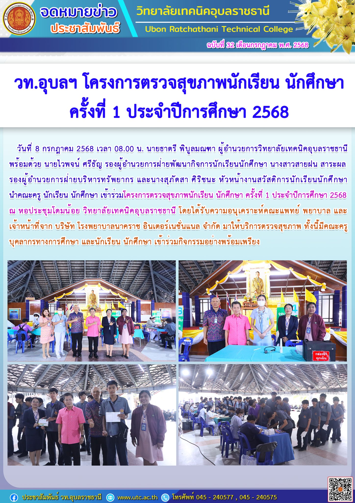 วท.อุบลฯ โครงการตรวจสุขภาพนักเรียน นักศึกษา ครั้งที่ 1 ประจำปีการศึกษา 2568