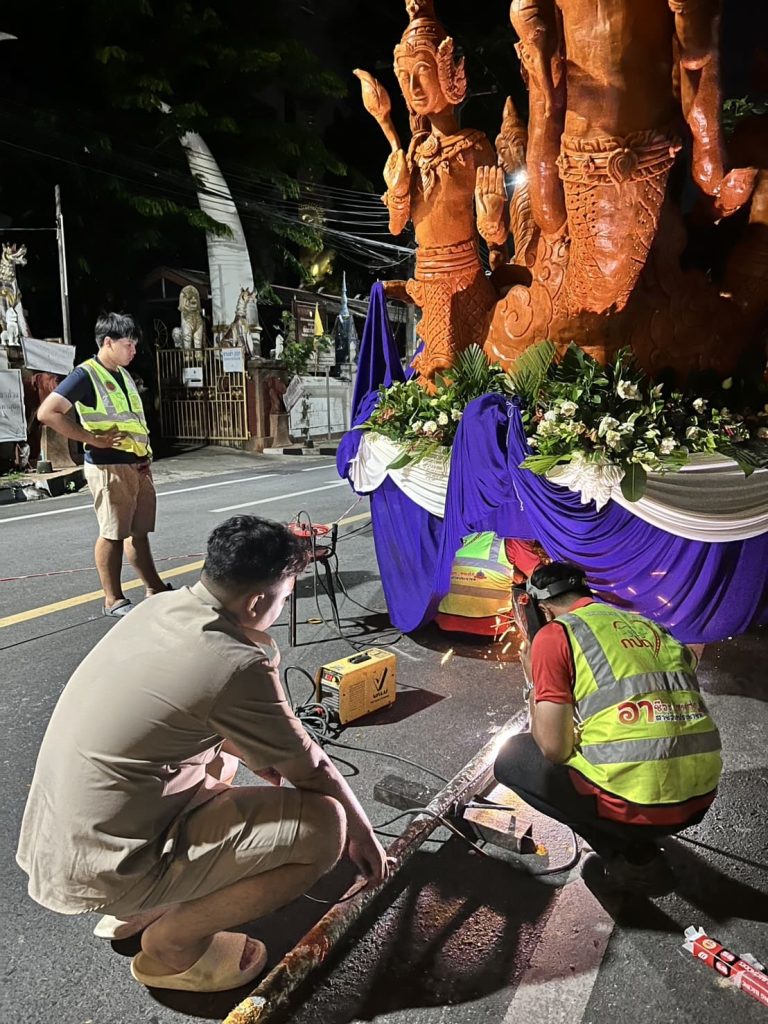 งานโครงการพิเศษและการบริการชุมชน ลงพื้นที่บริการซ่อมแซมรถต้นเทียนที่เข้าร่วมขบวนแห่เทียน ภายใต้กิจกรรมอาชีวะอาสา ตรวจรถก่อนใช้งานประเพณีแห่เทียนพรรษาจังหวัดอุบลราชธานี