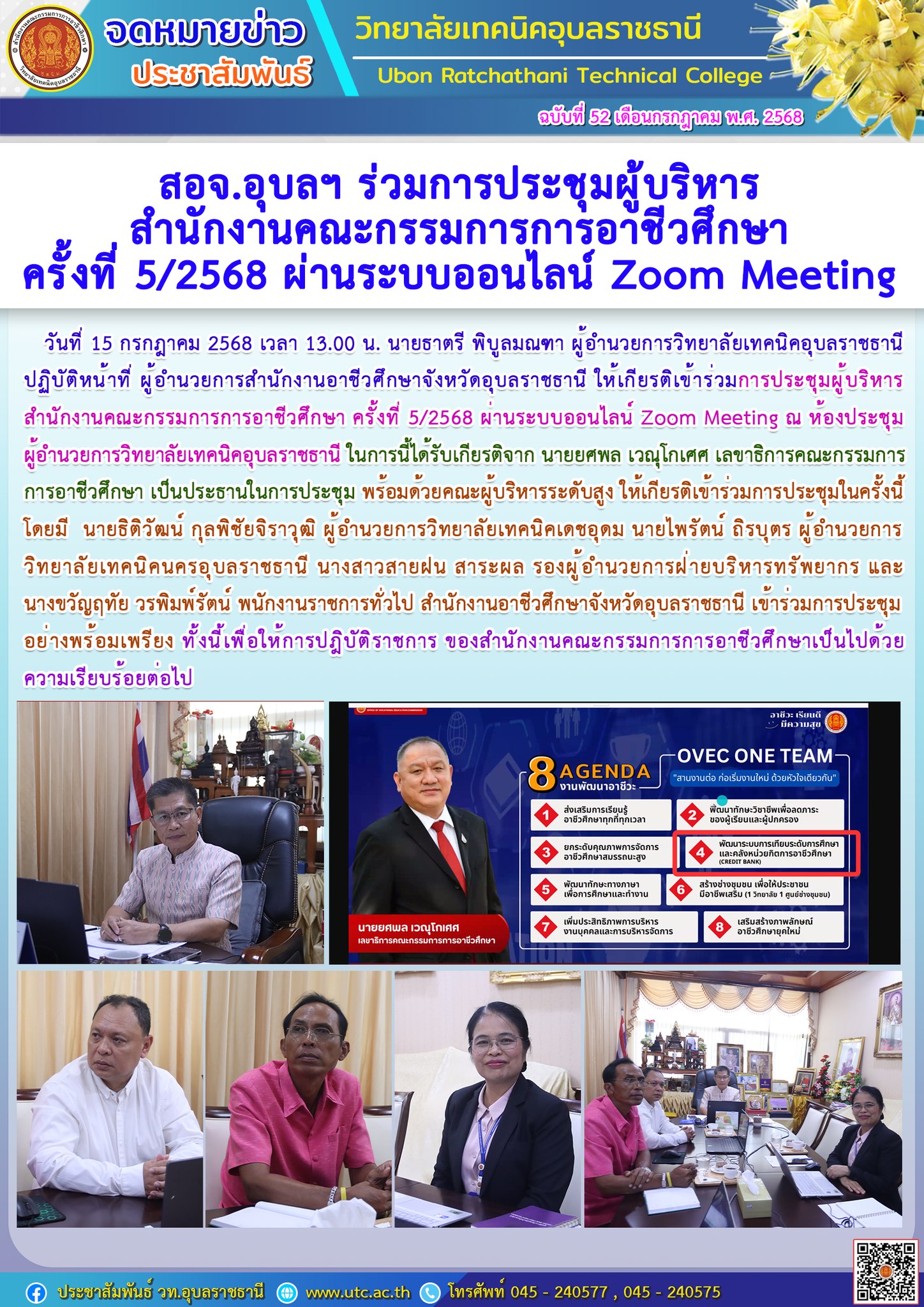 สอจ.อุบลฯ ร่วมการประชุมผู้บริหาร สำนักงานคณะกรรมการการอาชีวศึกษา ครั้งที่ 5/2568 ผ่านระบบออนไลน์ Zoom Meeting