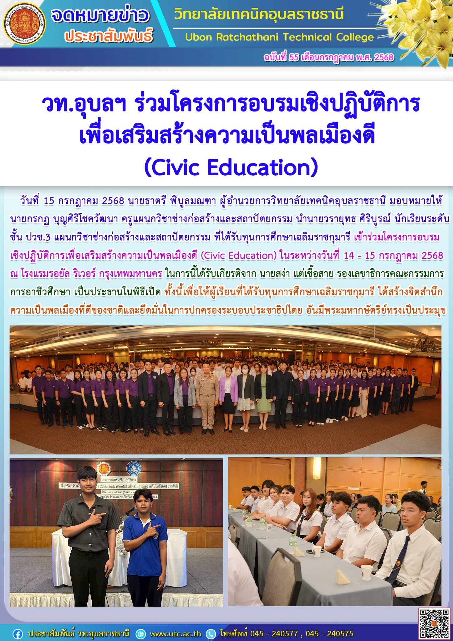 วท.อุบลฯ ร่วมโครงการอบรมเชิงปฏิบัติการเพื่อเสริมสร้างความเป็นพลเมืองดี (Civic Education)