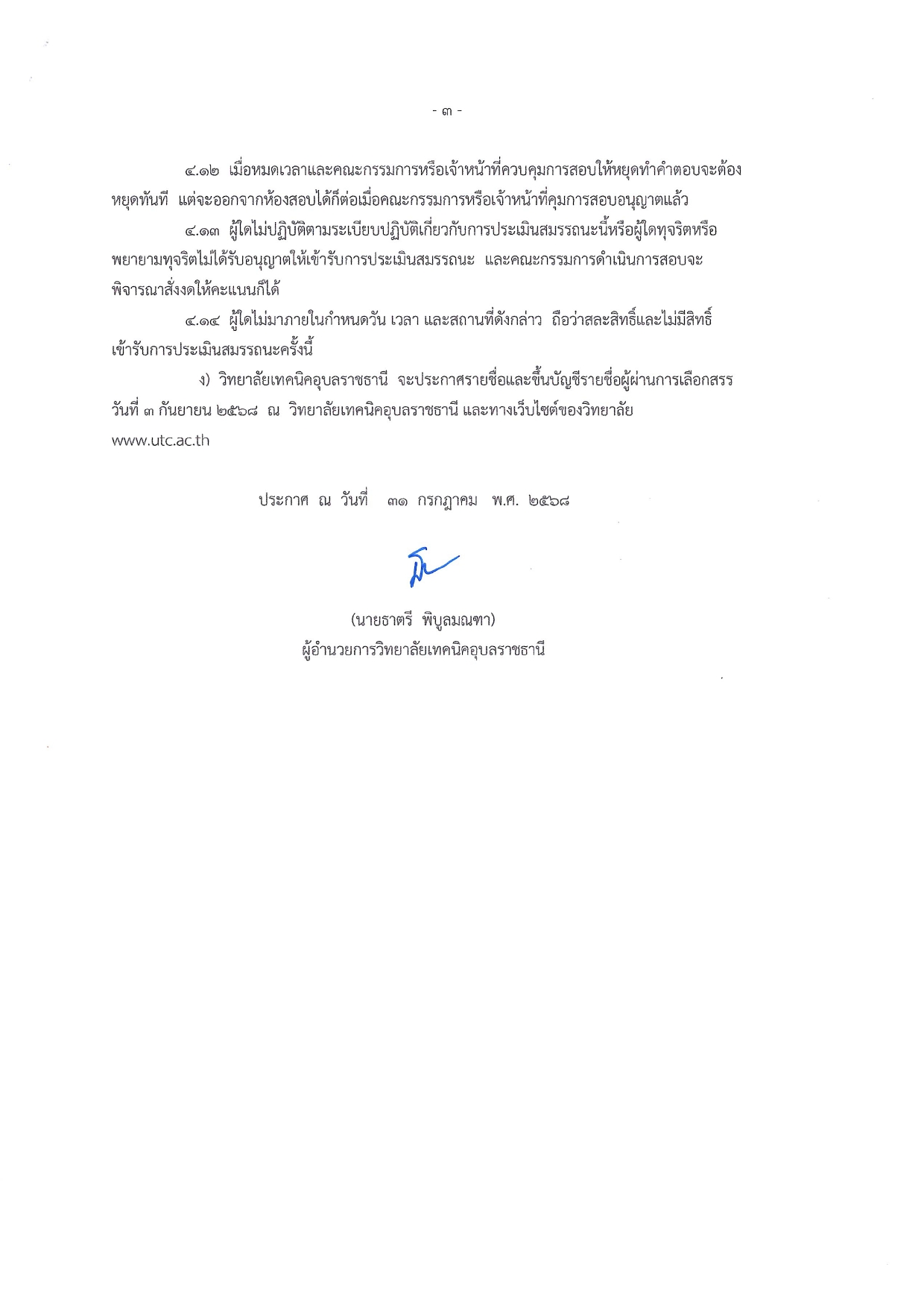 ประกาศวิทยาลัยเทคนิคอุบลราชธานี