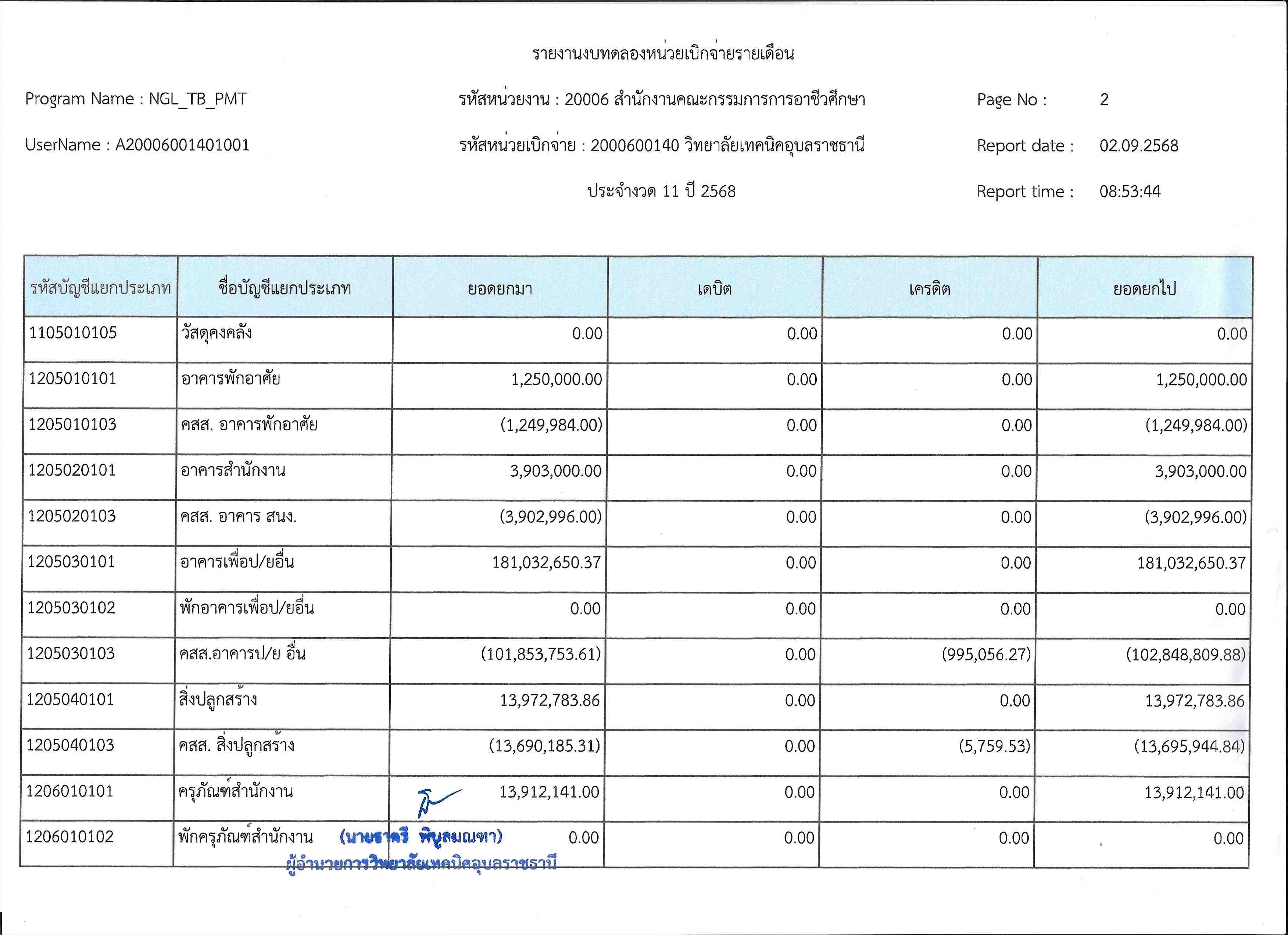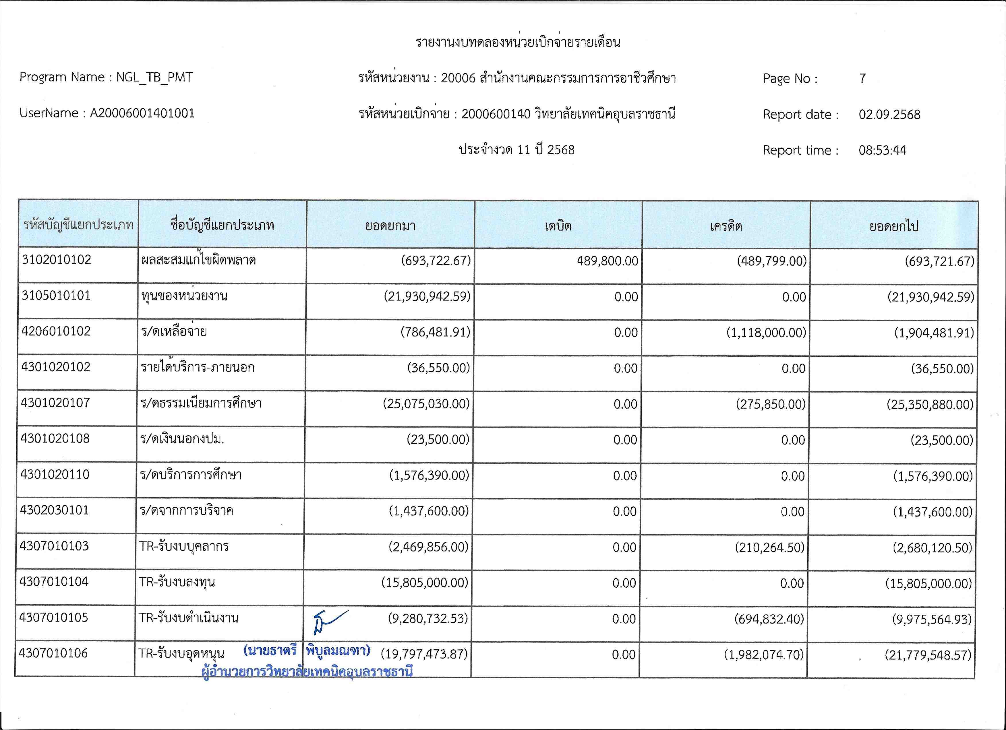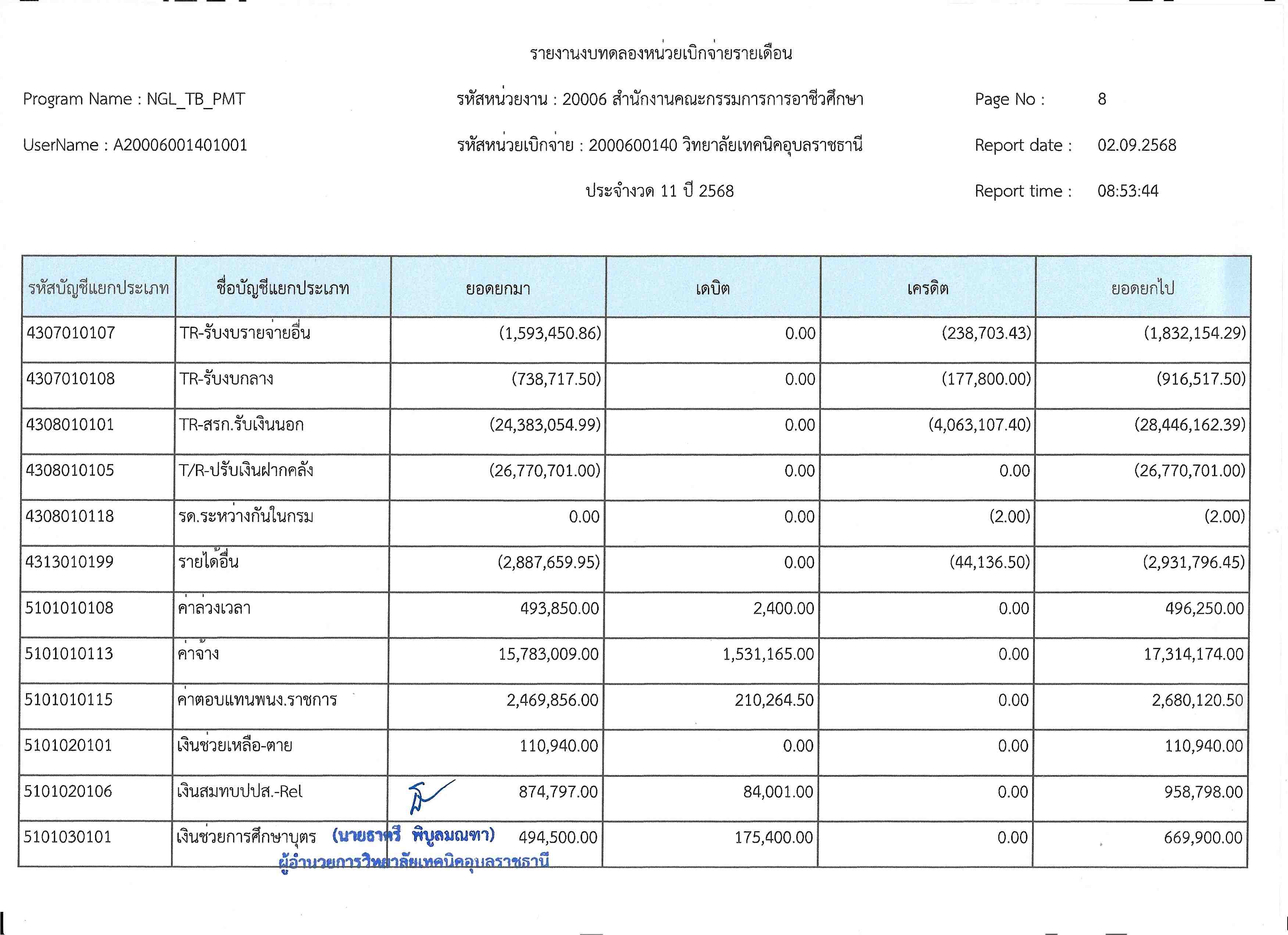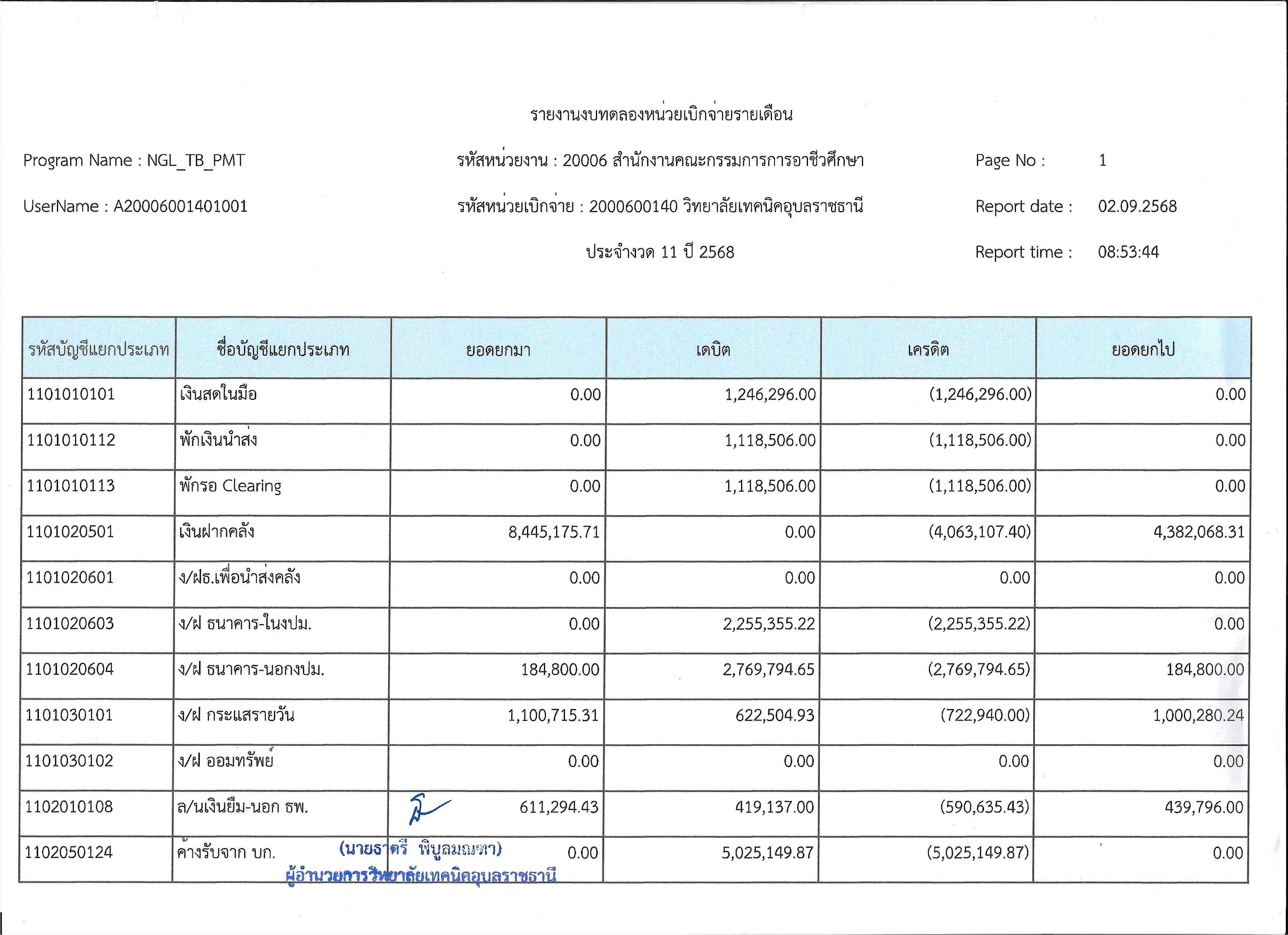 รายงานงบทดลองประจำเดือนสิงหาคม 2568