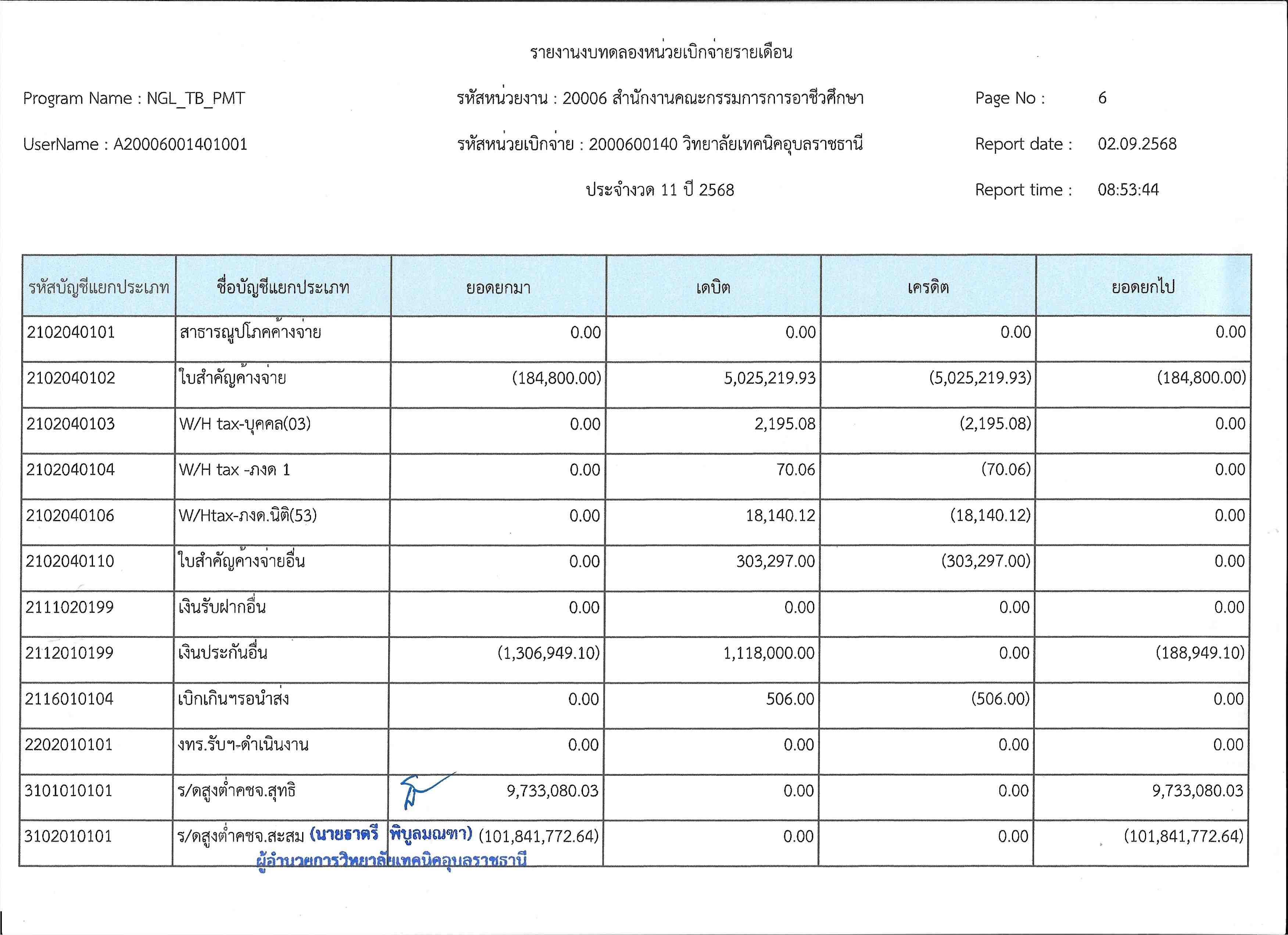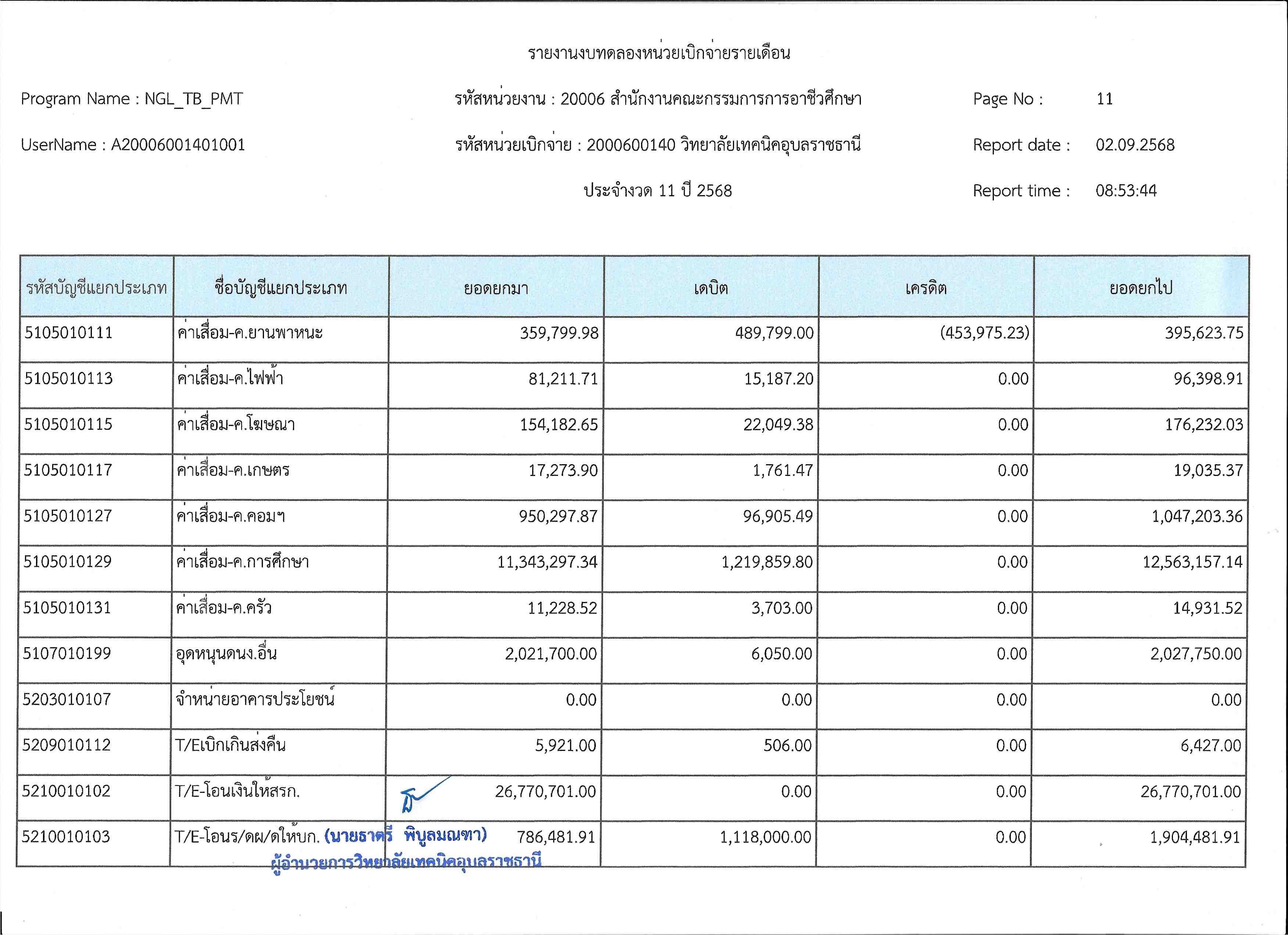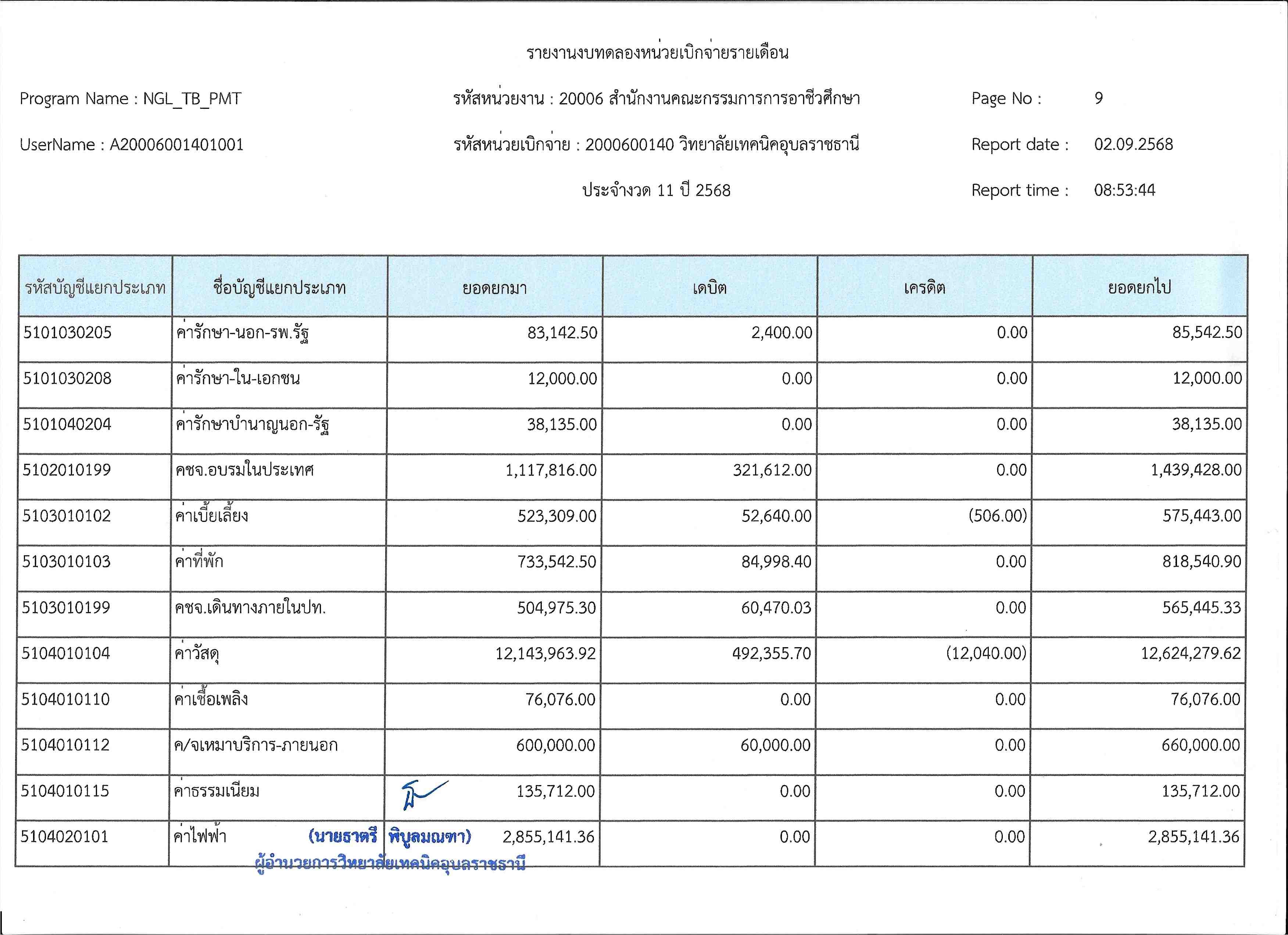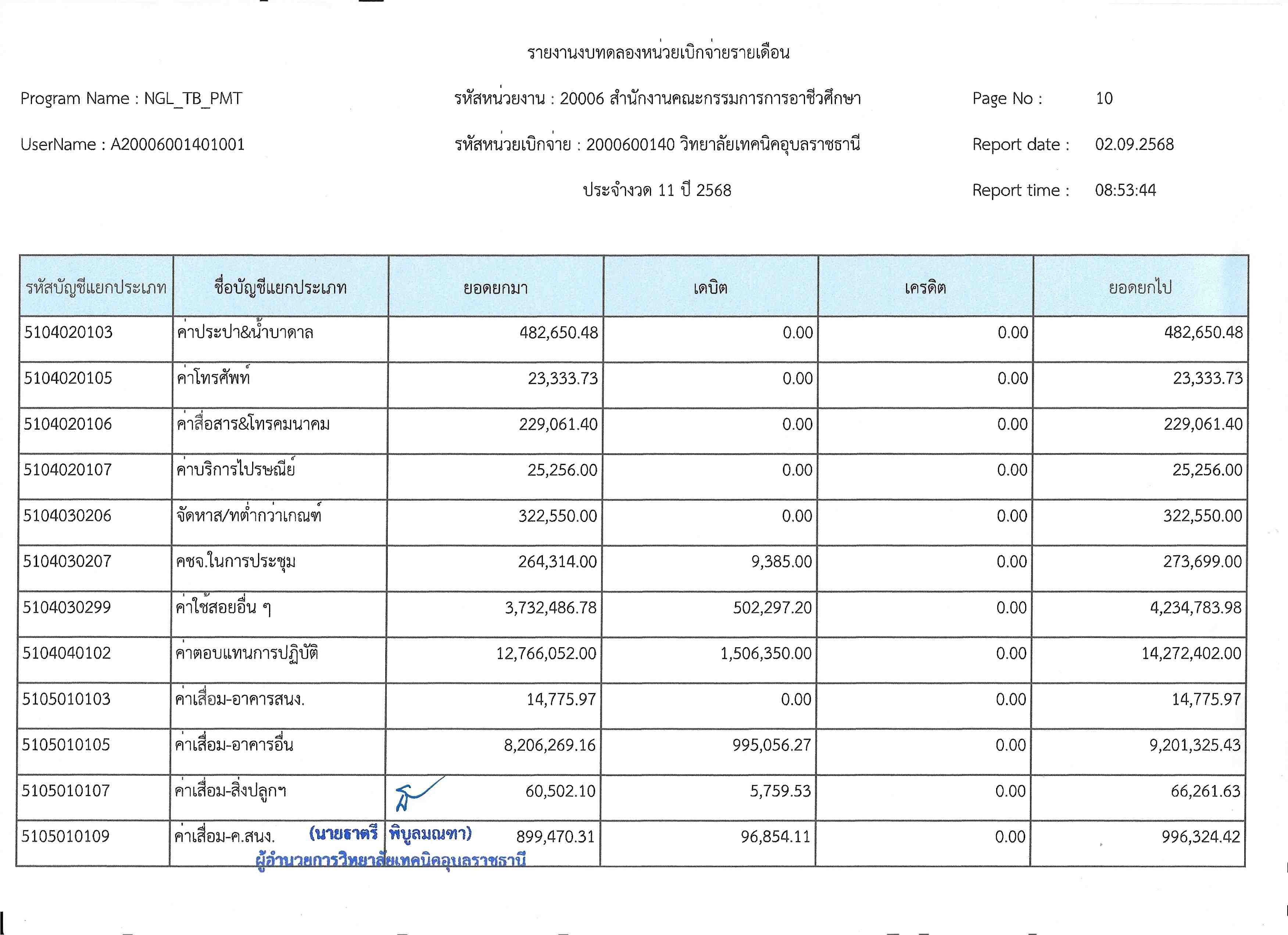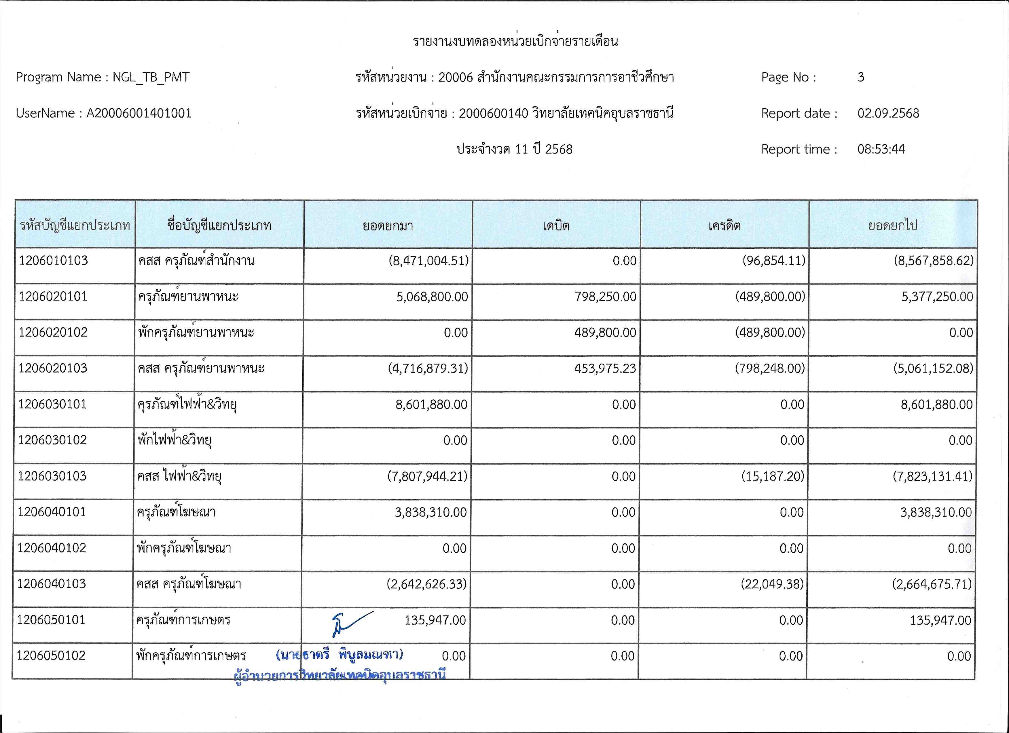 รายงานงบทดลองประจำเดือนสิงหาคม 2568