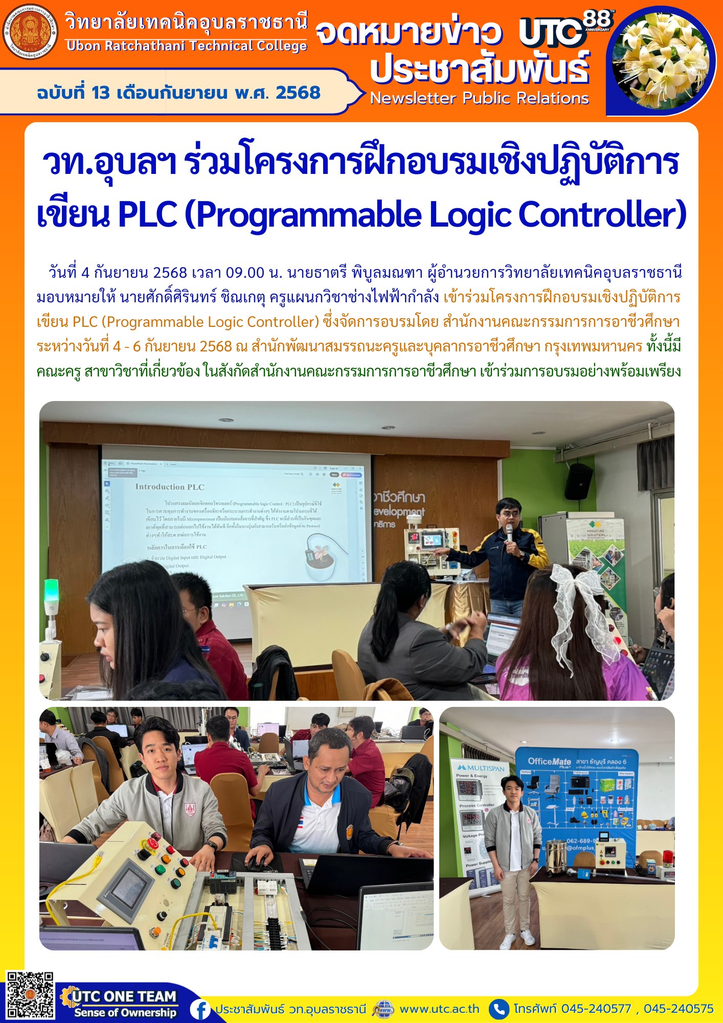 วท.อุบลฯ ร่วมโครงการฝึกอบรมเชิงปฏิบัติการเขียน PLC (Programmable Logic Controller)