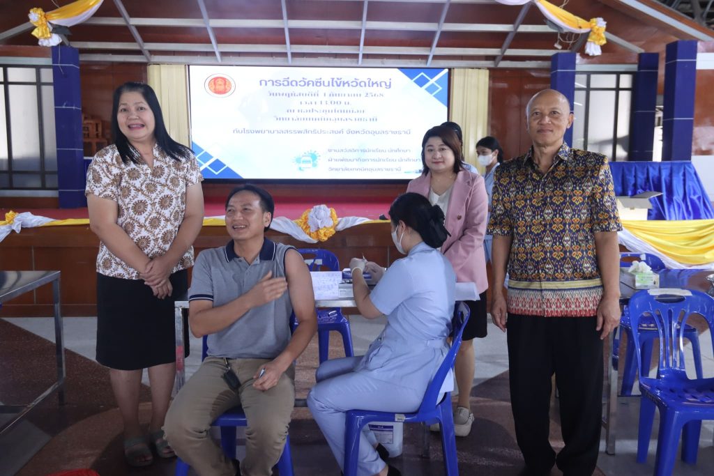 รองผู้อำนวยการฝ่ายพัฒนากิจการนักเรียนนักศึกษา ตรวจเยี่ยมการดำเนินการฉีดวัคซีนไข้หวัดใหญ่ จากคณะแพทย์ พยาบาล และเจ้าหน้าที่จากโรงพยาบาลสรรพสิทธิประสงค์