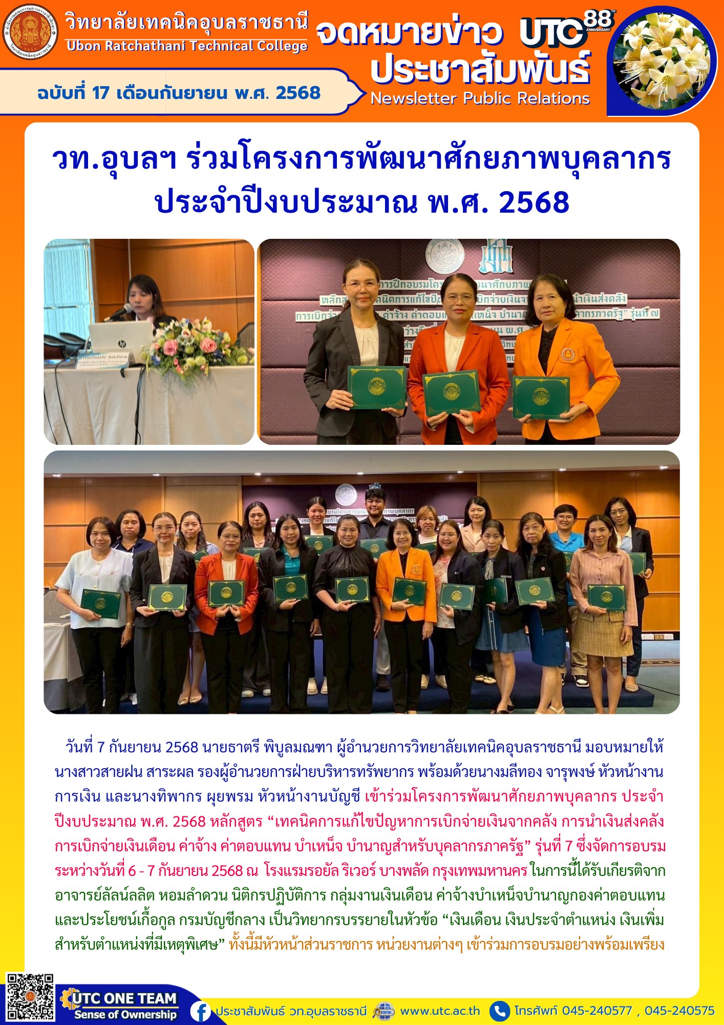 วท.อุบลฯ ร่วมโครงการพัฒนาศักยภาพบุคลากร ประจำปีงบประมาณ พ.ศ. 2568
