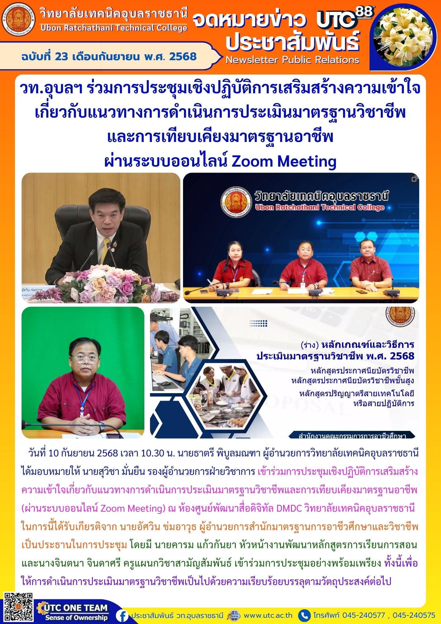 FacebookTwitterLineวันที่ 2 ตุลาคม 2568 เวลา 07.30 น. นายธาตรี พิบูลมณฑา ผู้อำนวยการวิทยาลัยเทคนิคอุบลราชธานี มอบหมายให้ นายไวพจน์ ศรีธัญ รองผู้อำนวยการฝ่ายพัฒนากิจการนักเรียน (เพิ่มเติม…)