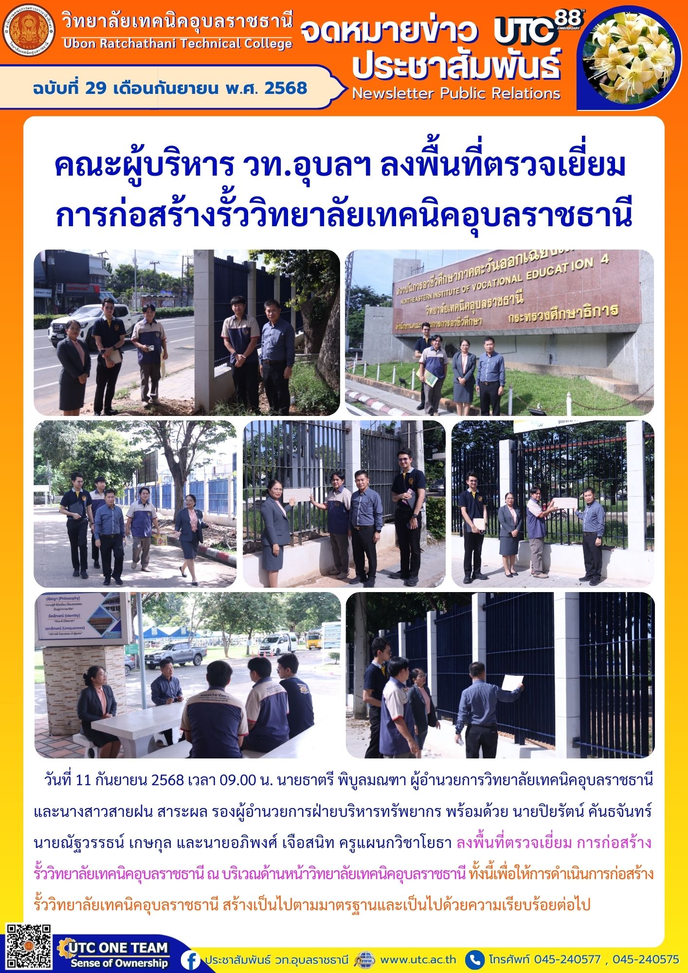 คณะผู้บริหาร วท.อุบลฯ ลงพื้นที่ตรวจเยี่ยม การก่อสร้างรั้ววิทยาลัยเทคนิคอุบลราชธานี