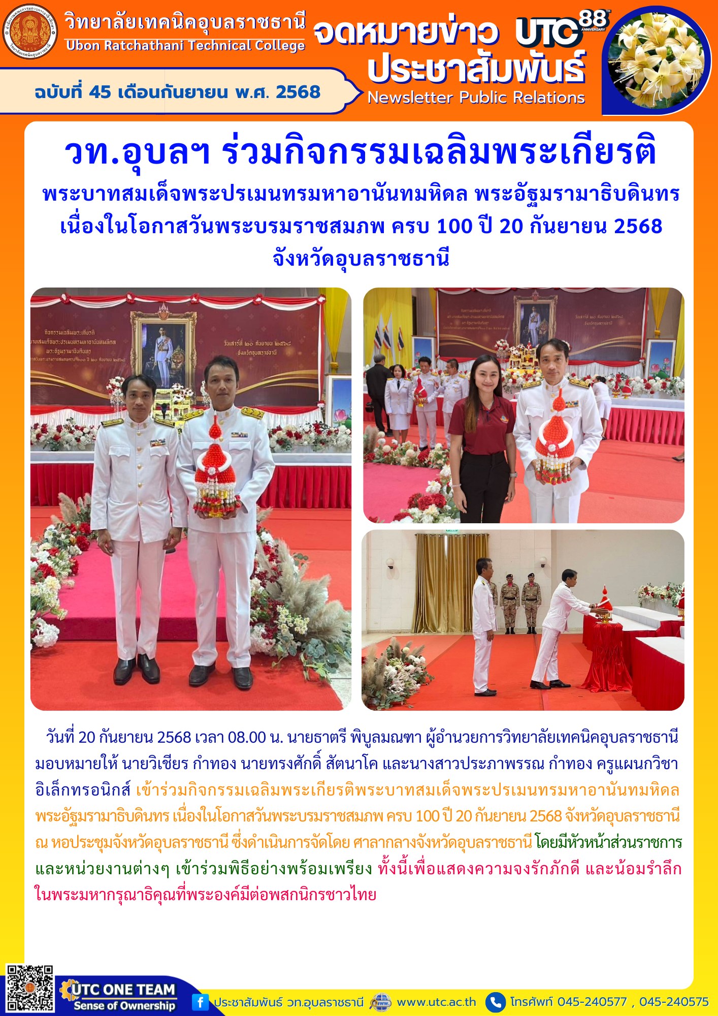 FacebookTwitterLineวันที่ ๒๓ กรกฎาคม ๒๕๖๖ เวลา ๐๙.๓๐ น. นายธาตรี พิบูลมณฑา ผู้อำนวยการวิทยาลัยเทคนิคอุบลราชธานี ให้เกียรติกล่าวรายงานในพิ (เพิ่มเติม…)