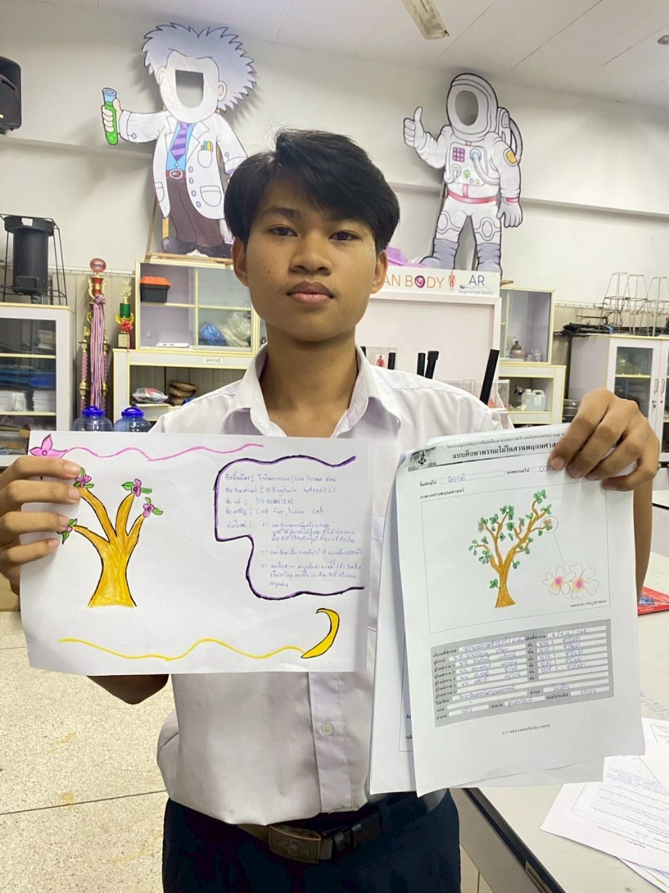 ผลงานนักศึกษาสำรวจและศึกษาพรรณไม้ ทำร่างพรรณไม้บูรณาการงานสวนพฤกษศาสตร์โรงเรียน ลงในรายวิชาวิทยาศาสตร์ชธ.1/1