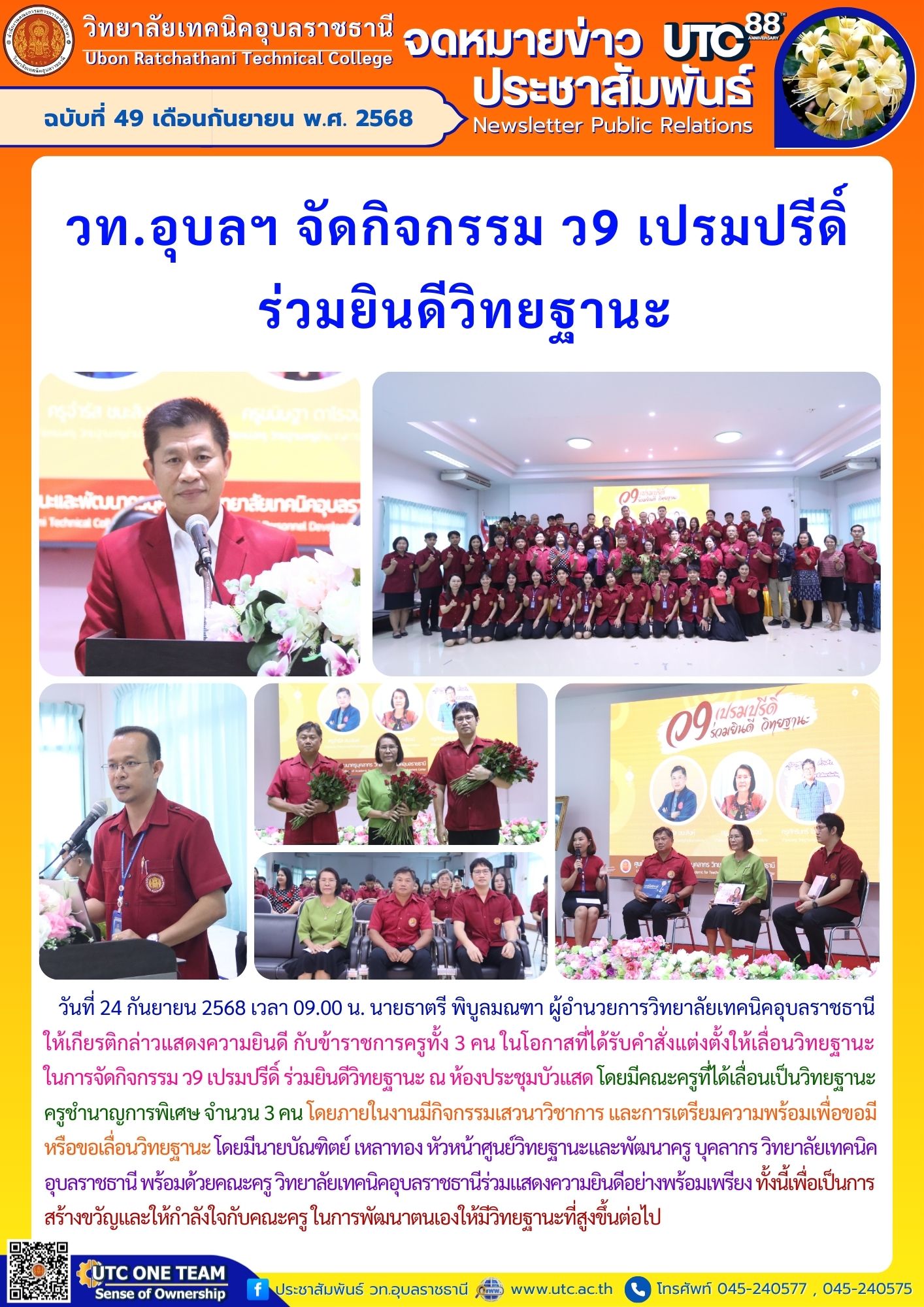 วท.อุบลฯ จัดกิจกรรม ว9 เปรมปรีดิ์ ร่วมยินดีวิทยฐานะ
