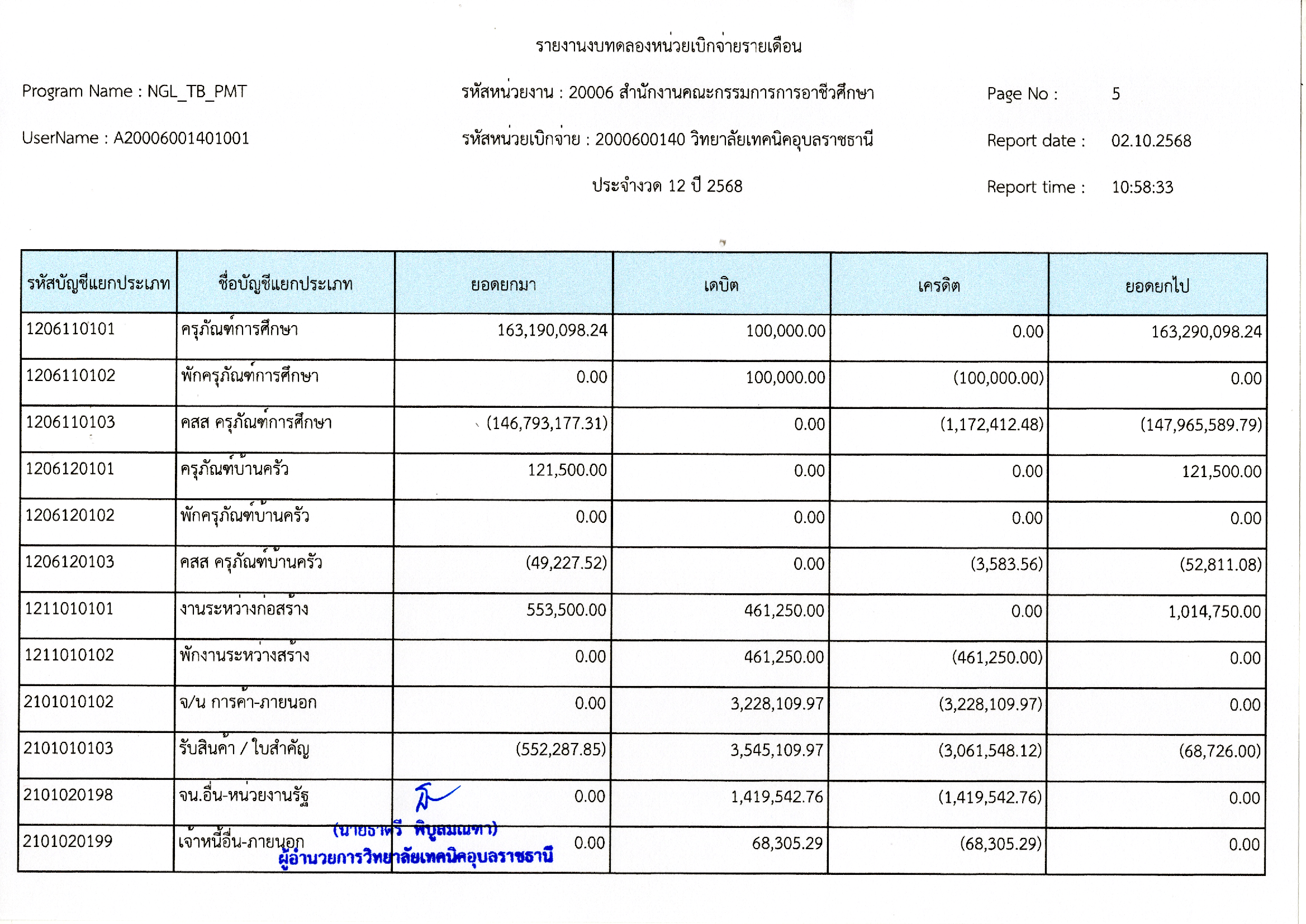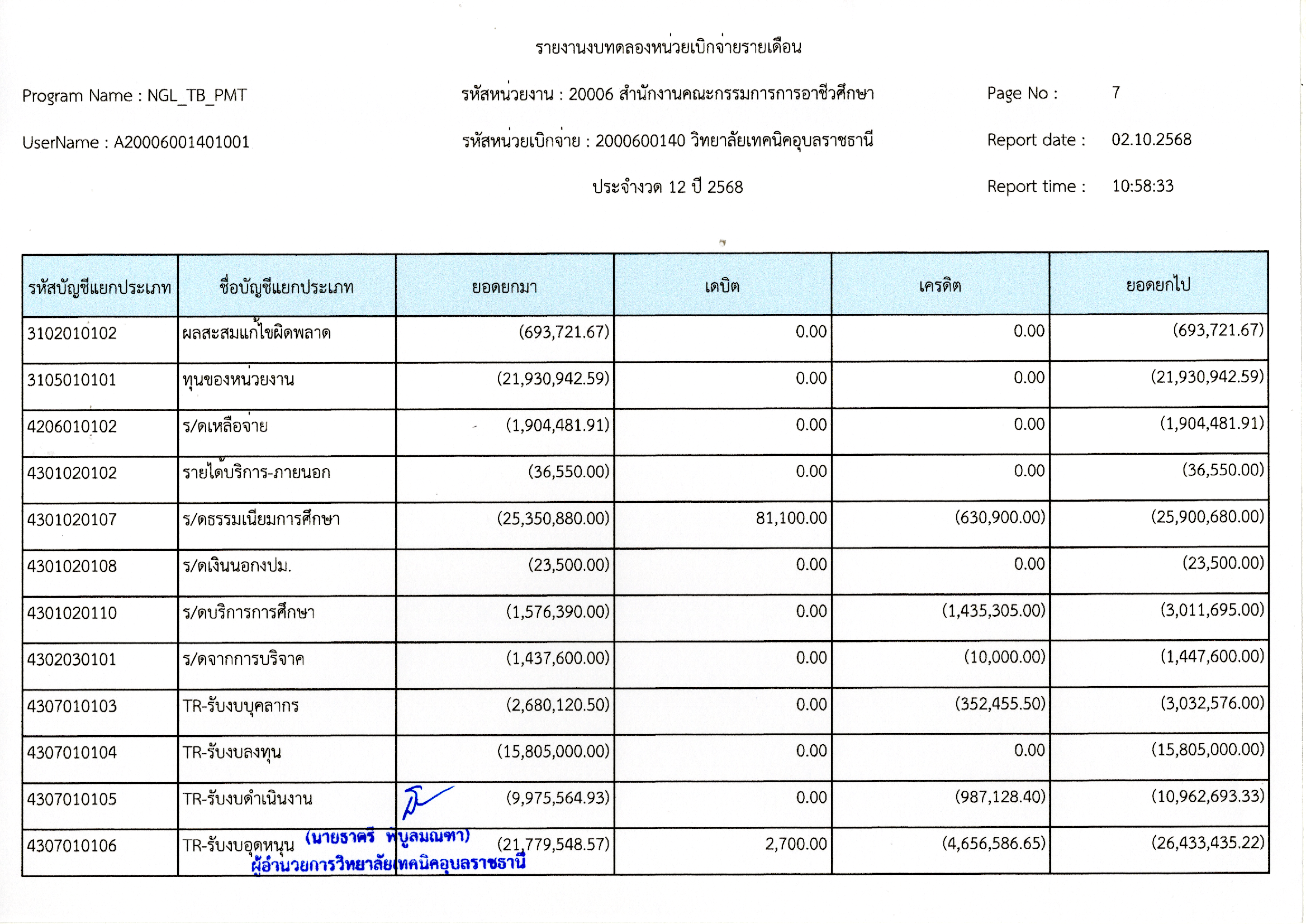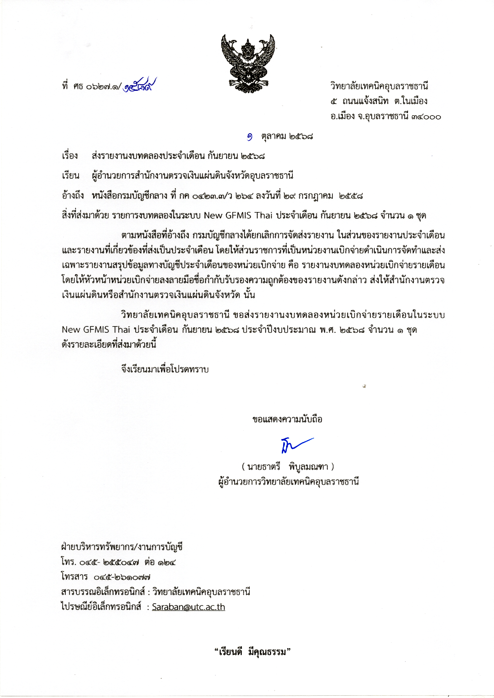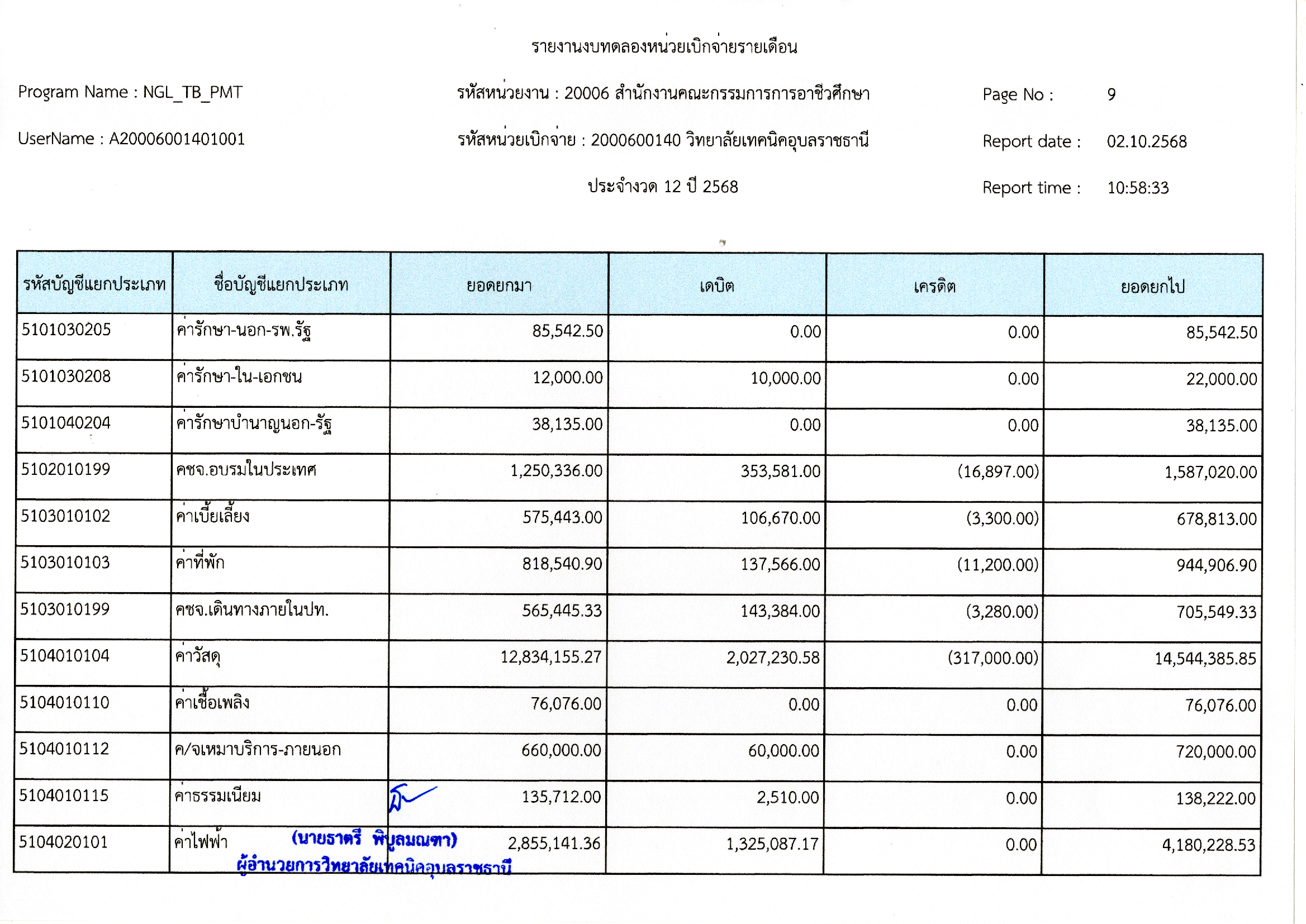 รายงานงบทดลองประจำเดือนกันยายน 2568