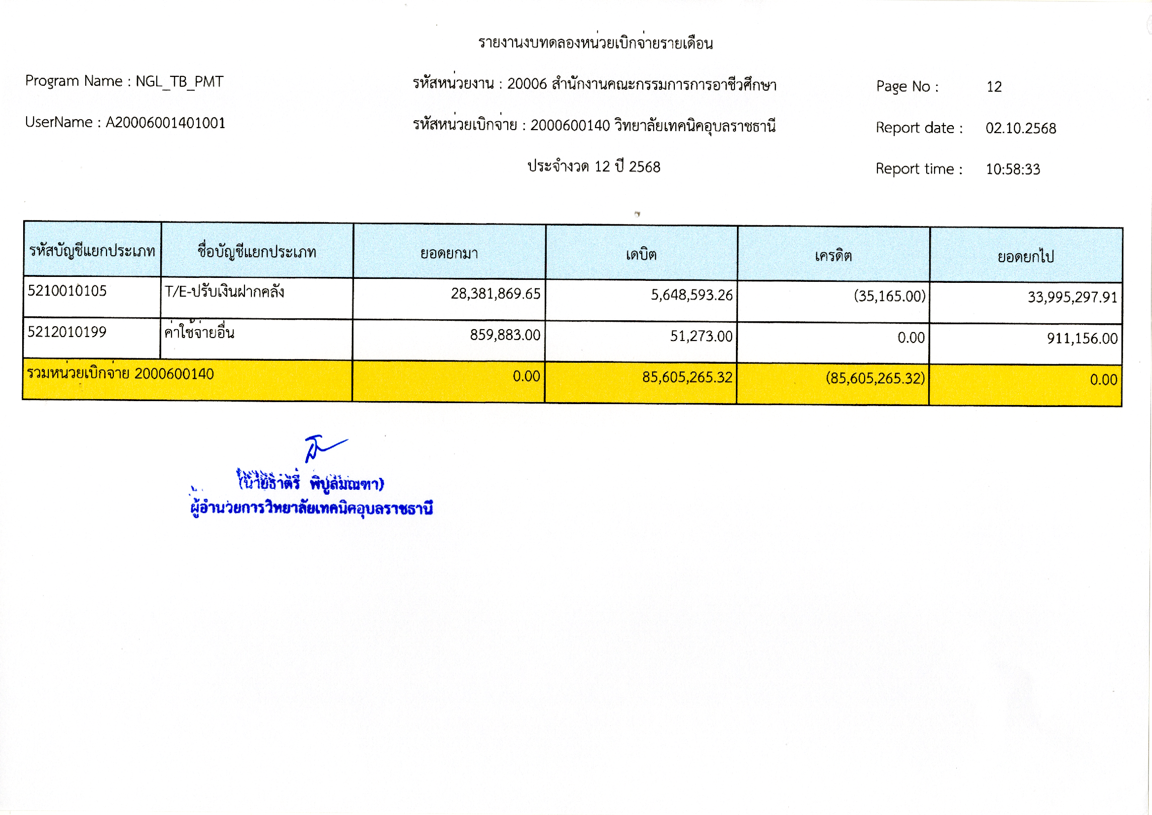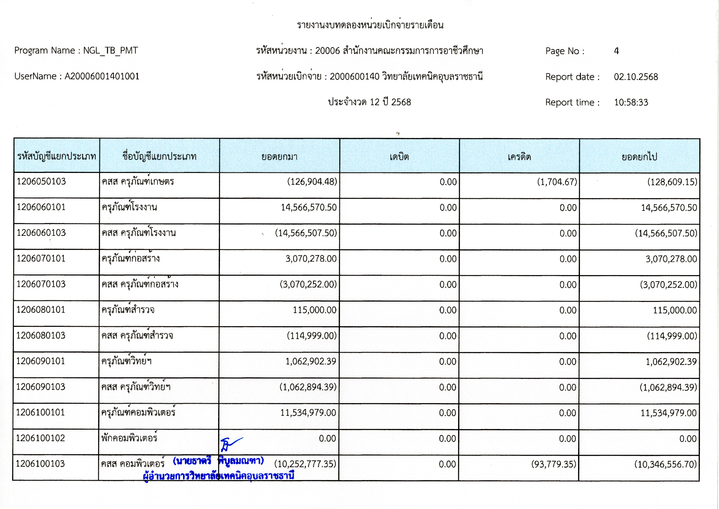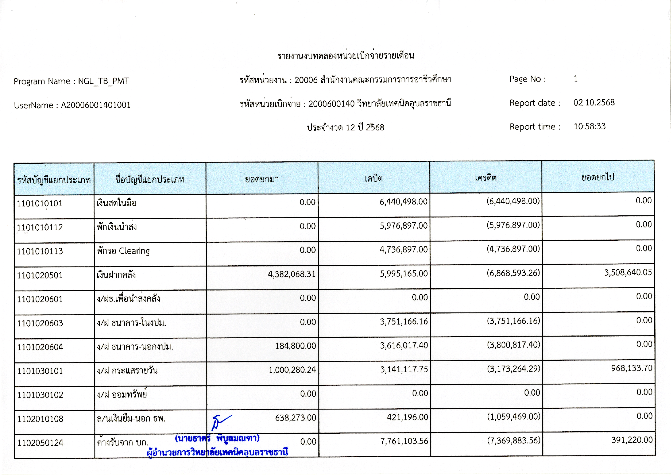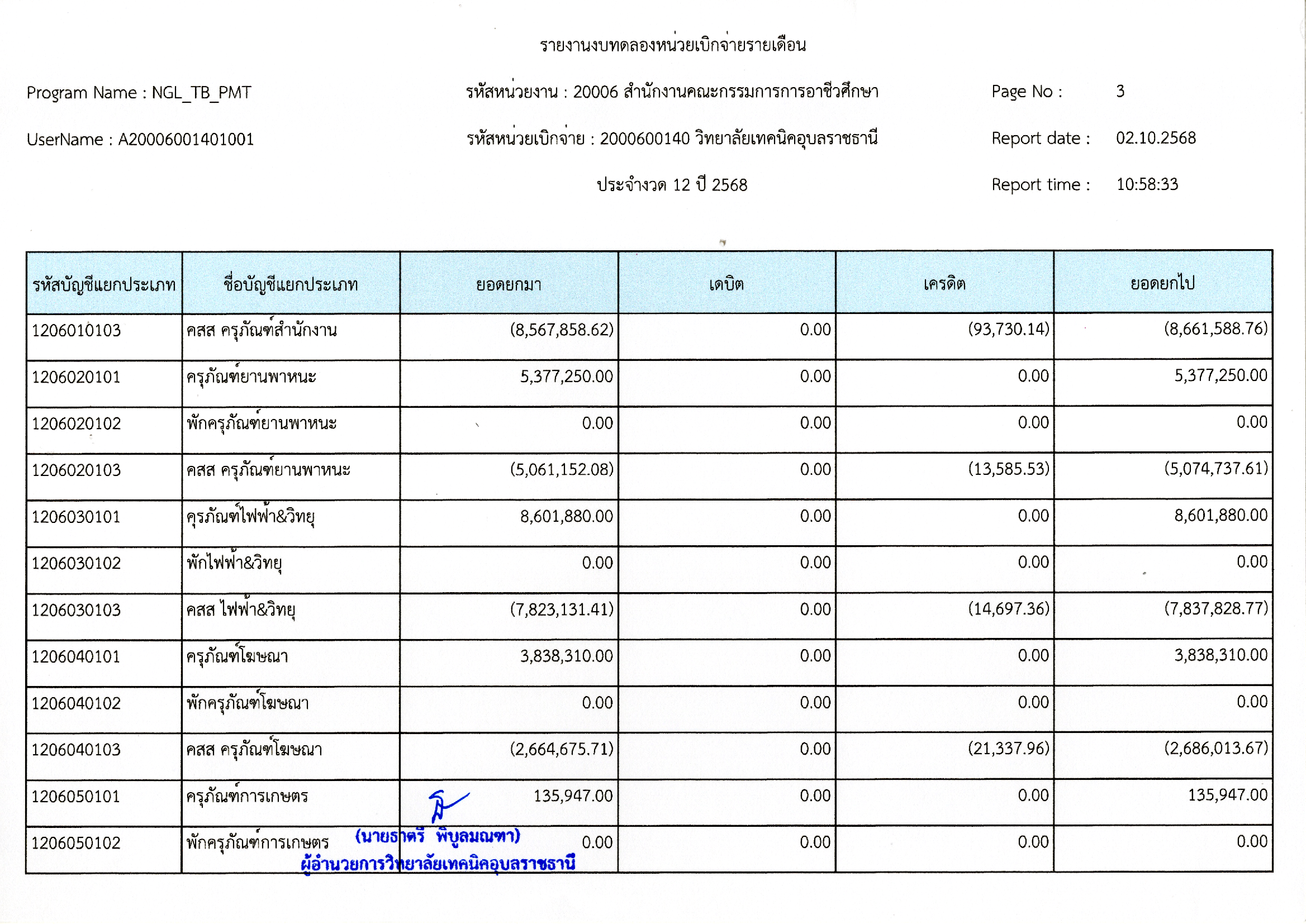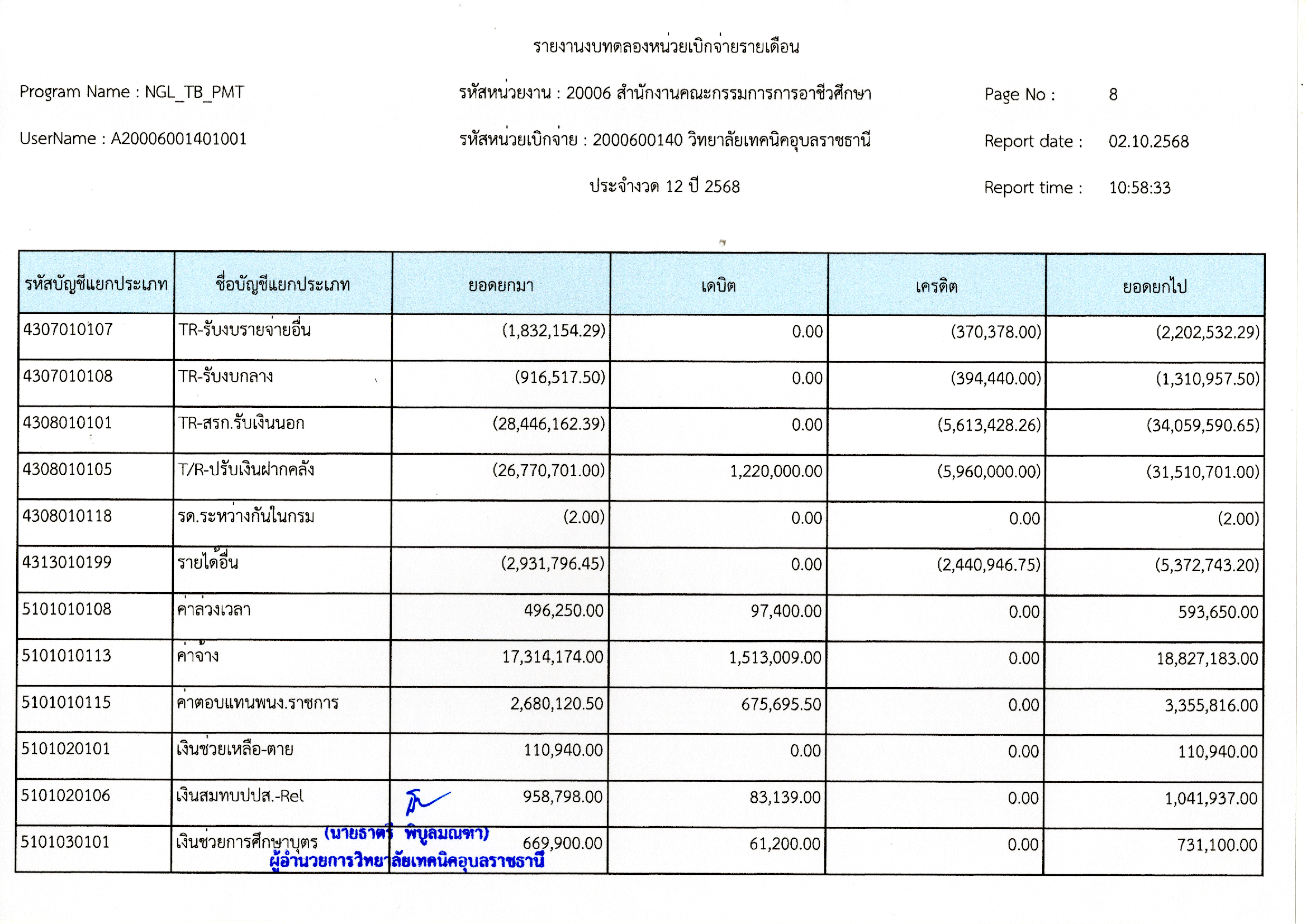 รายงานงบทดลองประจำเดือนกันยายน 2568