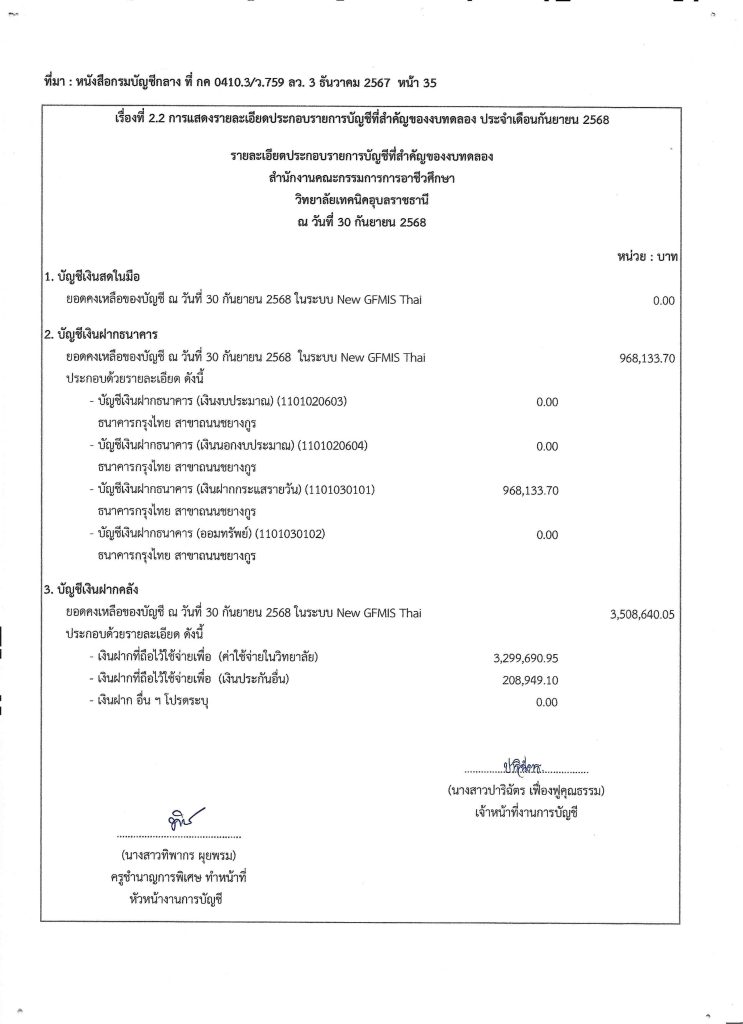 รายละเอียดประกอบรายการบัญชีที่สำคัญของงบทดลอง ณ วันที่ 30 กันยายน 2568
