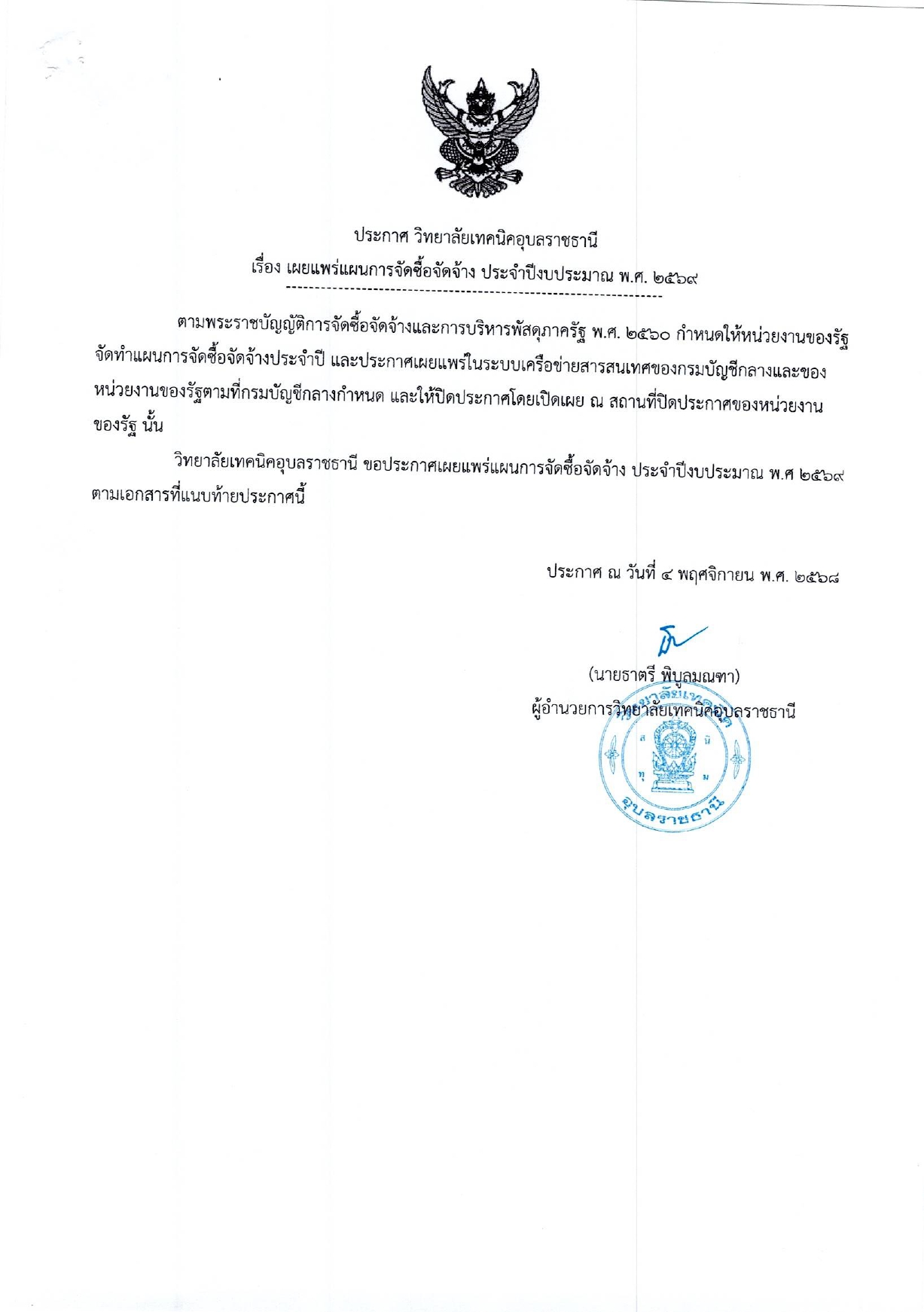 การเผยแพร่แผนการจัดซื้อจัดจ้าง ประจำปีงบประมาณ พ.ศ.2569