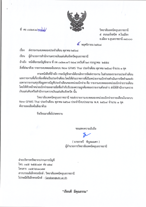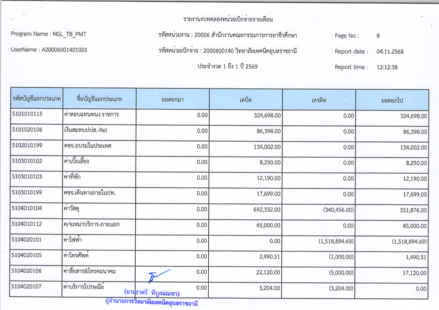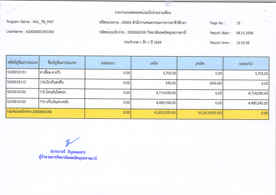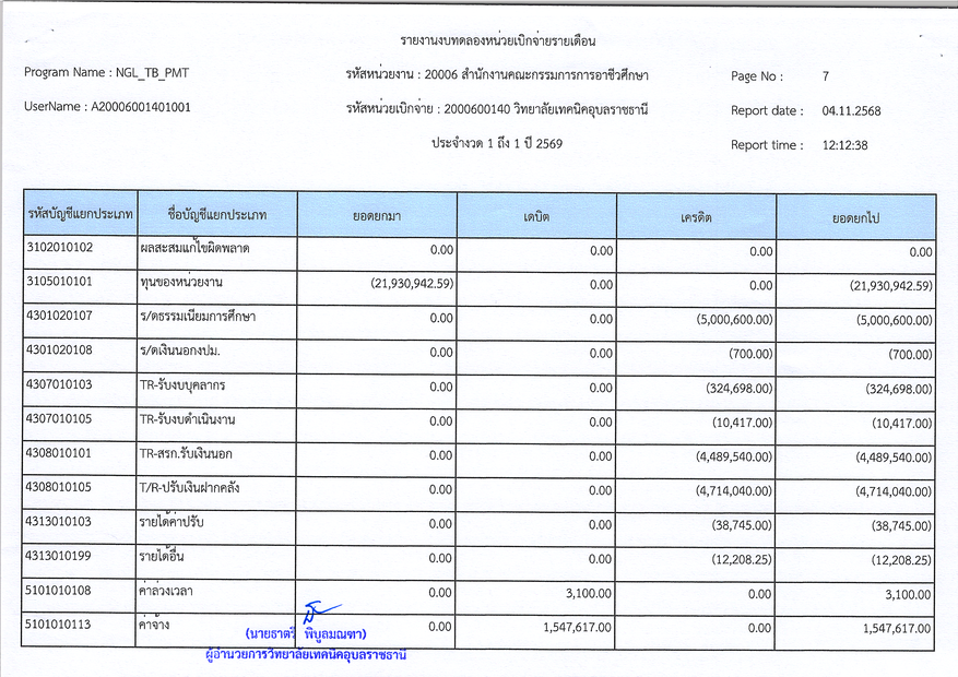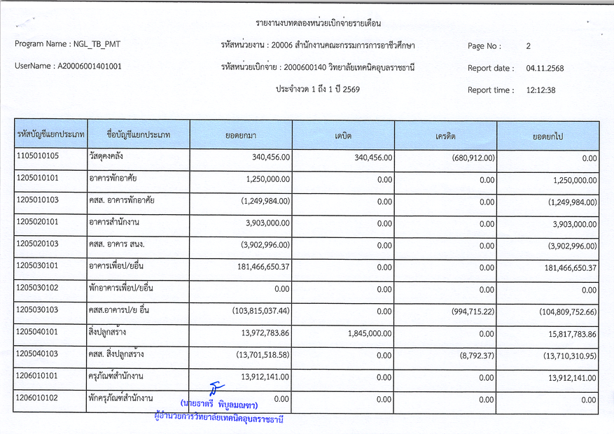 รายงานงบทดลองประจำเดือนพฤศจิกายน 2568