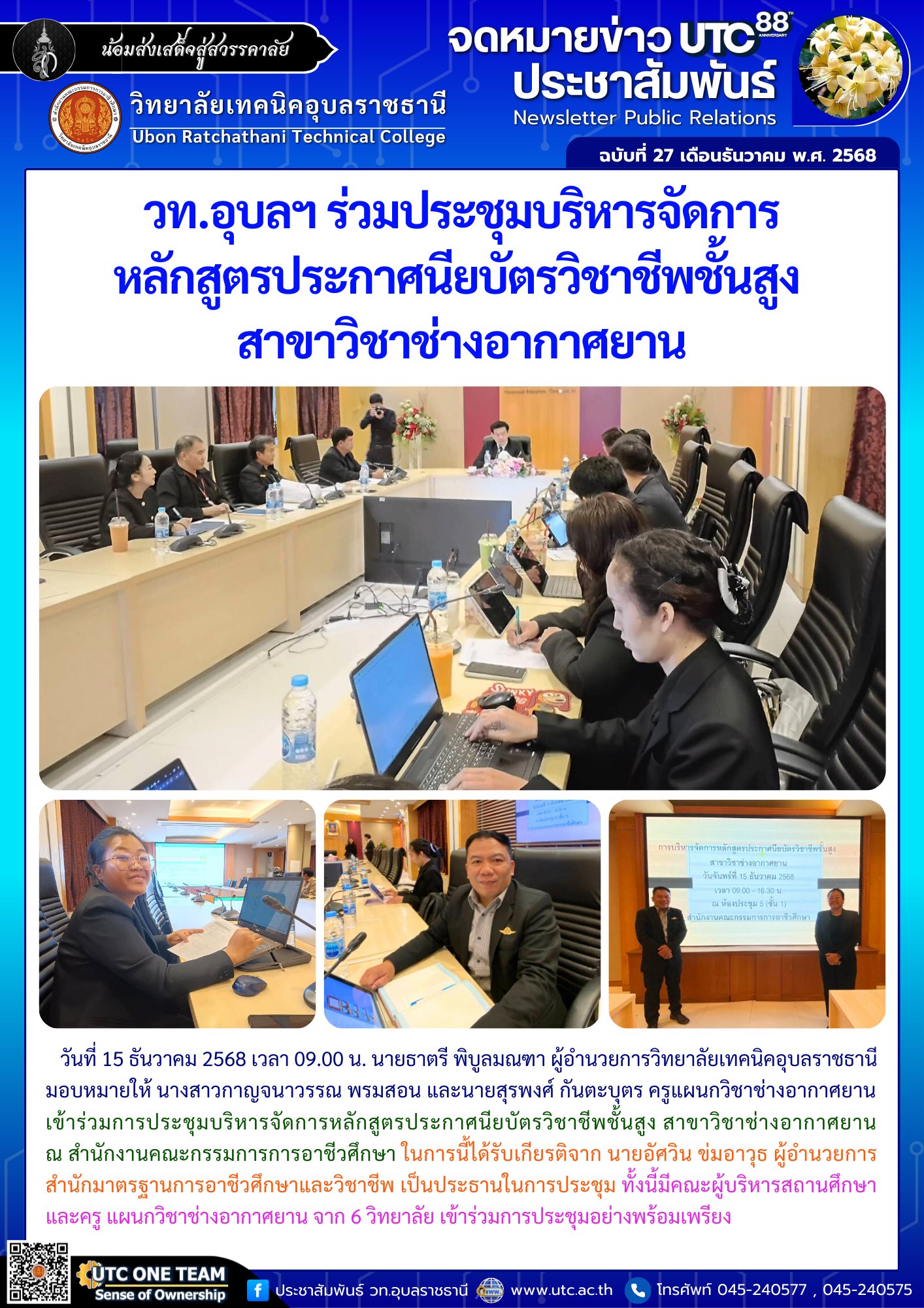 วท.อุบลฯ ร่วมการประชุมบริหารจัดการหลักสูตรประกาศนียบัตรวิชาชีพชั้นสูง สาขาวิชาช่างอากาศยาน