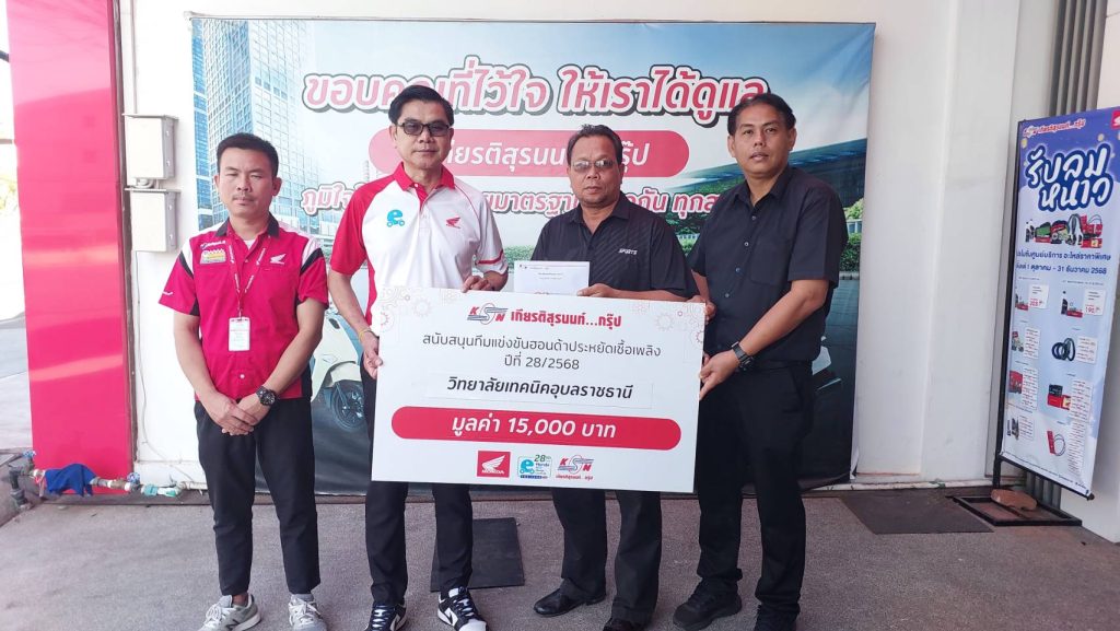 วันที่ 23 ธันวาคม 2568 ที่ผ่านมา นายธาตรี พิบูลมณฑา ผู้อำนวยการวิทยาลัยเทคนิคอุบลราชธานี มอบหมายให้ นายธีระเดช ทิมา หัวหน้างานพัสดุ และนายวันชัย นิยมวงศ์ หัวหน้างานอาคารสถานที่ เข้ารับมอบทุนสนับสนุนในการจัดทำรถประหยัดน้ำมันเชื้อเพลิง จำนวน 15,000 บาท ณ บริษัท เกียรติสุรนนท์อุบลราชธานี จำกัด (สำนักงานใหญ่อุบลราชธานี) โดยการมอบทุนสนับสนุนครั้งนี้ เป็นความร่วมมือระหว่างบริษัท เกียรติสุรนนท์อุบลราชธานี จำกัด และบริษัท ไทยฮอนด้า จำกัด ทั้งนี้เพื่อส่งเสริมให้ทีมที่เข้าร่วมการแข่งขันได้พัฒนายานยนต์ทั้งระบบ ตั้งแต่การวางแผน การประดิษฐ์โครงสร้าง และ เฟรมตัวถังรถ จนถึงการคิดค้น พัฒนาระบบการจ่ายน้ำมันเชื้อเพลิงของเครื่องยนต์ รถจักรยานยนต์ และเพื่อเตรียมความพร้อมในการเข้าร่วมการแข่งขันฮอนด้าประหยัดเชื้อเพลิง ปีที่ 28/2568 ต่อไป