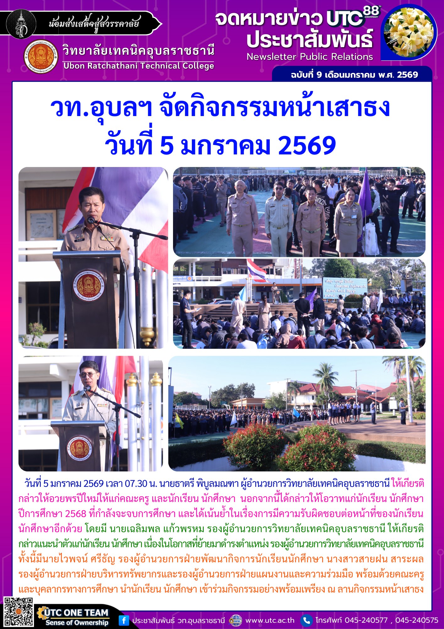 วท.อุบลฯ ขัดกิจกรรมหน้าเสาธง วันที่ 5 มกราคม 2569