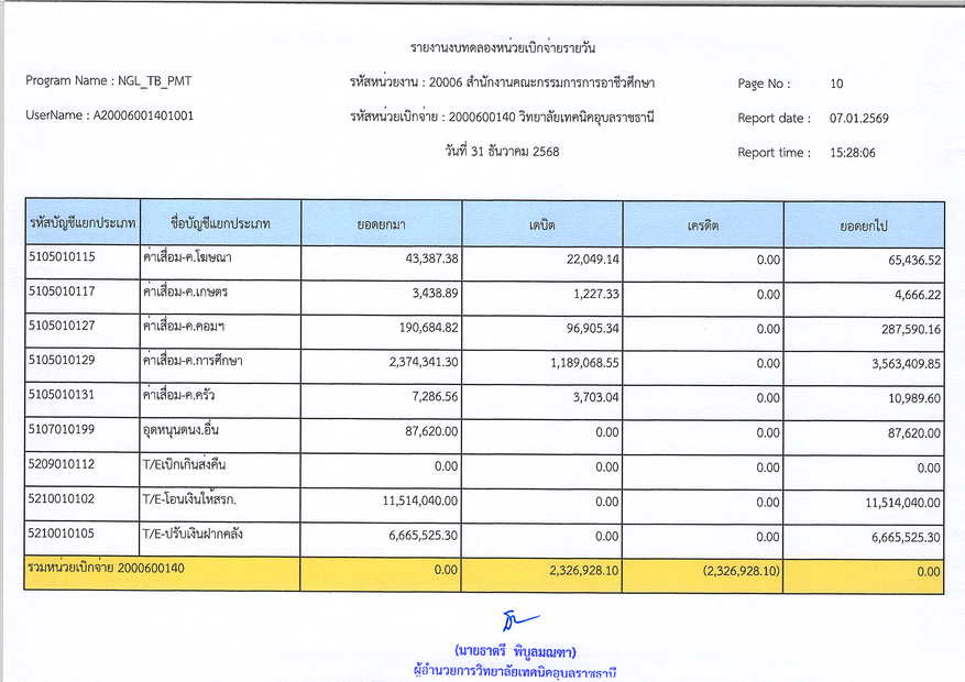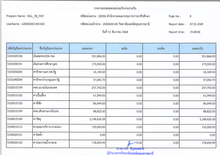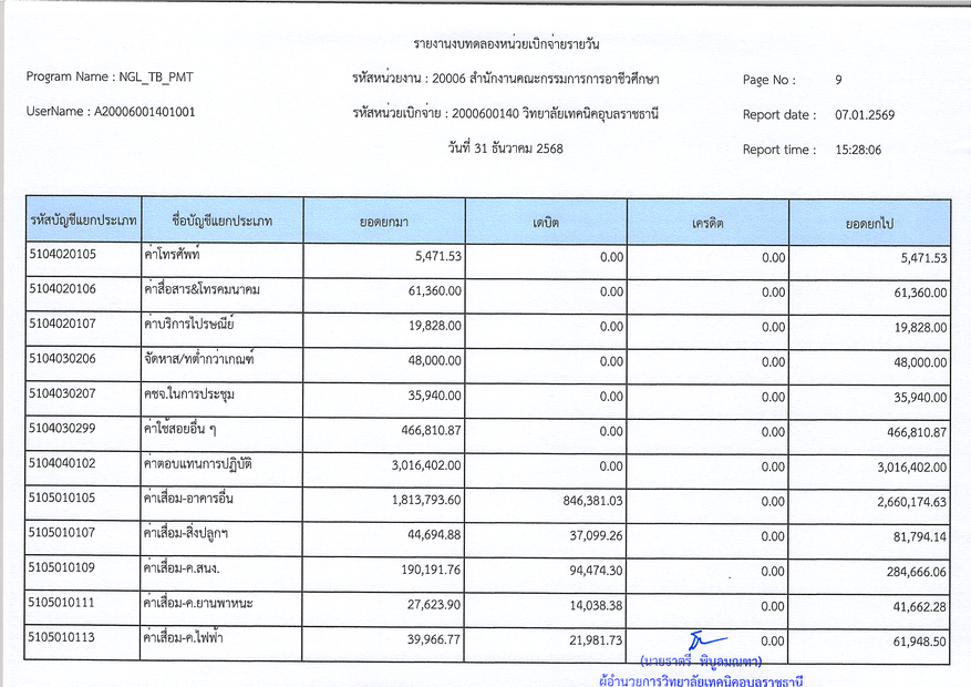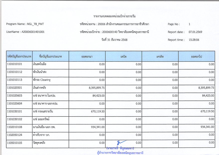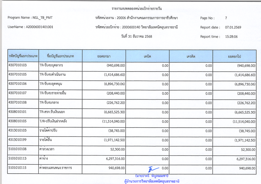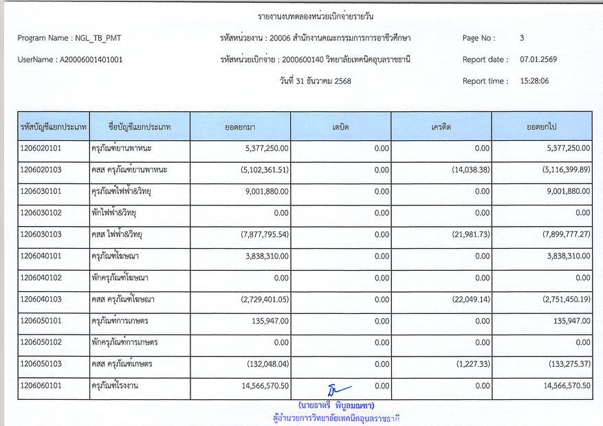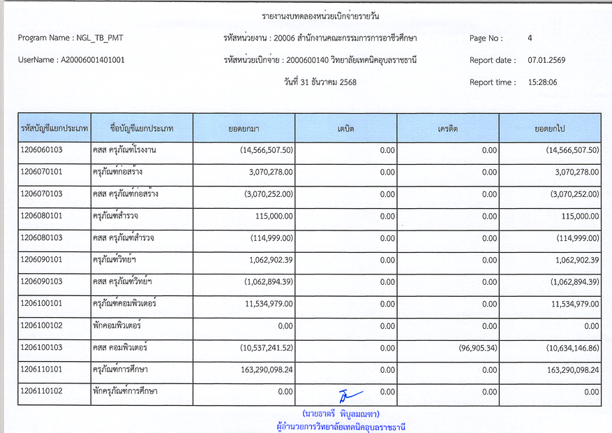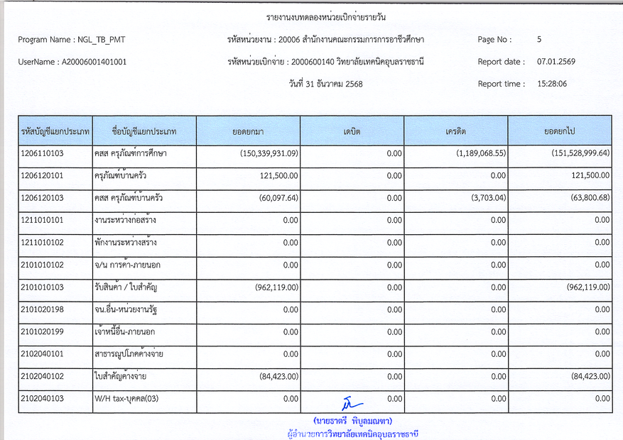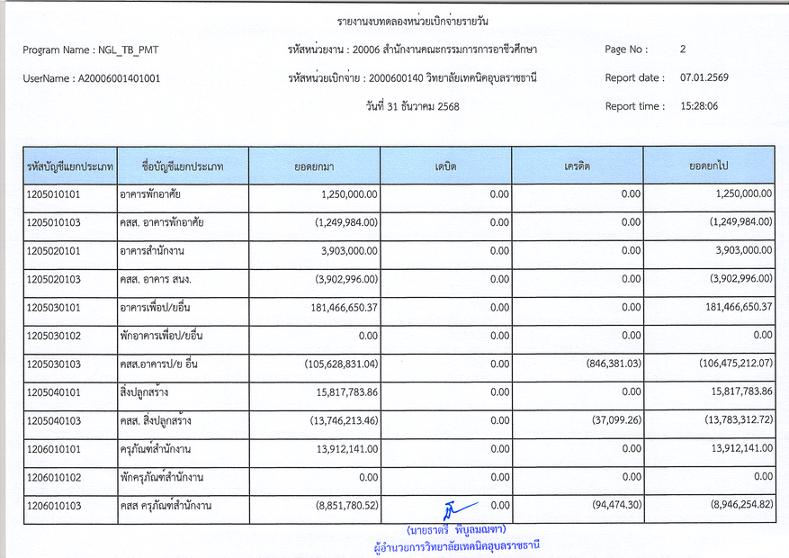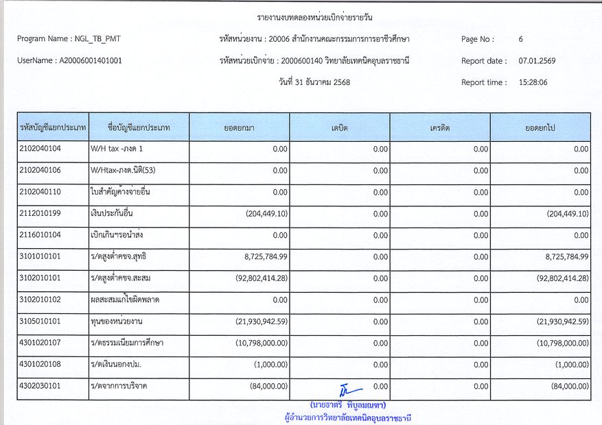 รายงานงบทดลองประจำเดือนธันวาคม 2568