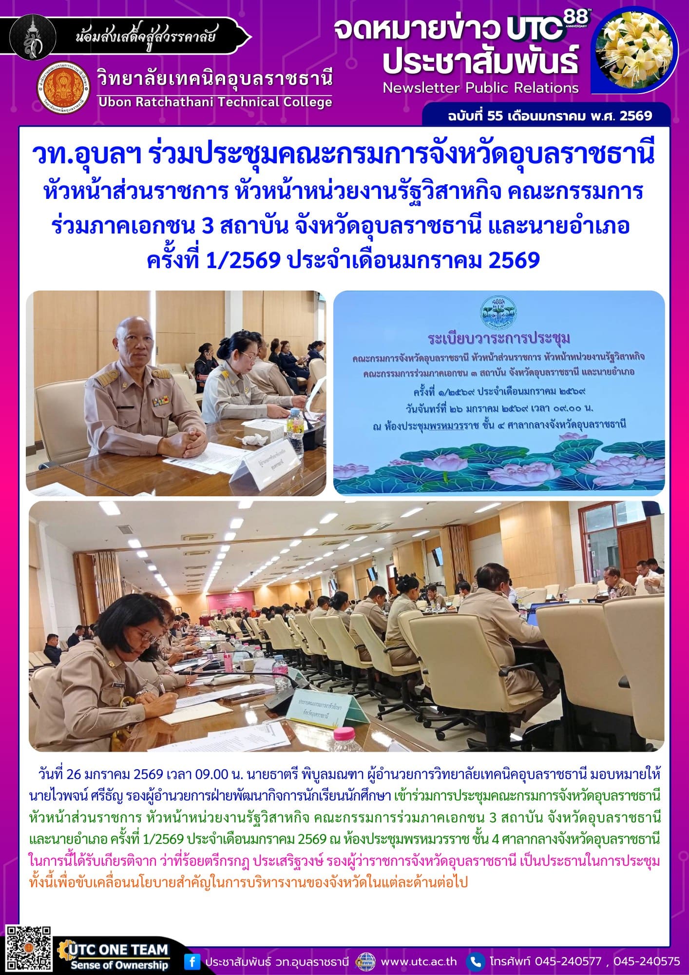 วท.อุบลฯ ร่วมประชุมคณะกรมการจังหวัดอุบลราชธานี หัวหน้าส่วนราชการ หัวหน้าหน่วยงานรัฐวิสาหกิจ คณะกรรมการร่วมภาคเอกชน 3 สถาบัน จังหวัดอุบลราชธานี และนายอำเภอ ครั้งที่ 1/2569 ประจำเดือนมกราคม 2569