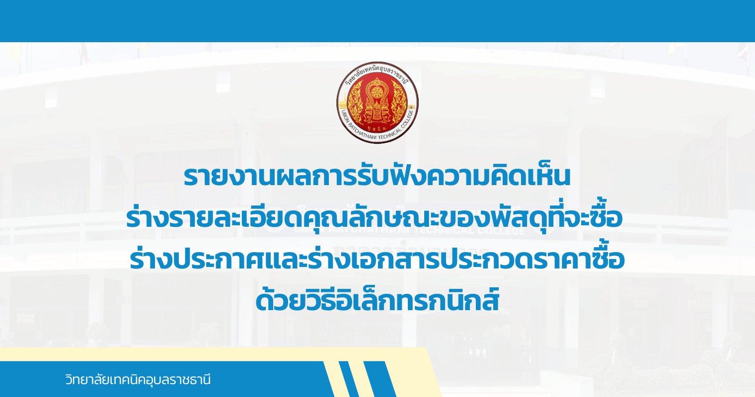 รายงานผลการรับฟังความคิดเห็นร่างรายละเอียดคุณลักษณะของพัสดุที่จะซื้อ ร่างประกาศและร่างเอกสารประกวดราคาซื้อด้วยวิธีอิเล็กทรกนิกส์