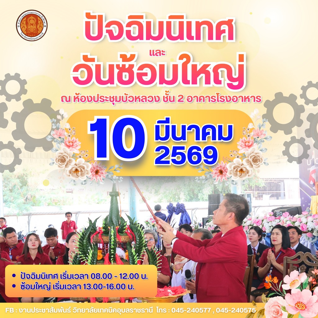 🤵 10 มีนาคม 2569 : โครงการเตรียมความพร้อมผู้สำเร็จการศึกษาออกสู่ตลาดแรงงานและศึกษา ปัจฉิมนิเทศและซ้อมใหญ่ ประจำปีการศึกษา 2568