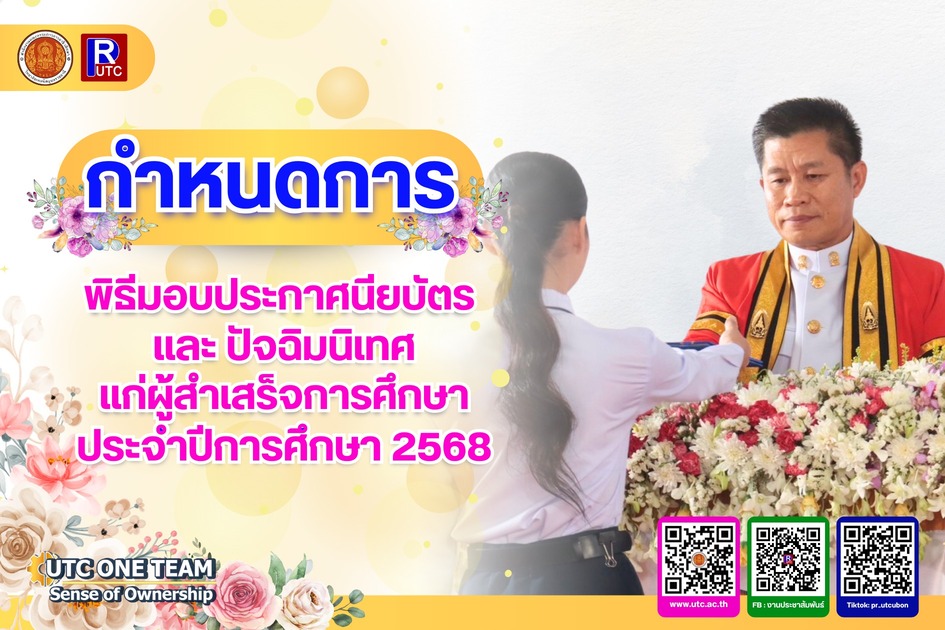 กำหนดการพิธีมอบประกาศนียบัตรผู้สำเร็จการศึกษา ประจำปีการศึกษา 2568