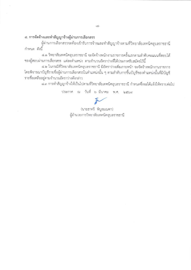 ประกาศวิทยาลัยเทคนิคอุบลราชธานี เรื่อง รับสมัครบุคคลเพื่อเลือกสรรและจัดจ้างเป็นพนักงานราชการทั่วไป
