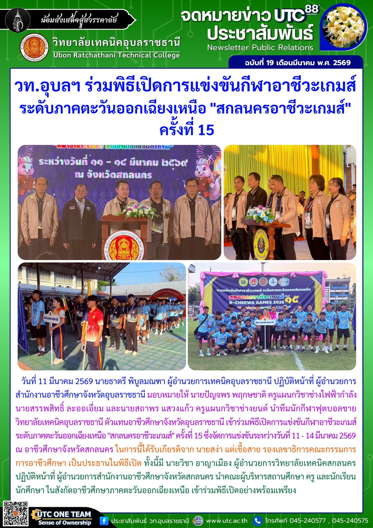 วท.อุบลฯ ร่วมพิธีเปิดการแข่งขันกีฬาอาชีวะเกมส์ ระดับภาคตะวันออกเฉียงเหนือ “สกลนครอาชีวะเกมส์” ครั้งที่ 15