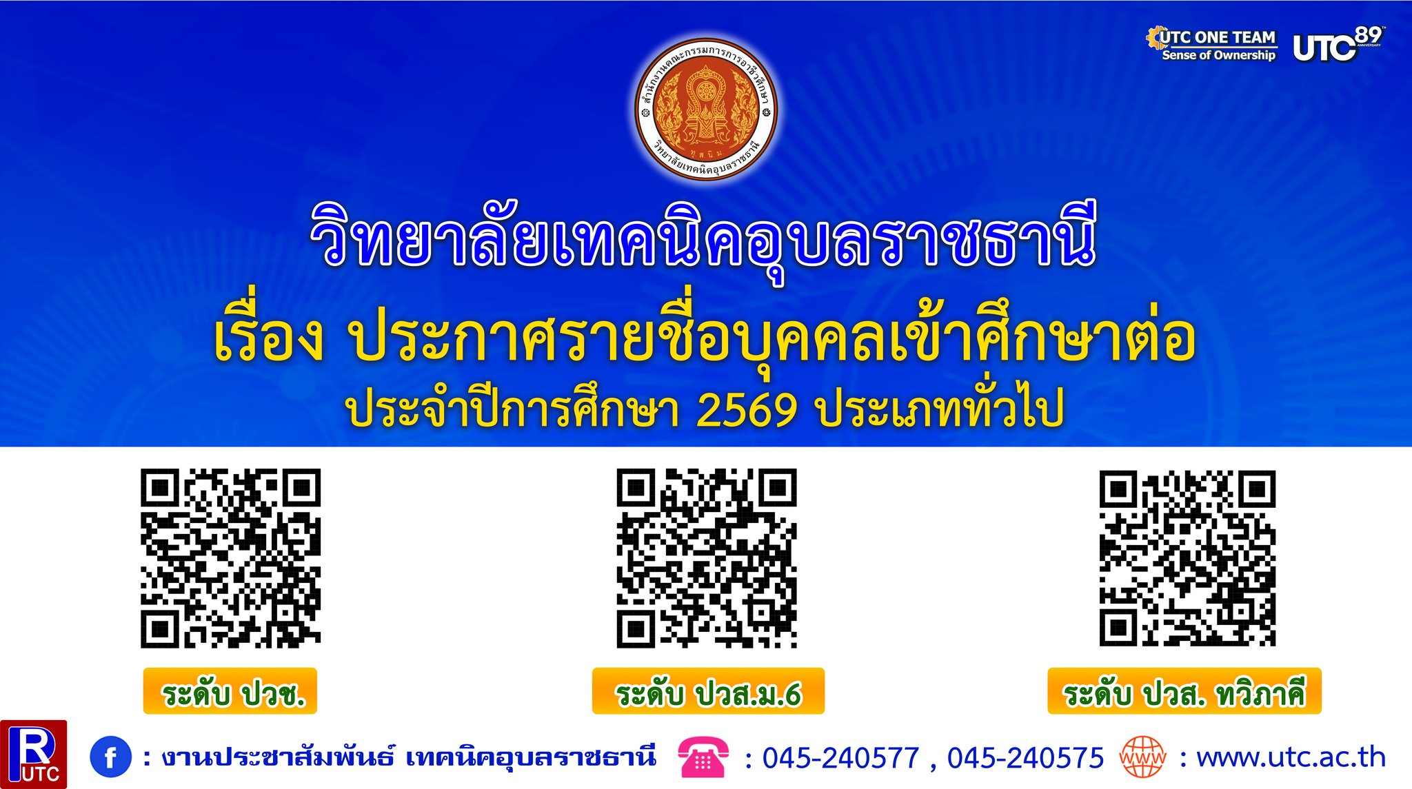 ประกาศรายชื่อบุคคลเข้าศึกษาต่อ ประจำปีการศึกษา 2569 ประเภททั่วไป