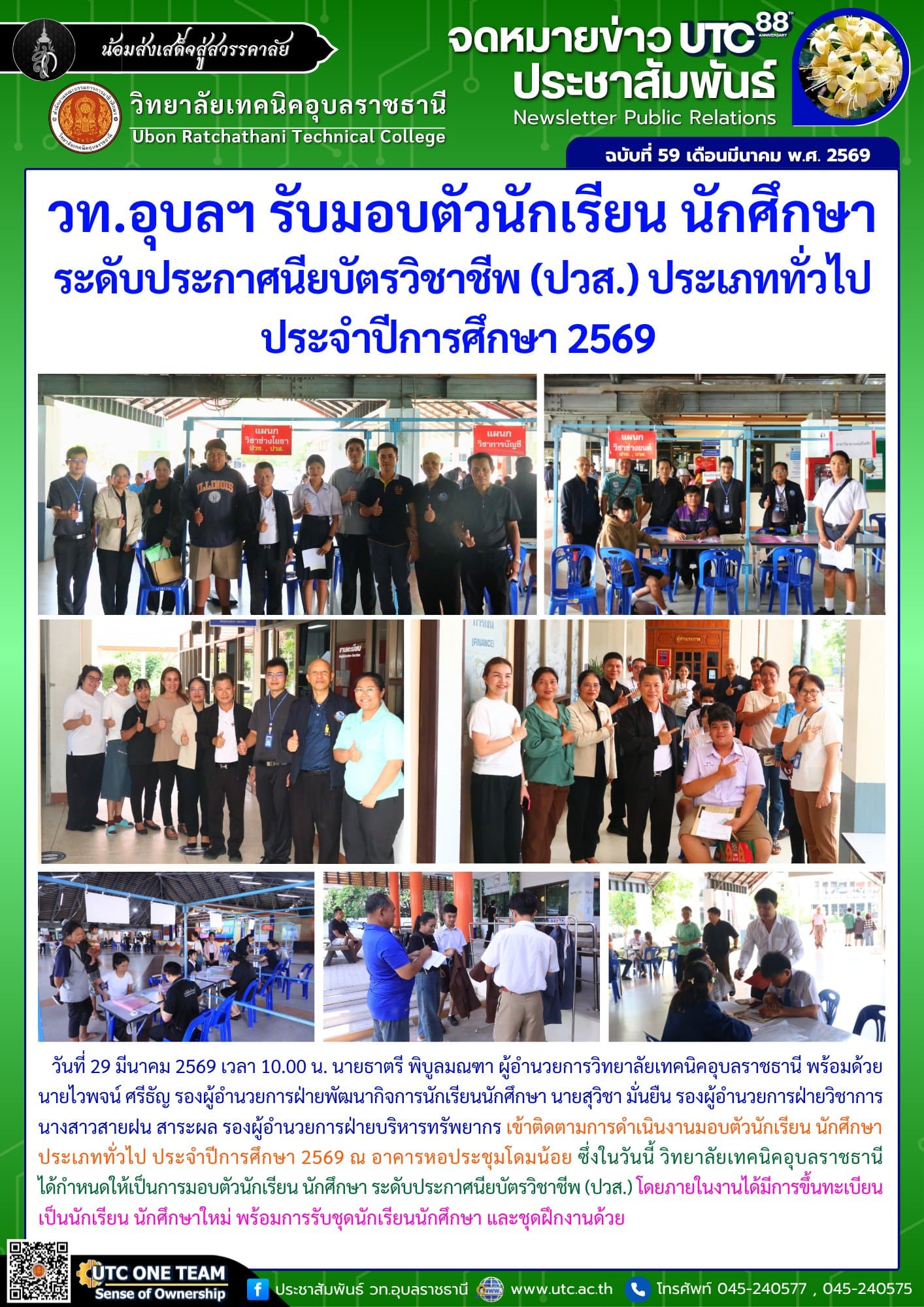 FacebookTwitterLineวันที่ 11 พฤศจิกายน 2568 เวลา 09.30 น. นายธาตรี พิบูลมณฑา ผู้อำนวยการวิทยาลัยเทคนิคอุบลราชธานี ปฏิบัติหน้าที่ ผู้อำนวยการสำนักงานอาชีวศึกษาจังหวัดอุบลราชธานี ได้มอบหมายให้ นางสาวสายฝน สาระผล (เพิ่มเติม…)
