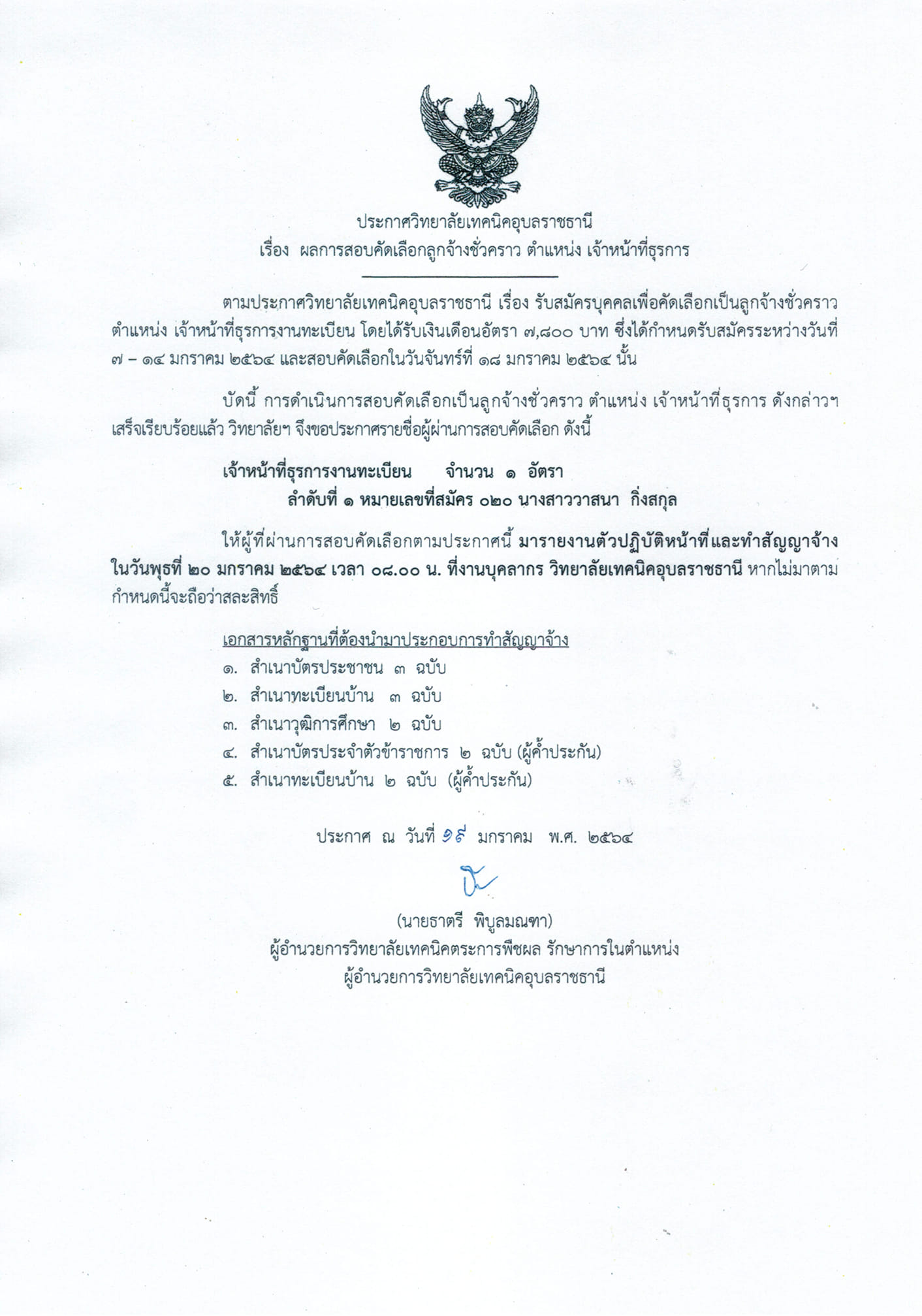 ประกาศวิทยาลัยเทคนิคอุบลราชธานี