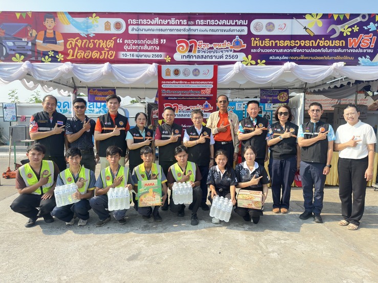 ที่ปรึกษาด้านมาตรฐานอาชีวศึกษาช่างอุตสาหกรรม ให้เกียรติเข้าตรวจเยี่ยมและให้กำลังใจผู้ปฏิบัติงานจุดบริการ อาชีวะ ขนส่ง อาสาช่วยประชาชน : เทศกาลสงกรานต์ 2569