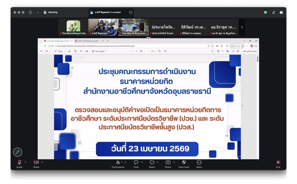 #ประชุมคณะกรรมการดำเนินงานธนาคารหน่วยกิตสำนักงานอาชีวศึกษาจังหวัดอุบลราชธานี